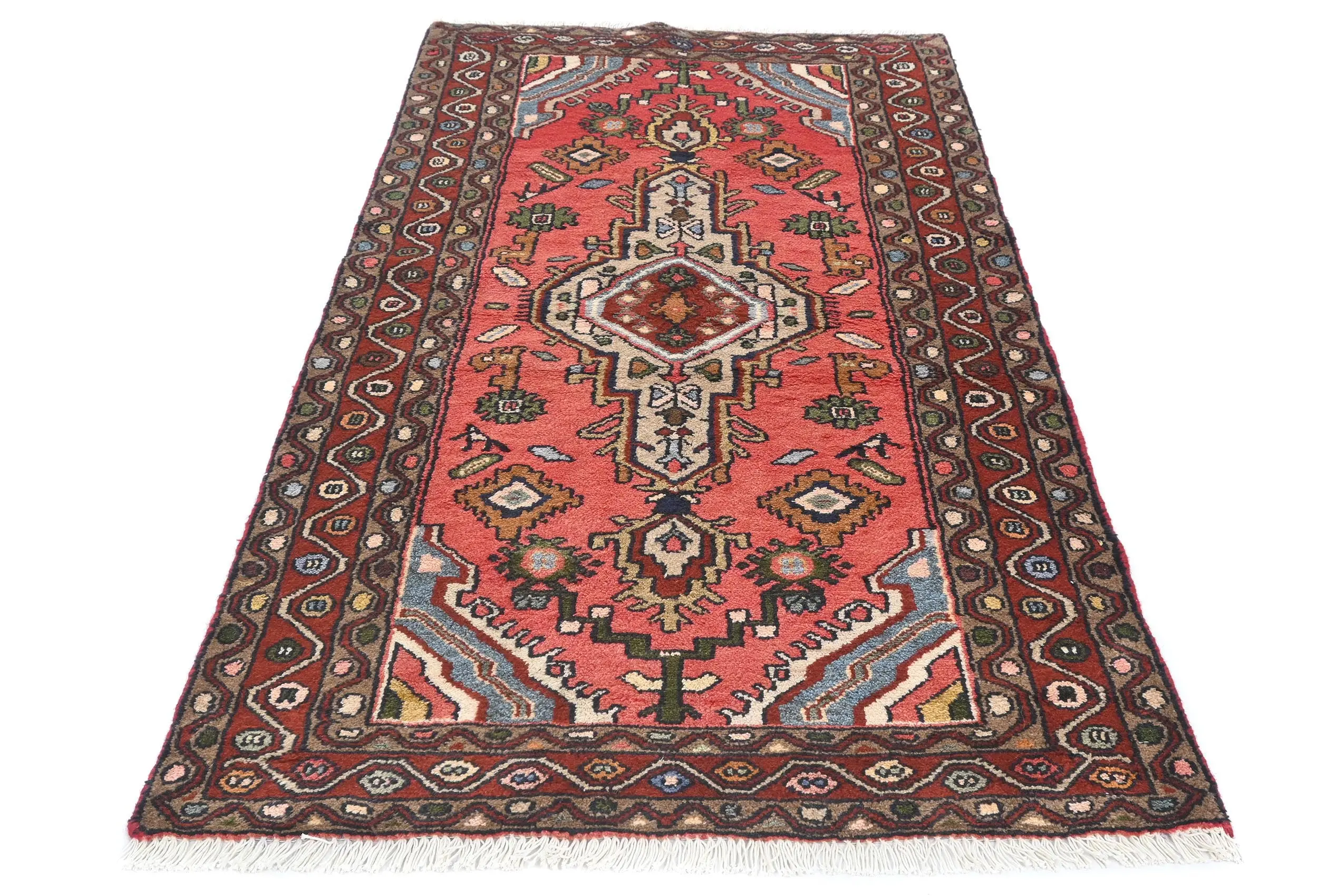 Vintage Bittersweet Red Floral Tribal 3X5 Hamedan Persian Rug