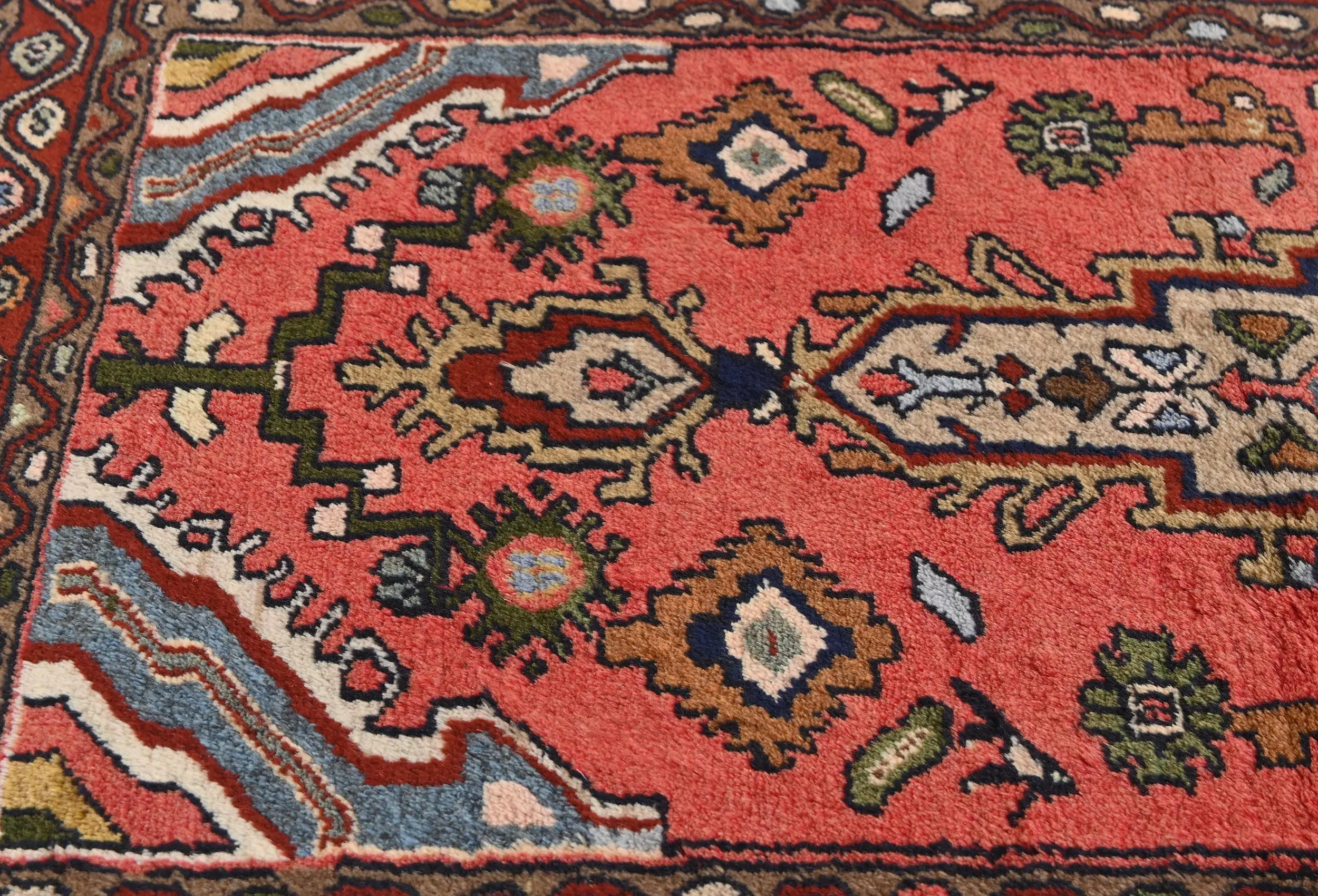 This original 3X5 Bittersweet Red vintage Persian rug was crafted by the hands of skilled weavers enthused by a variety of lovely artistic designs, to recreate the aged look of the unique piece with a richness of color and beautifully elaborated background field. What set this tribal Oriental area rug from the others are the material and dye used (wool pile and cotton foundation), knot count, ancient designs, fantastic grades, and its regional historical connection: it has deep roots, from the story of the people who produced it to the meaning of the symbols and colors displayed across its canvas that have been praised for centuries. This home décor carpet will be completely cozy and inviting that never will go out of style! Also, this Oriental rug would be among your most valuable treasures, it is a great investment that increase in value over time, and it will last for generations because was woven with high-quality, all-natural wool; it won’t rip, tear, or shed. Environmentally friendly, opulent yet affordable; this Persian rug will give you a thorough amount of character to help define your living space with sophistication and warmth that will capture the eyes and attention of your audience (homeowners, designers, decorators, family and friends). EB-7331