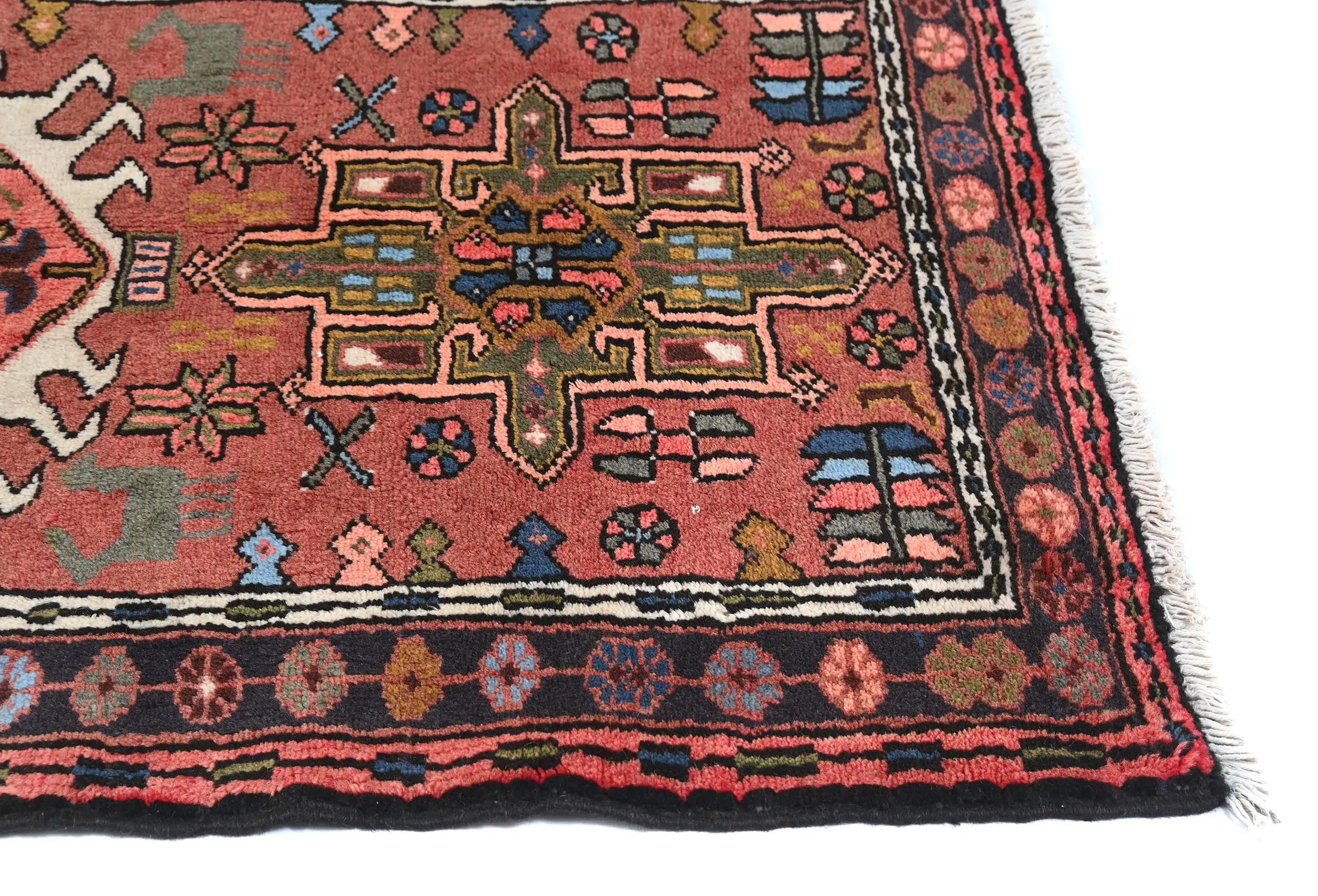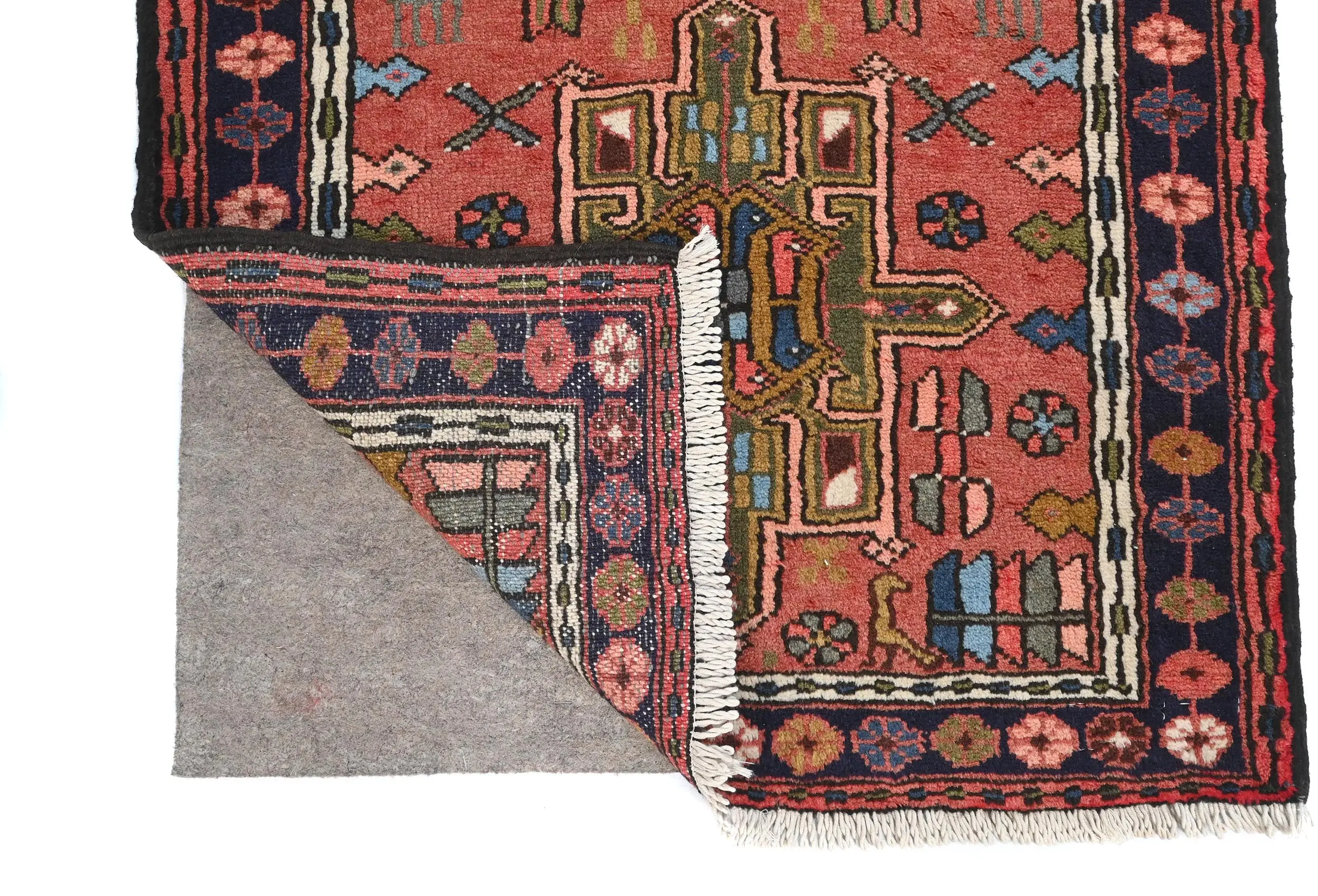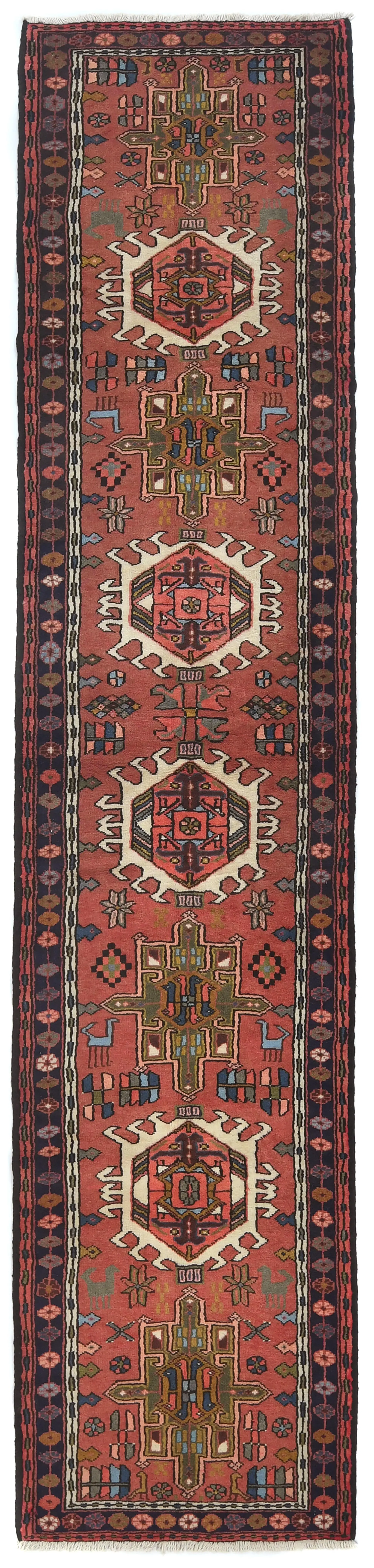 Vintage Bittersweet Red Geometric 3X12 Karajeh Persian Runner Rug