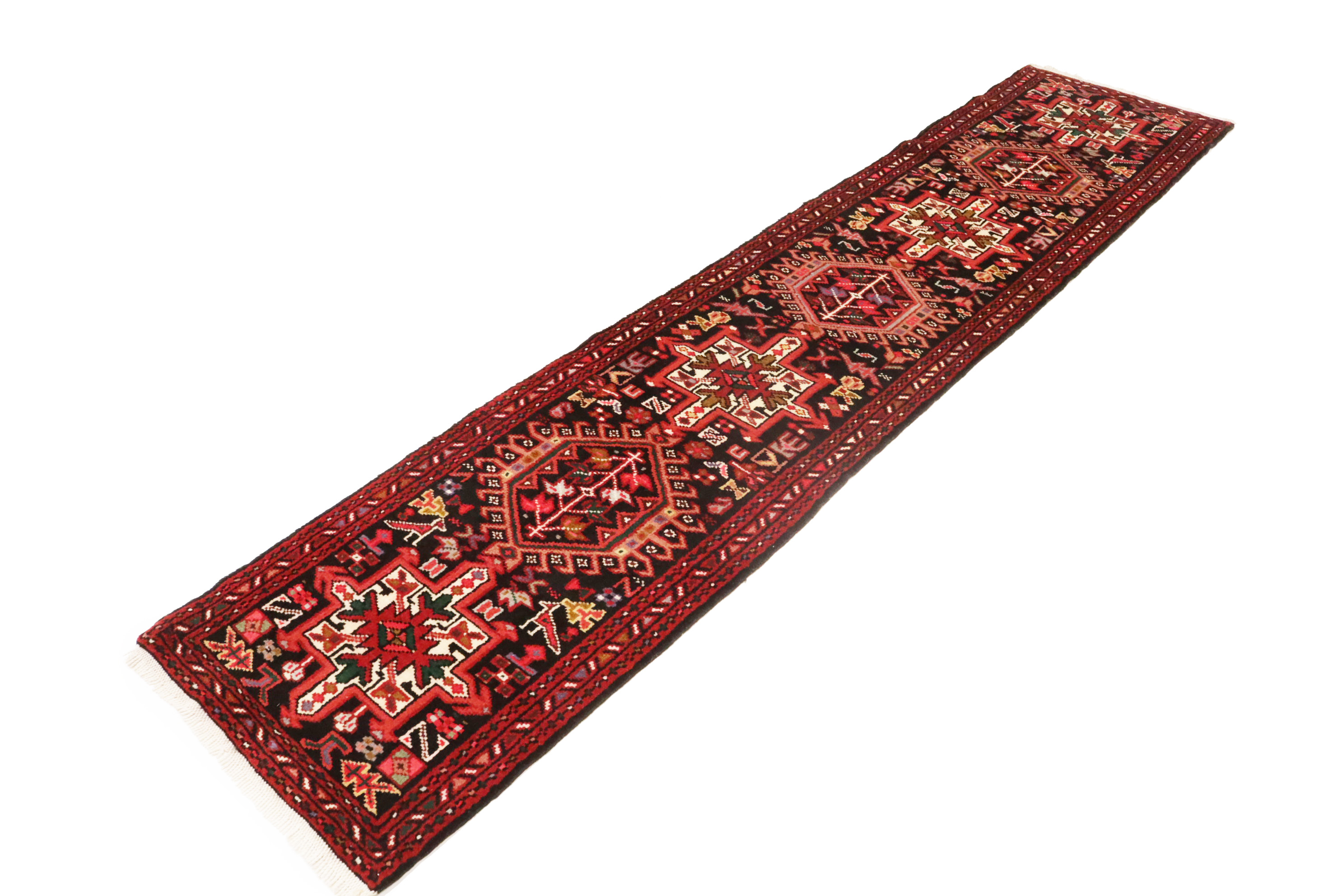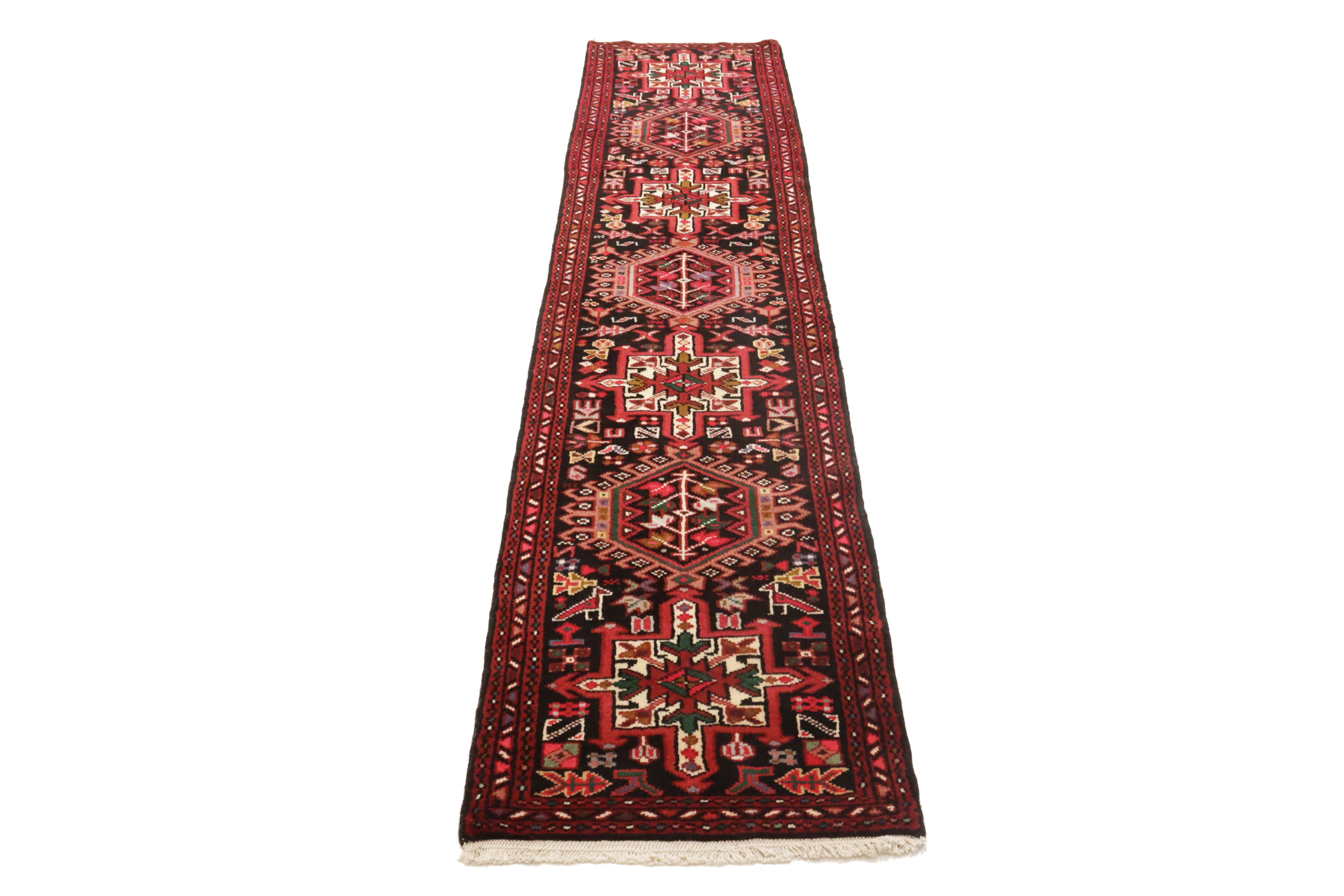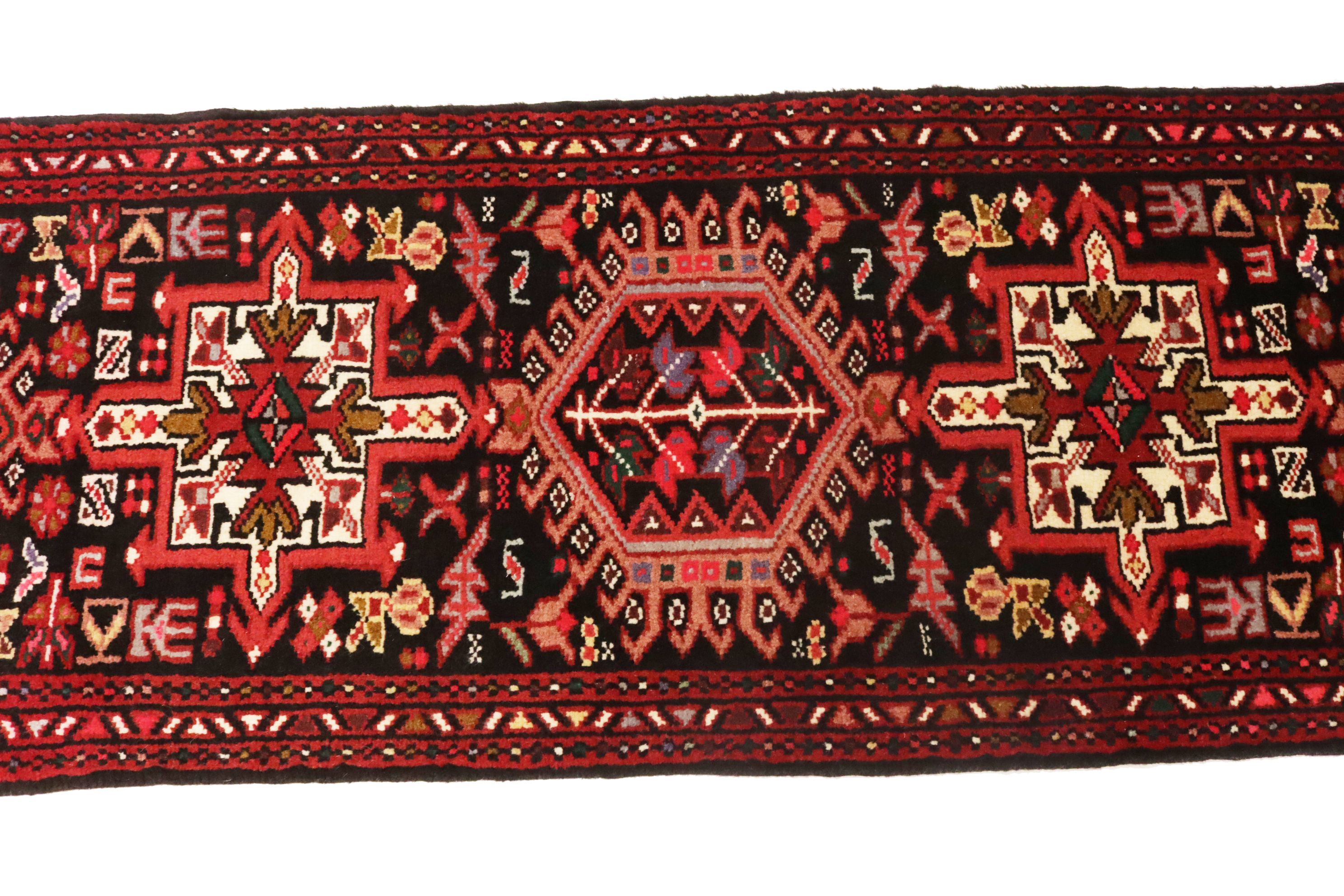 Handmade vintage 2X9 black Persian runner made with natural dyes (fine wool pile and cotton foundation), superior knot count, and alluring ancient designs. This Oriental runner never will go out of style and would be among your most valuable treasures.