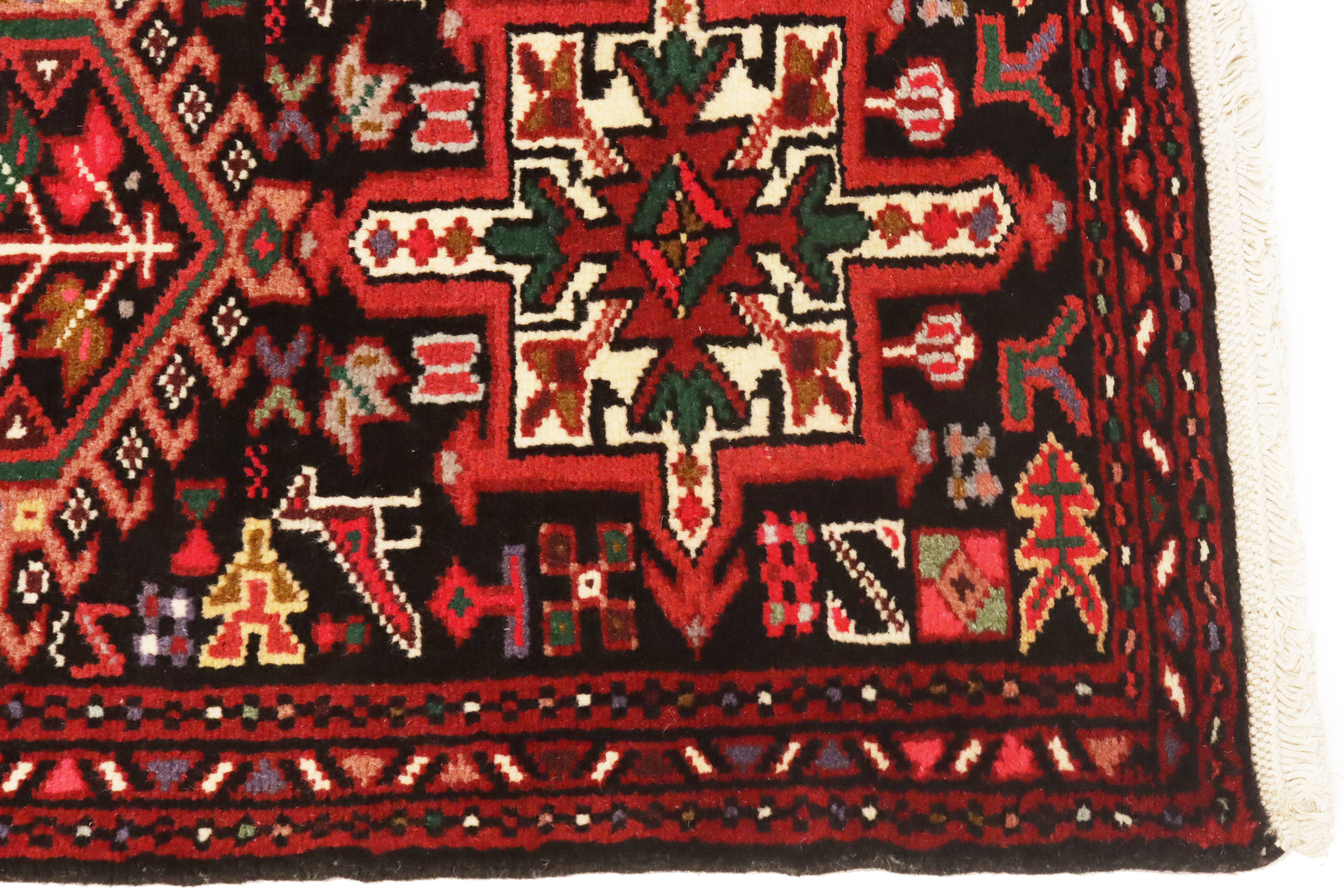 Vintage Black Geometric 2X9 Karajeh Persian Runner Rug