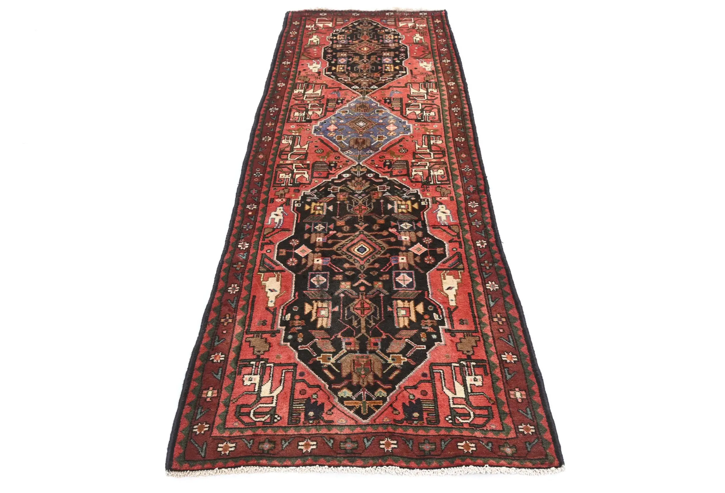 Vintage Charcoal Tribal 3X9 Hamedan Persian Runner Rug