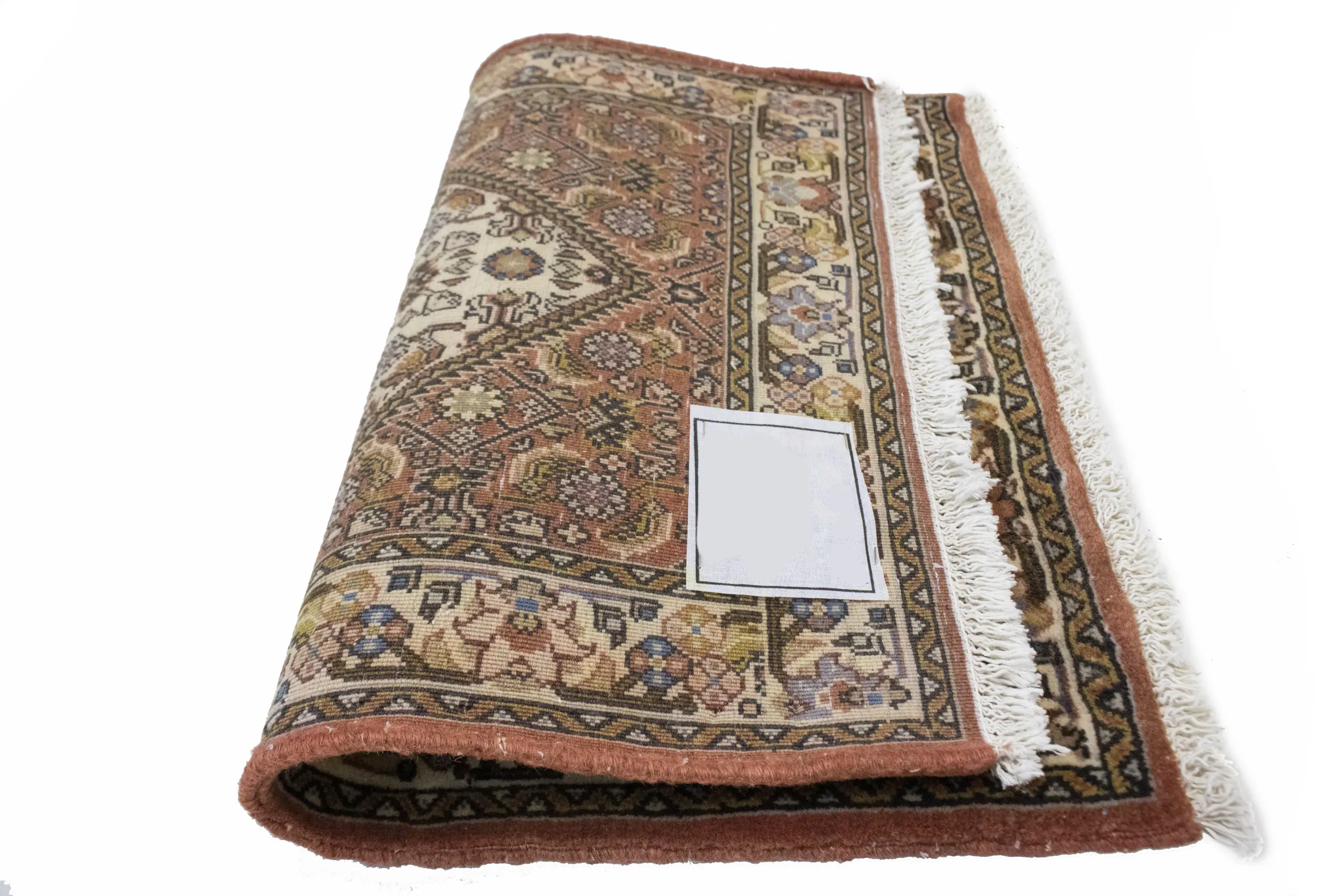 Hand Knotted vintage 2X2'4 cinnamon clay Persian rug made with natural dyes (fine wool pile and cotton foundation), superior knot count, and appealing ancient designs. This Oriental rug never will go out of style and would be among your most valuable treasures.