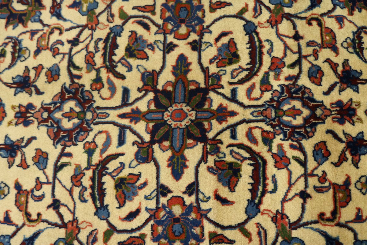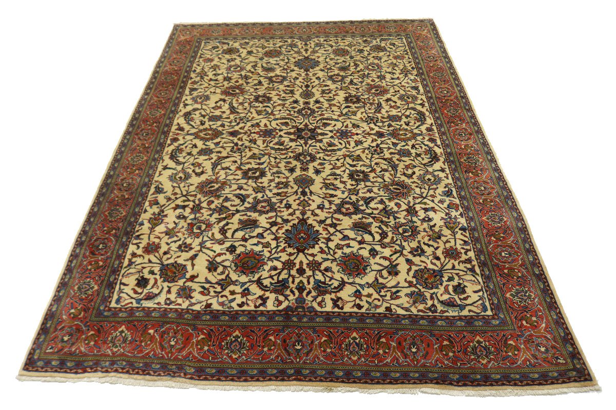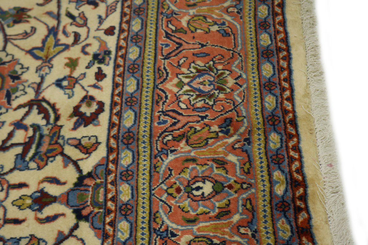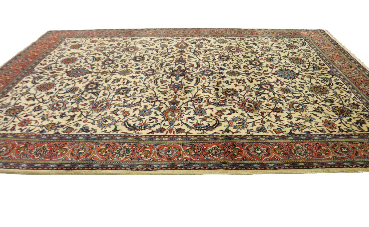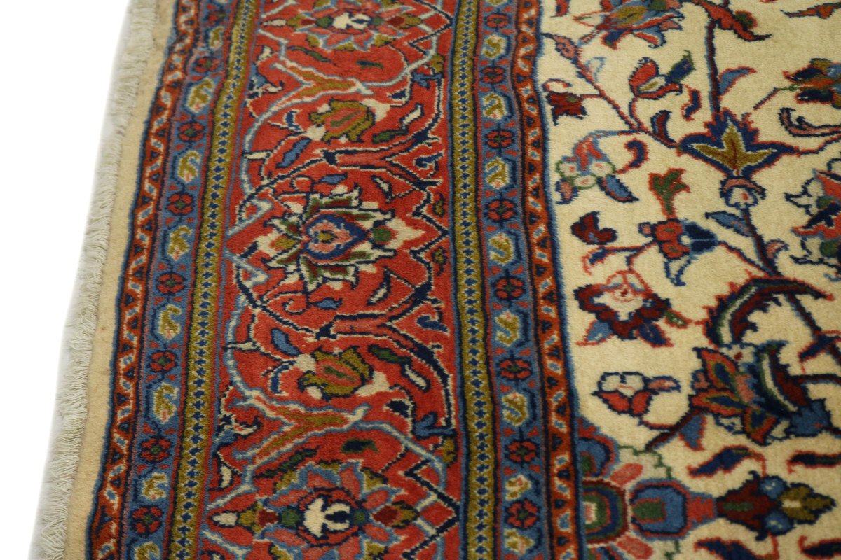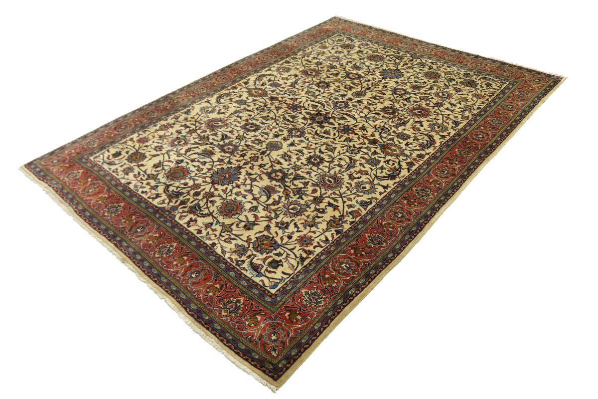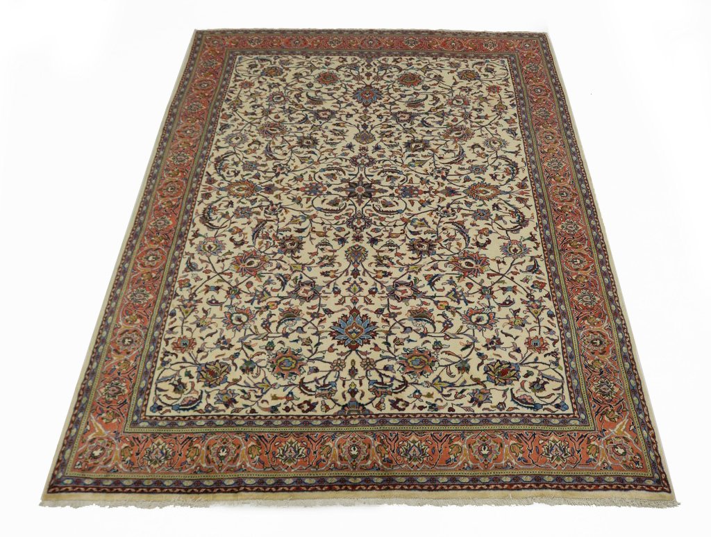 Handmade Persian rug made with vegetable dyes (fine wool pile and cotton foundation), superior knot count, and appealing ancient designs. This Oriental rug never will go out of style and would be among your most valuable treasures.