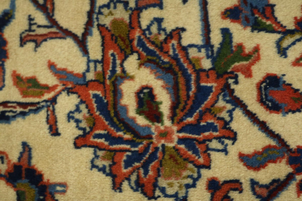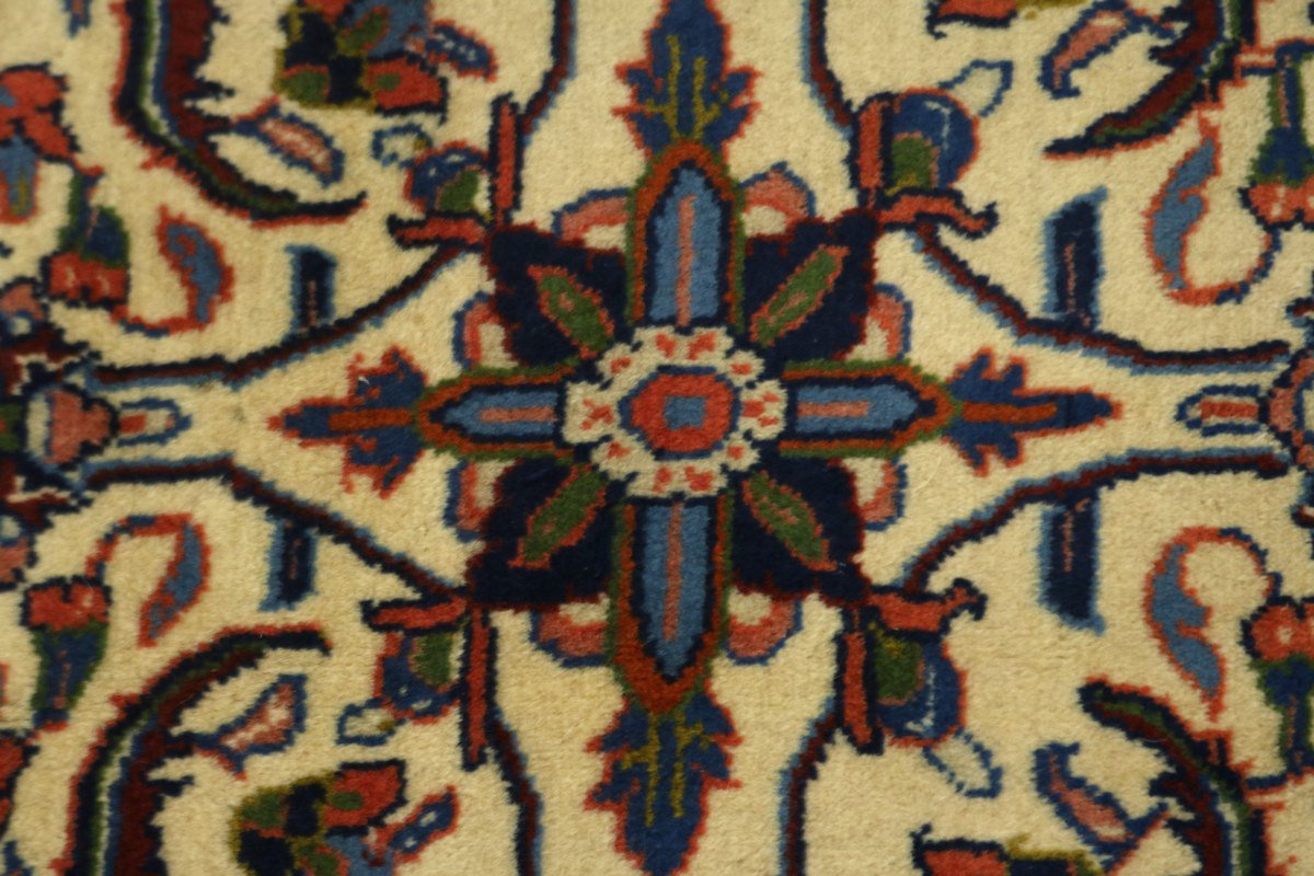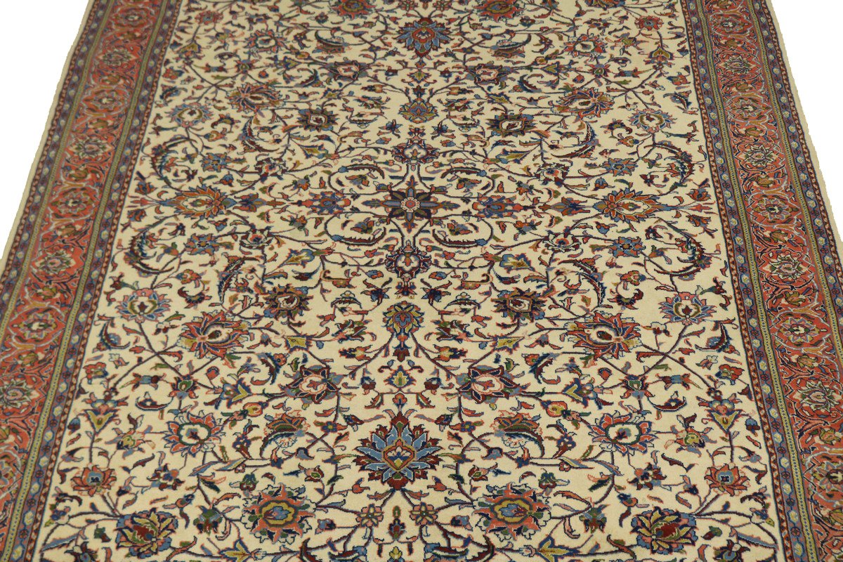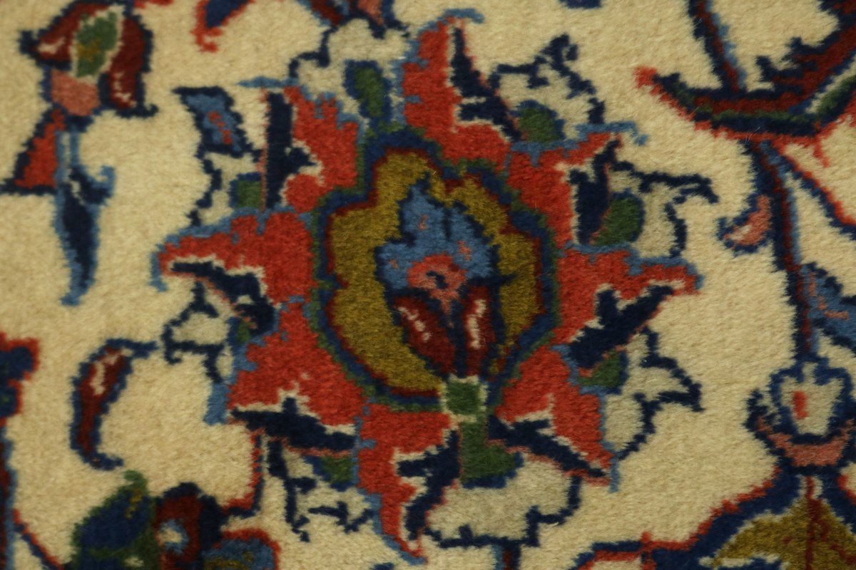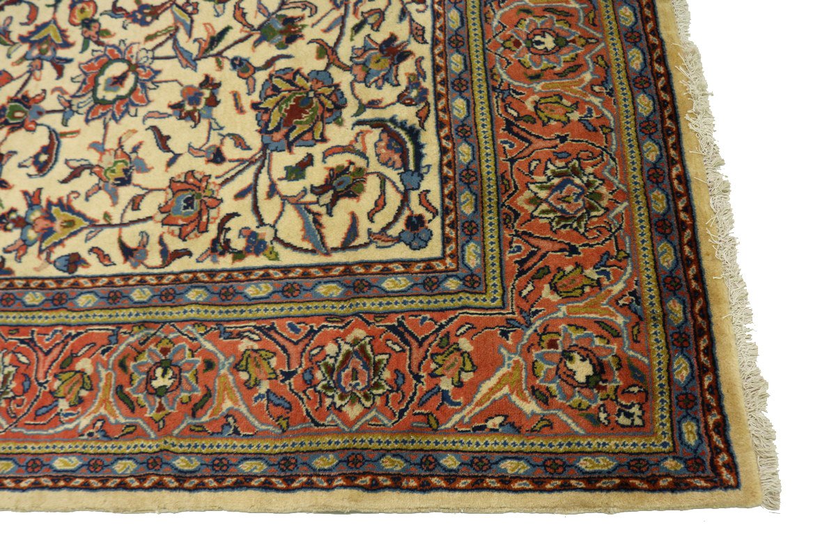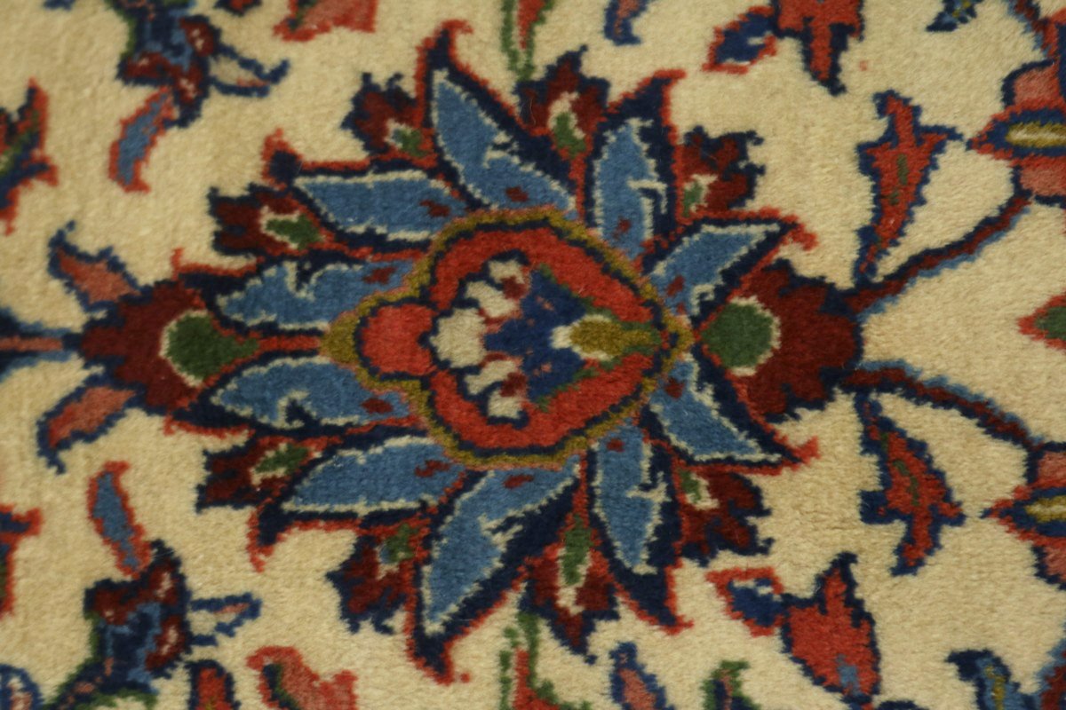 Handmade Persian rug made with vegetable dyes (fine wool pile and cotton foundation), superior knot count, and appealing ancient designs. This Oriental rug never will go out of style and would be among your most valuable treasures.