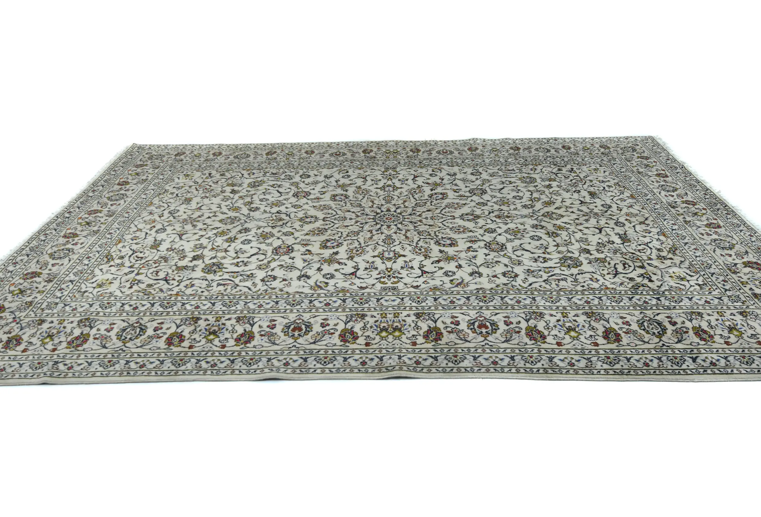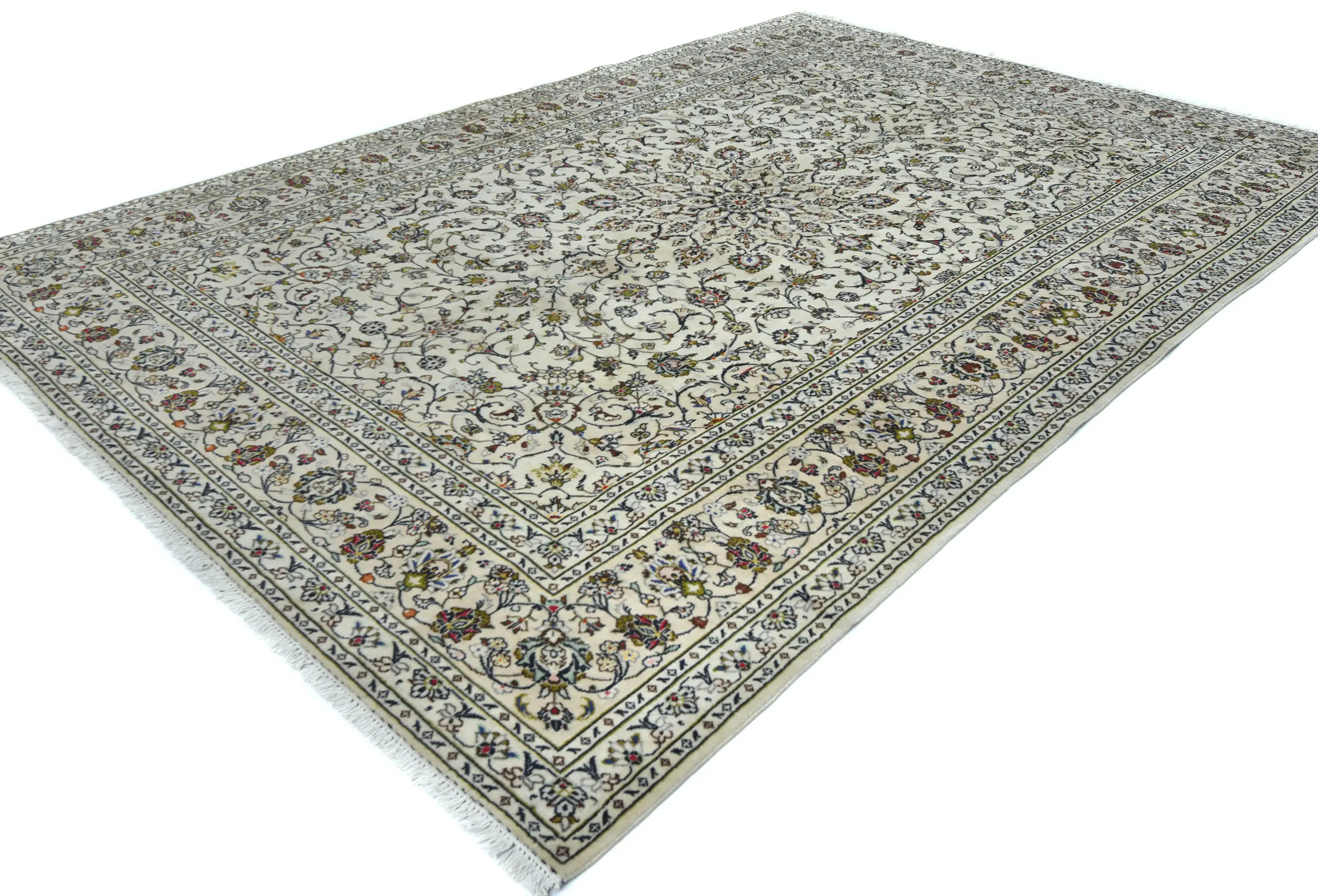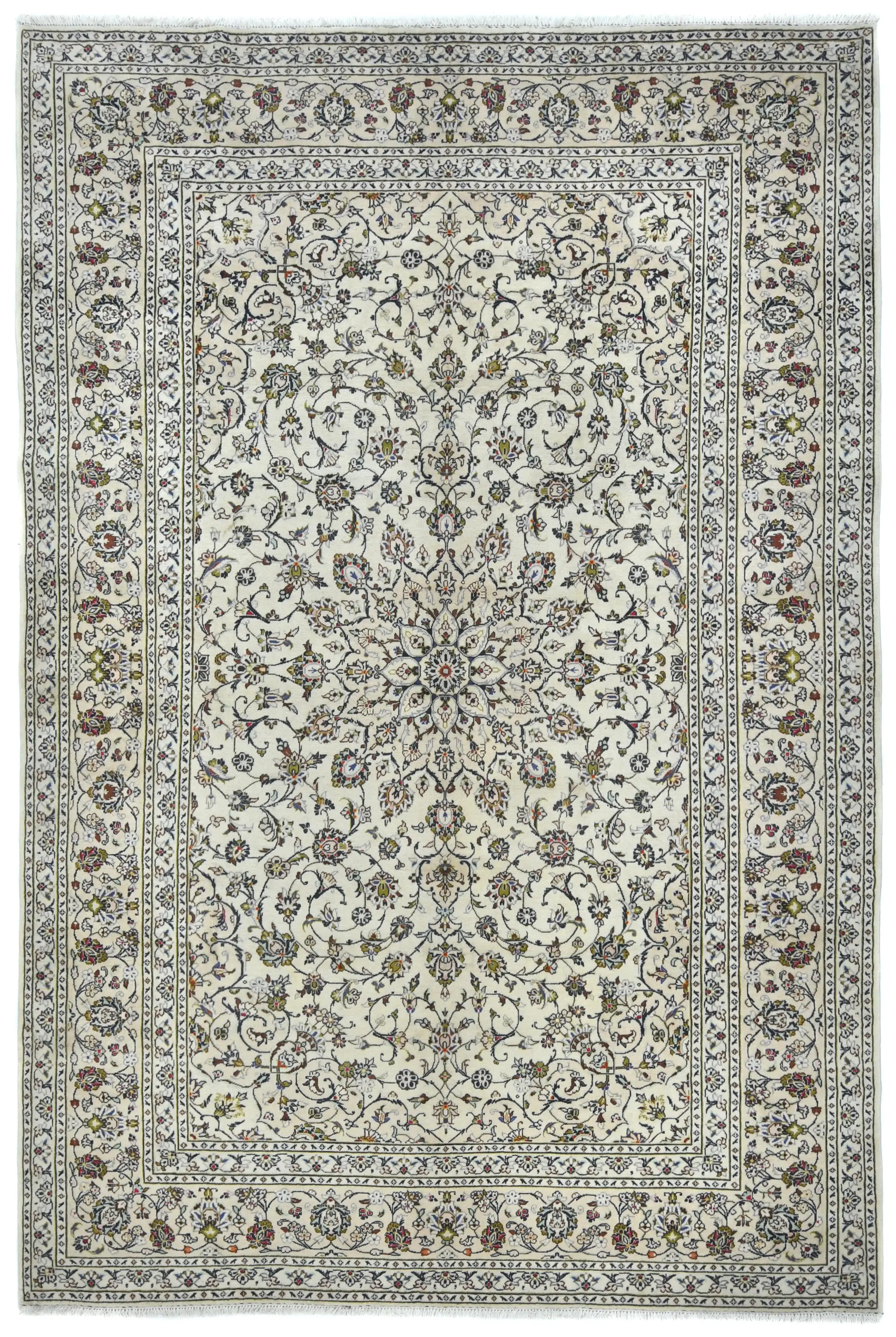 Vintage Cream Floral Traditional 8X12 Kashan Persian Rug
