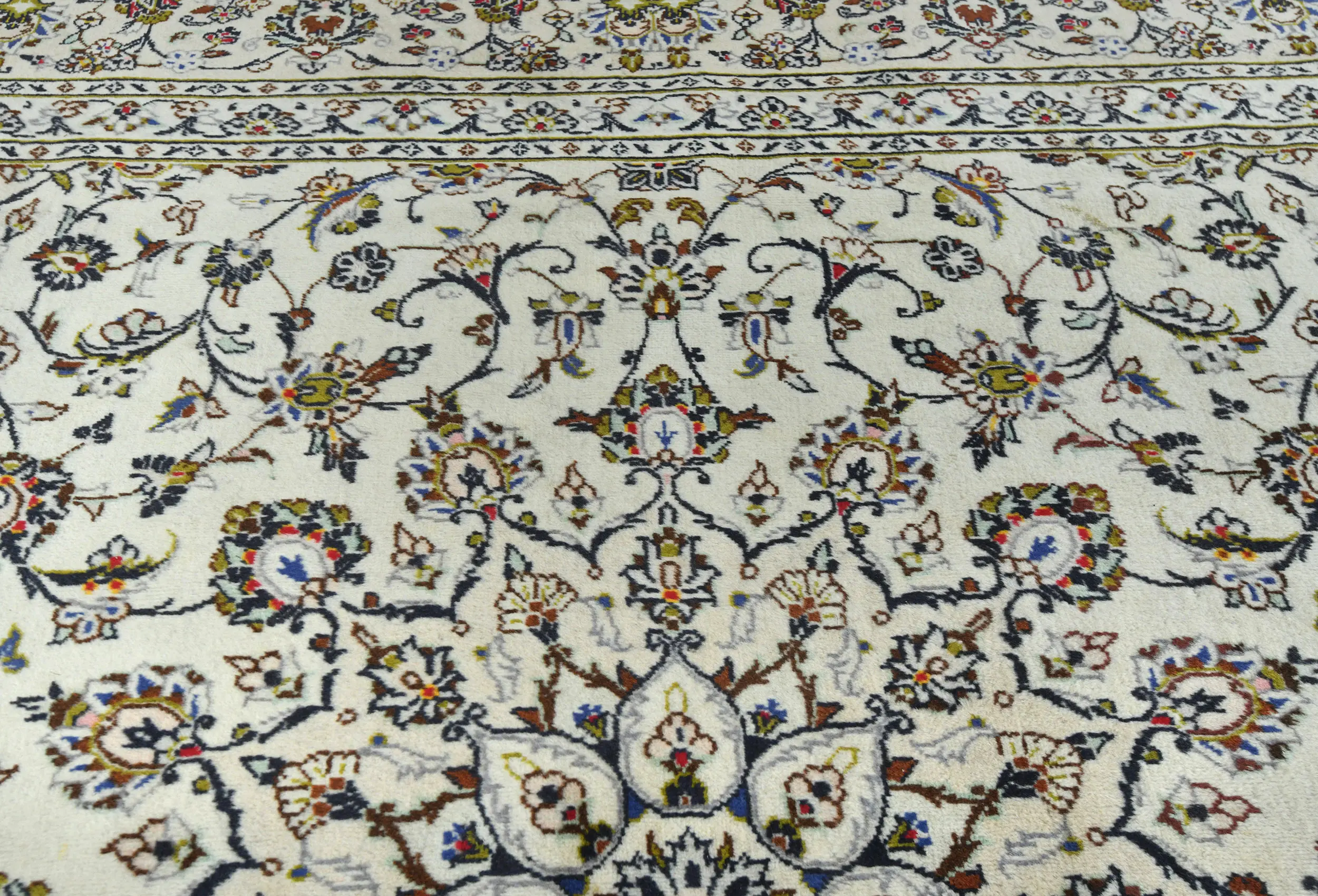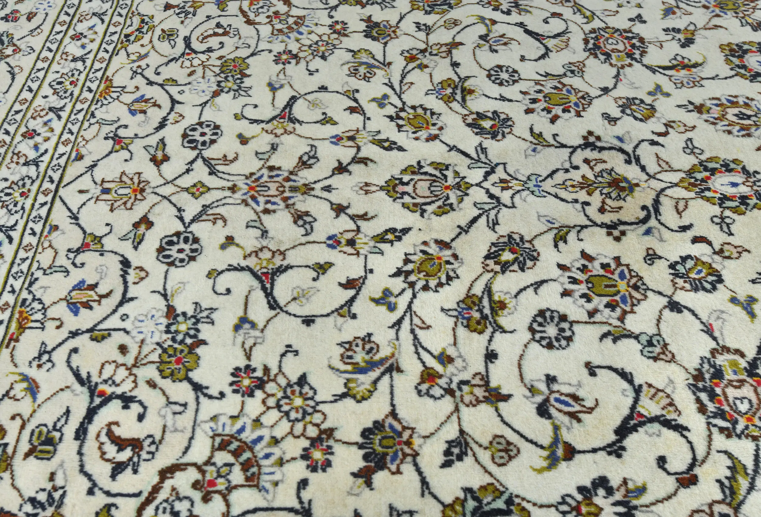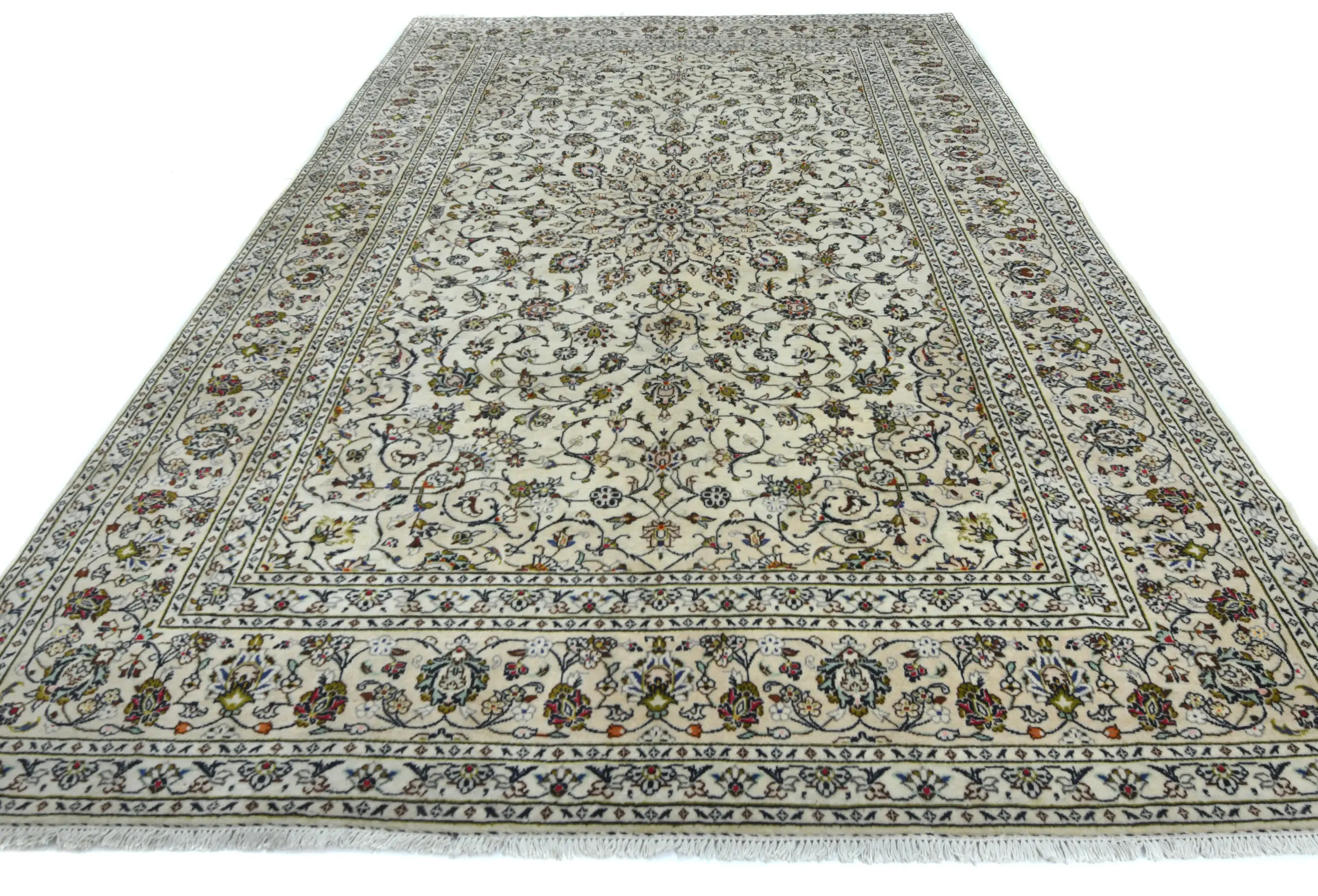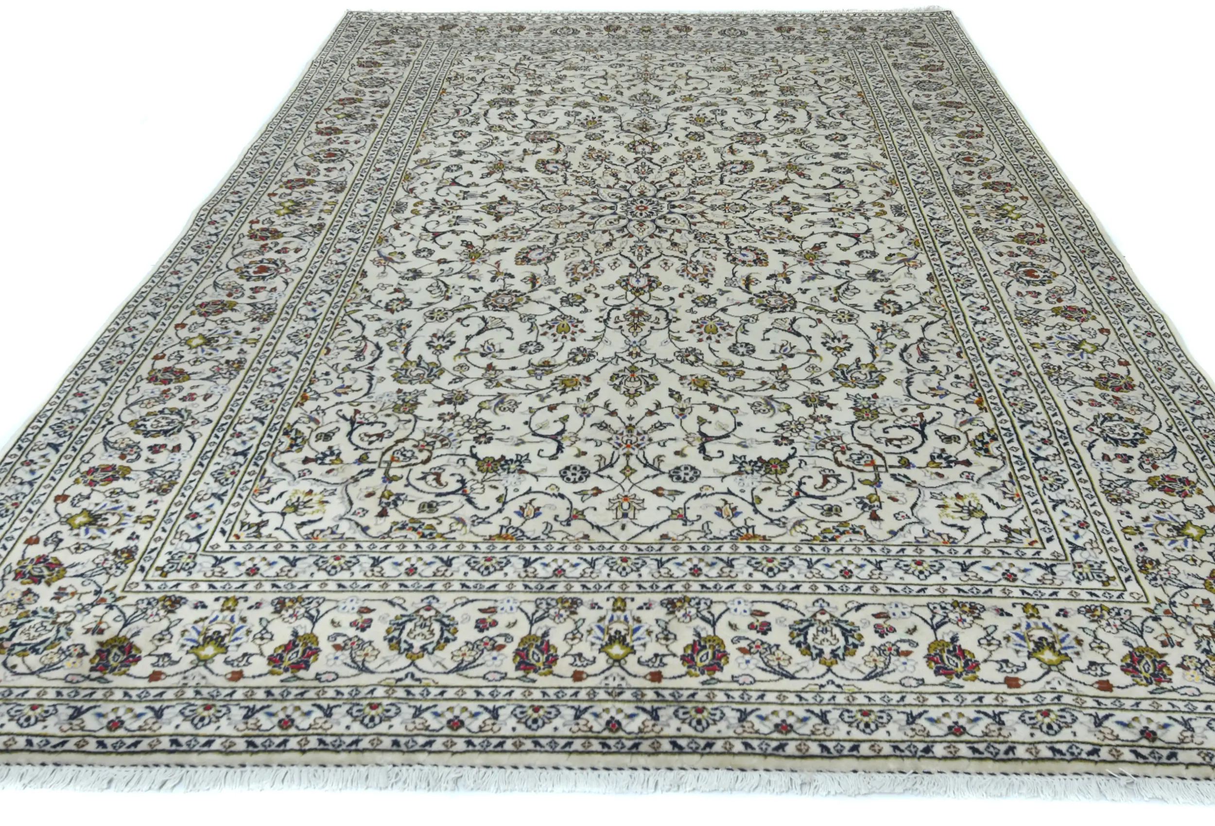 Vintage Cream Floral Traditional 8X12 Kashan Persian Rug