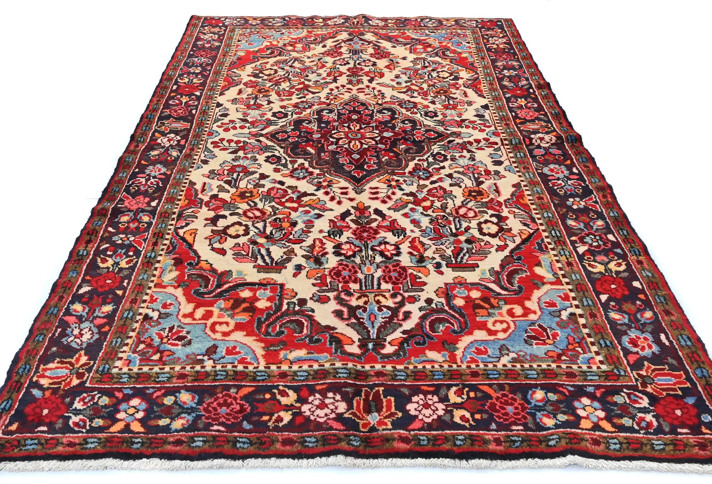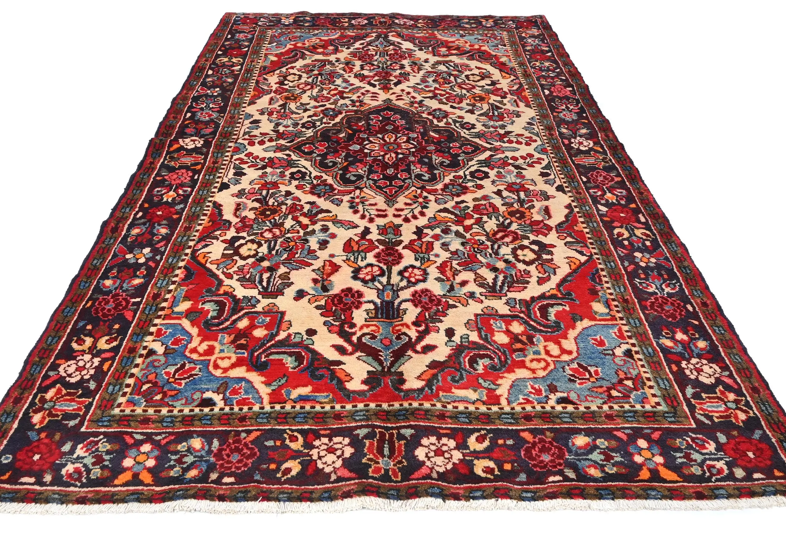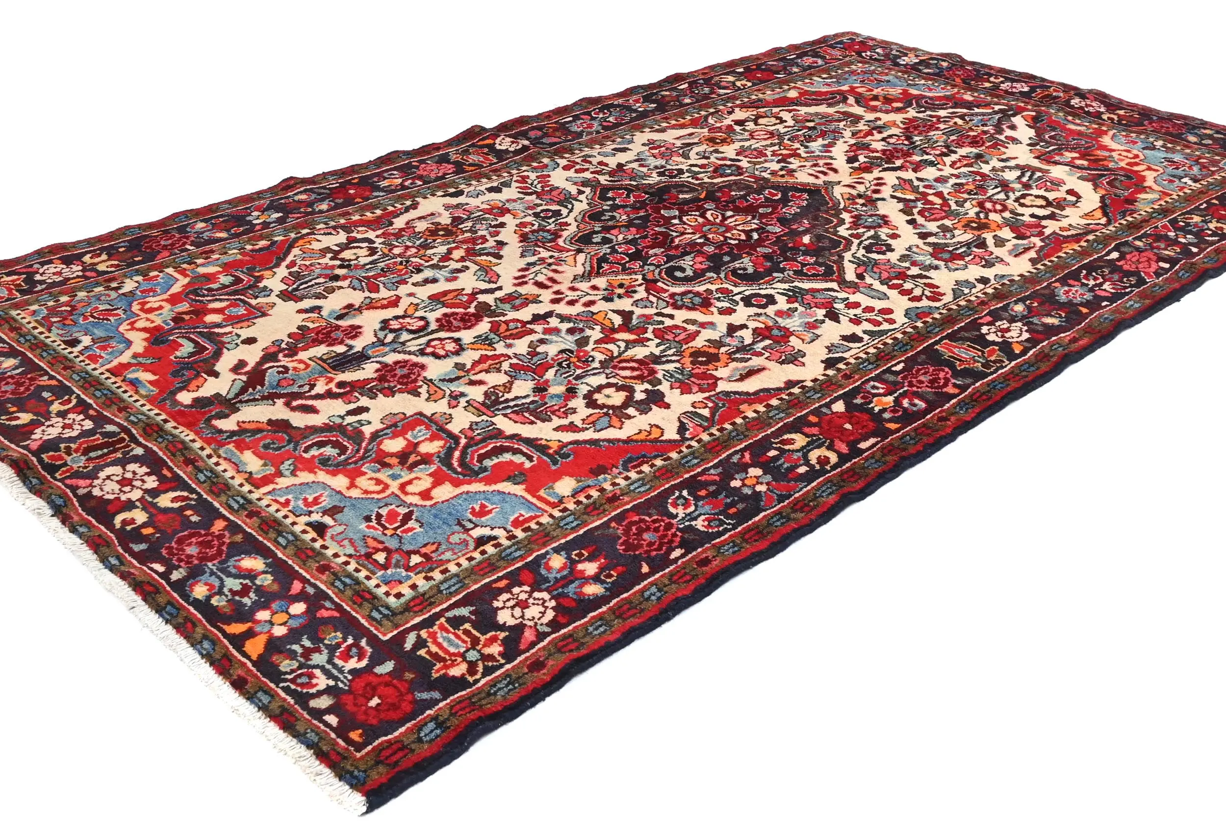Vintage Cream Floral Tribal 5X9 Hamedan Persian Rug