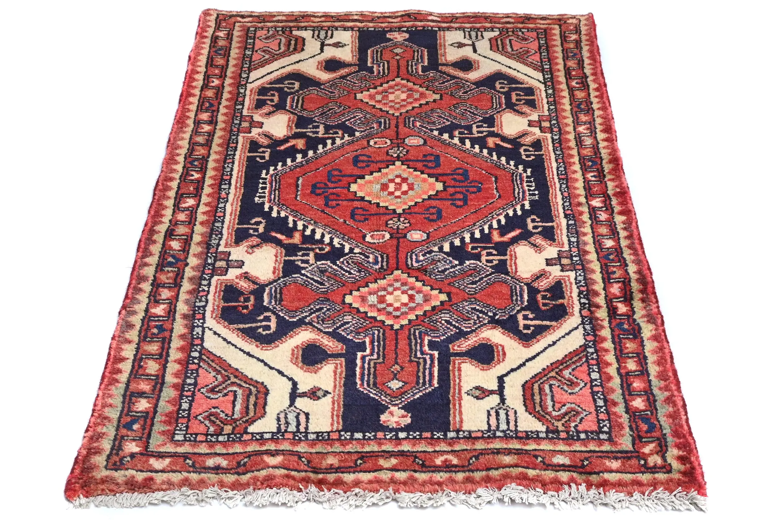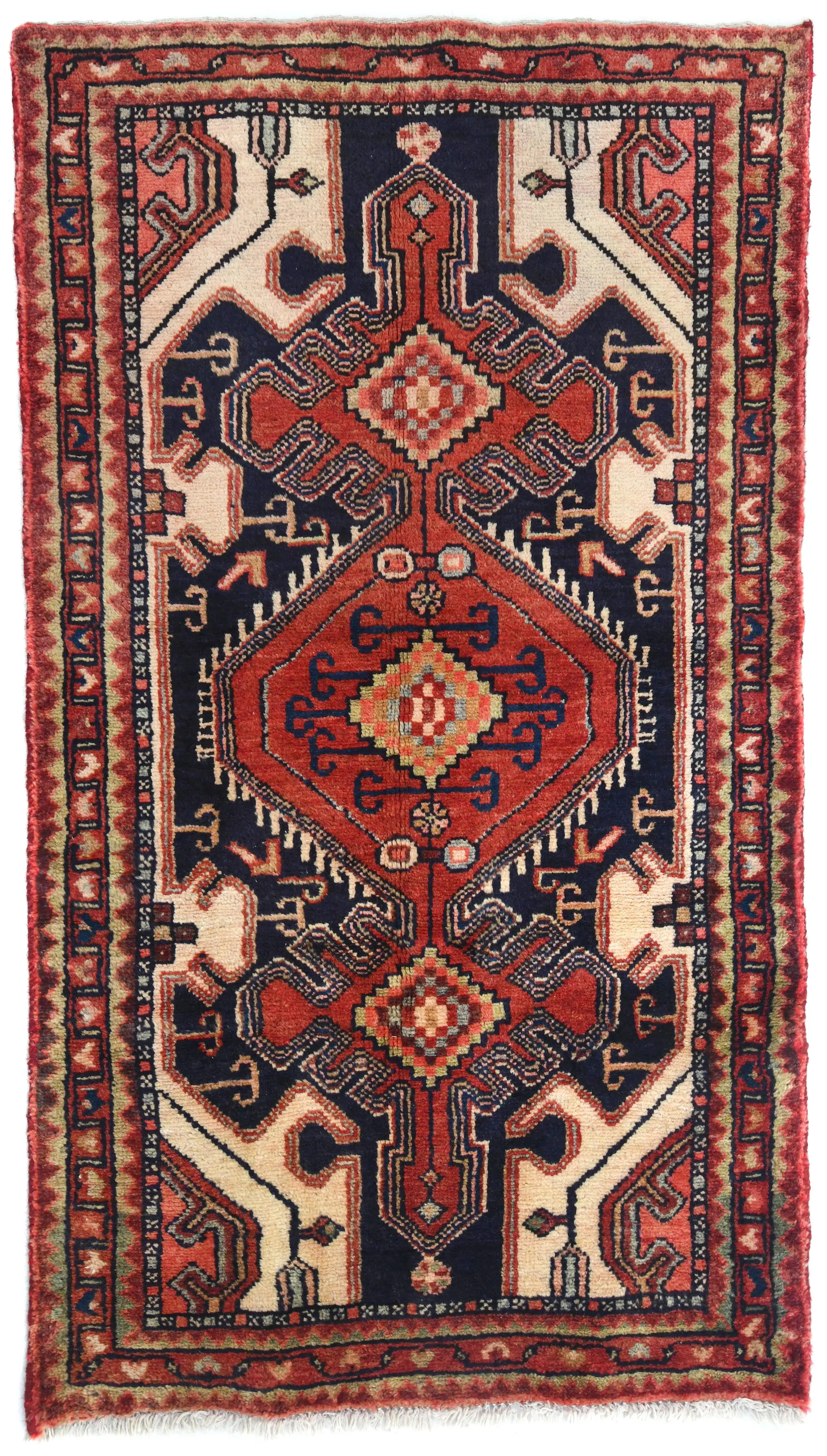 Vintage Cream Geometric 2'7X4'6 Hamedan Persian Rug