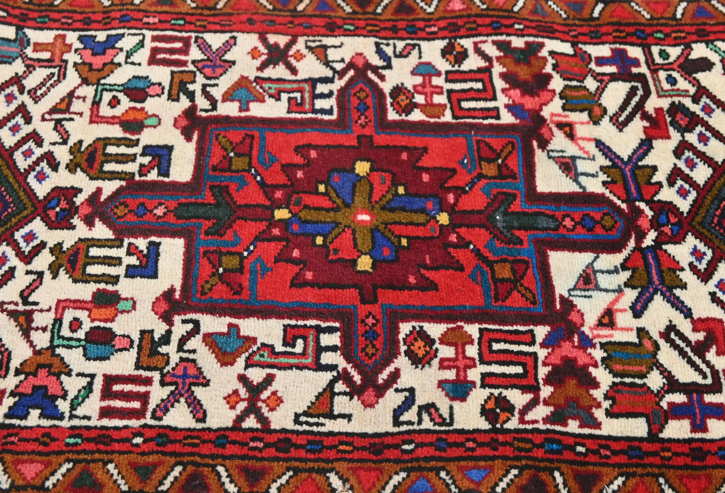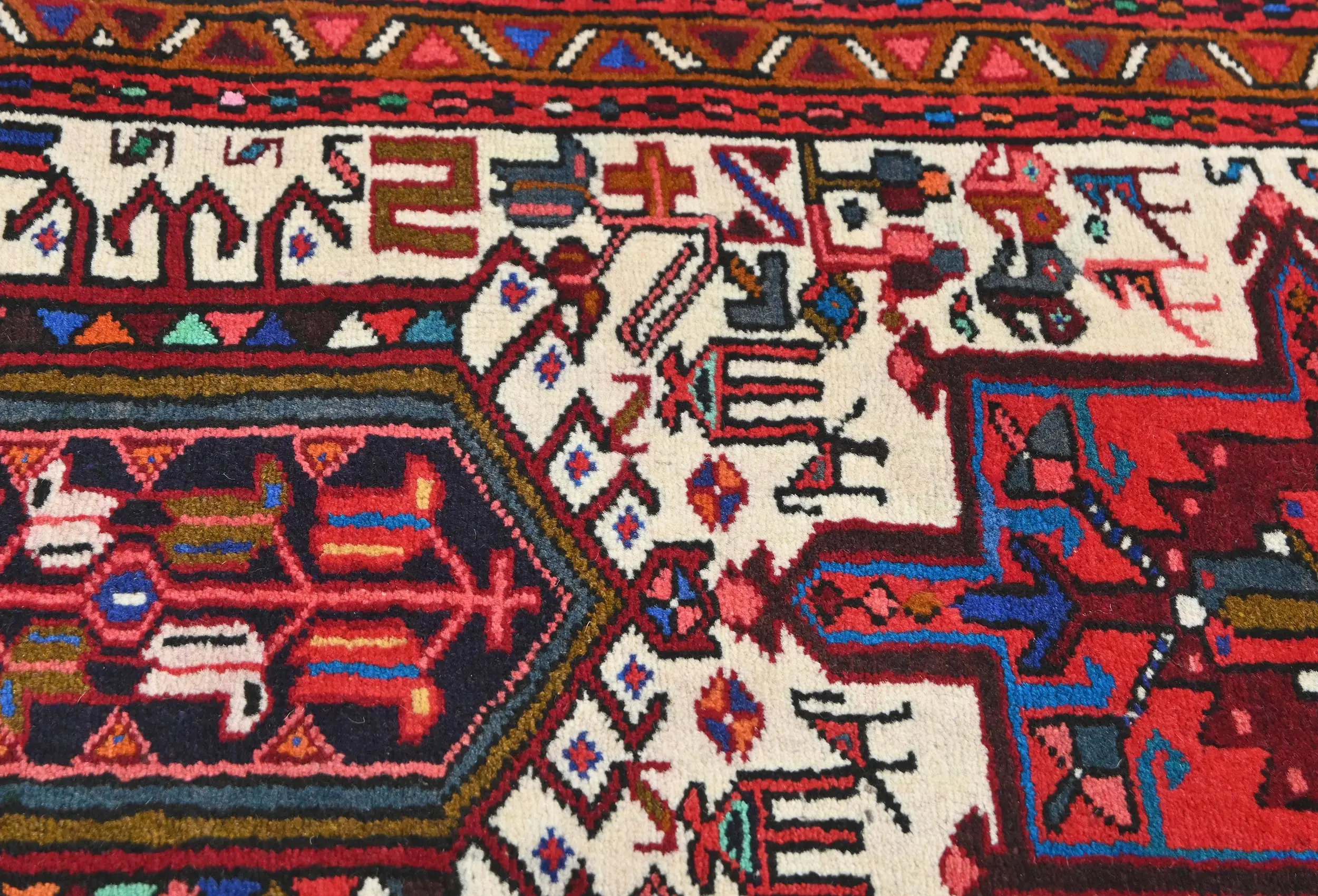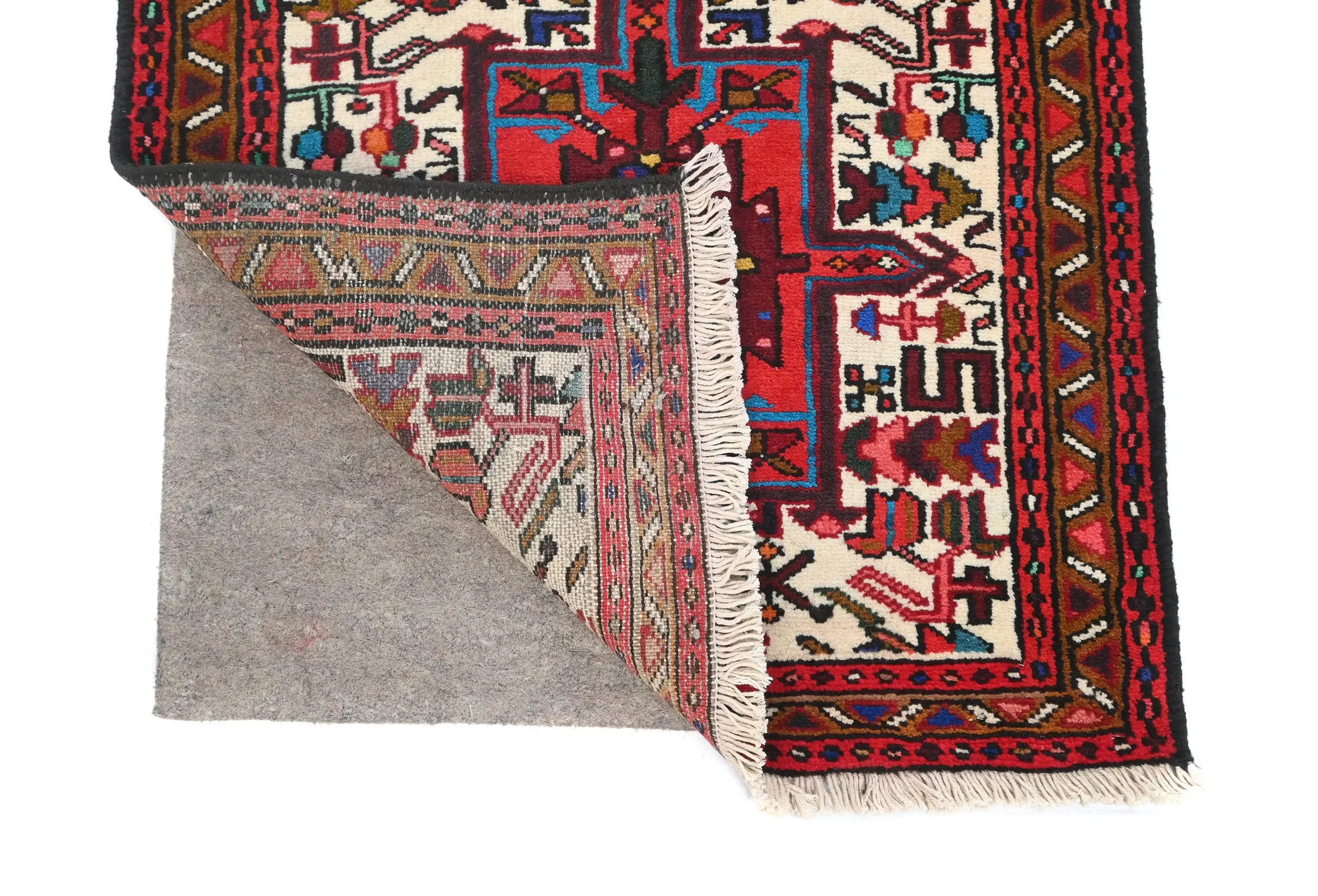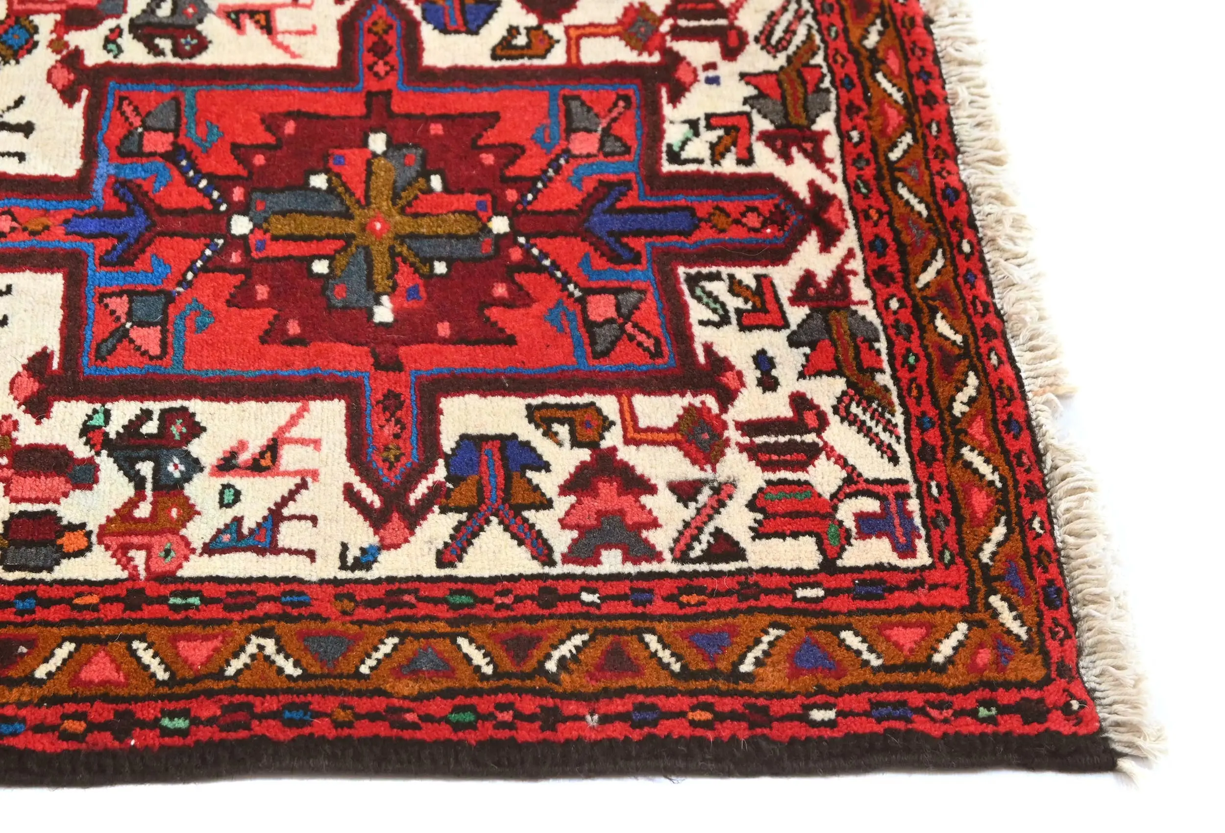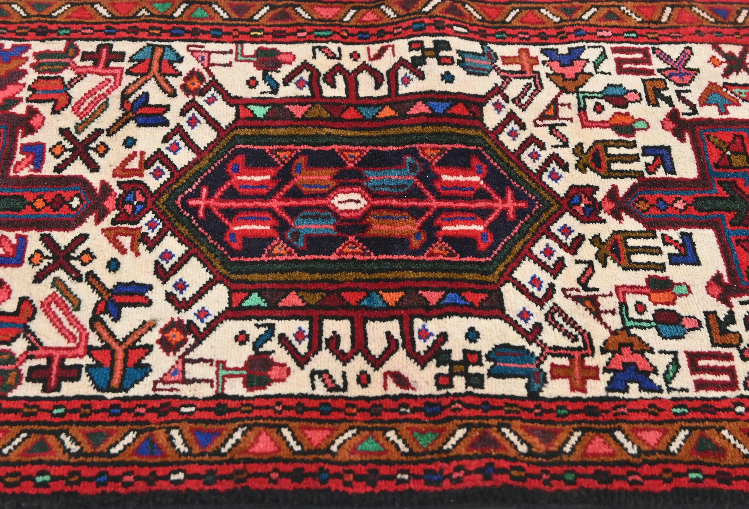 Vintage Cream Geometric 2X9 Karajeh Persian Runner Rug