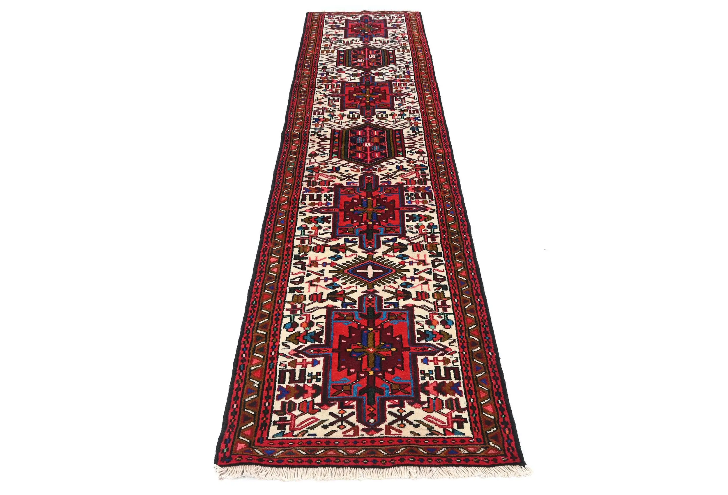 Hand Knotted vintage 2X9 cream Persian runner made with vegetable dyes (fine wool pile and cotton foundation), superior knot count, and appealing ancient designs. This Oriental runner never will go out of style and would be among your most valuable treasures.