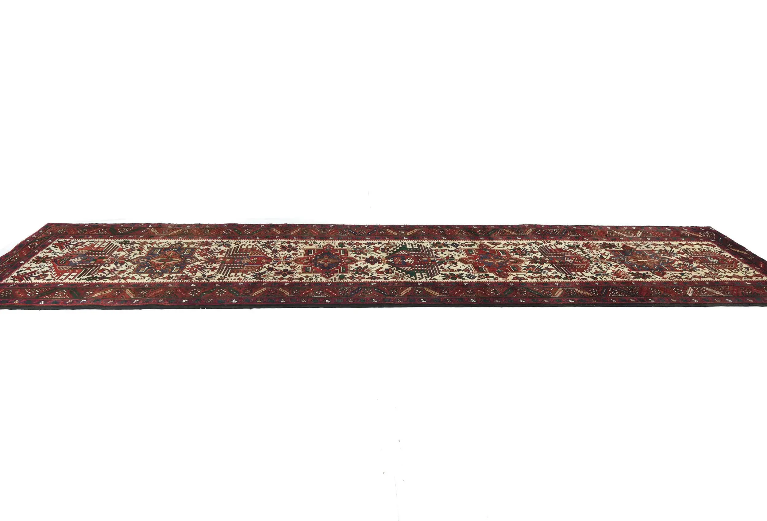 Vintage Cream Geometric 3'4X14'6 Karajeh Persian Runner Rug