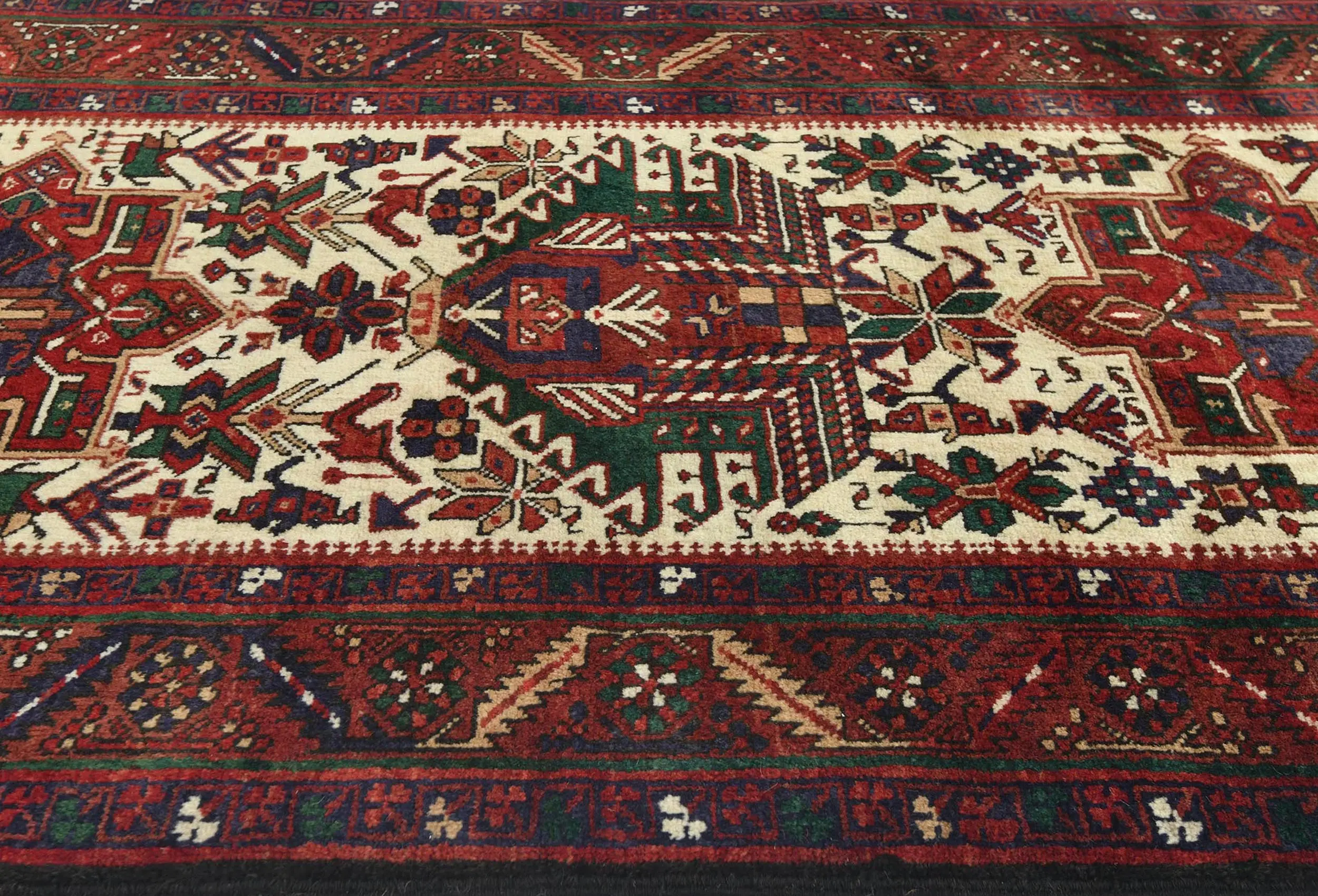 This original 3'4X14'6 cream vintage Persian runner was crafted by the hands of skilled weavers enthused by a variety of lovely artistic designs, to recreate the aged look of the unique piece with a richness of color and beautifully elaborated background field. What set this tribal Oriental area runner from the others are the material and dye used (wool pile and cotton foundation), knot count, ancient designs, fantastic grades, and its regional historical connection: it has deep roots, from the story of the people who produced it to the meaning of the symbols and colors displayed across its canvas that have been praised for centuries. This home décor carpet will be completely cozy and inviting that never will go out of style! Also, this Oriental runner would be among your most valuable treasures, it is a great investment that increase in value over time, and it will last for generations because was woven with high-quality, all-natural wool; it won’t rip, tear, or shed. Environmentally friendly, opulent yet affordable; this Persian rug will give you a thorough amount of character to help define your living space with sophistication and warmth that will capture the eyes and attention of your audience (homeowners, designers, decorators, family and friends). EB-7236