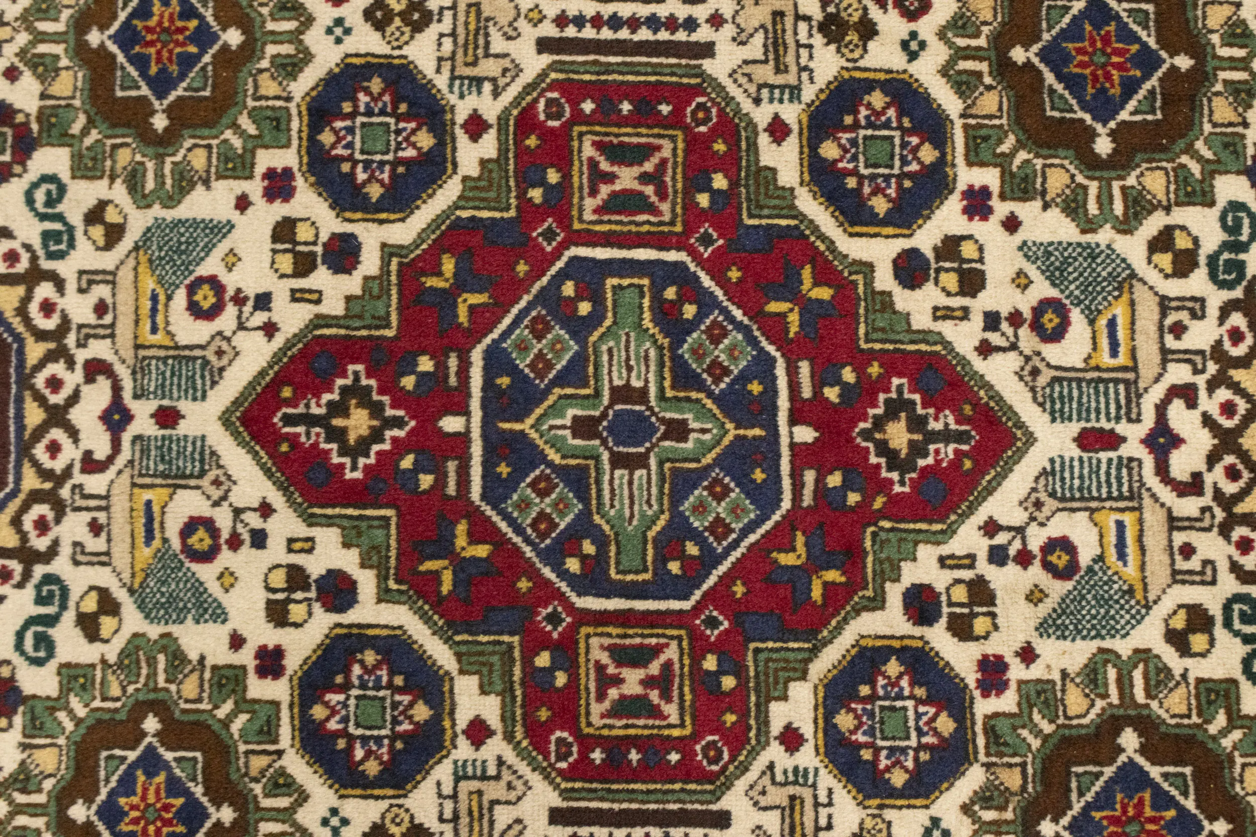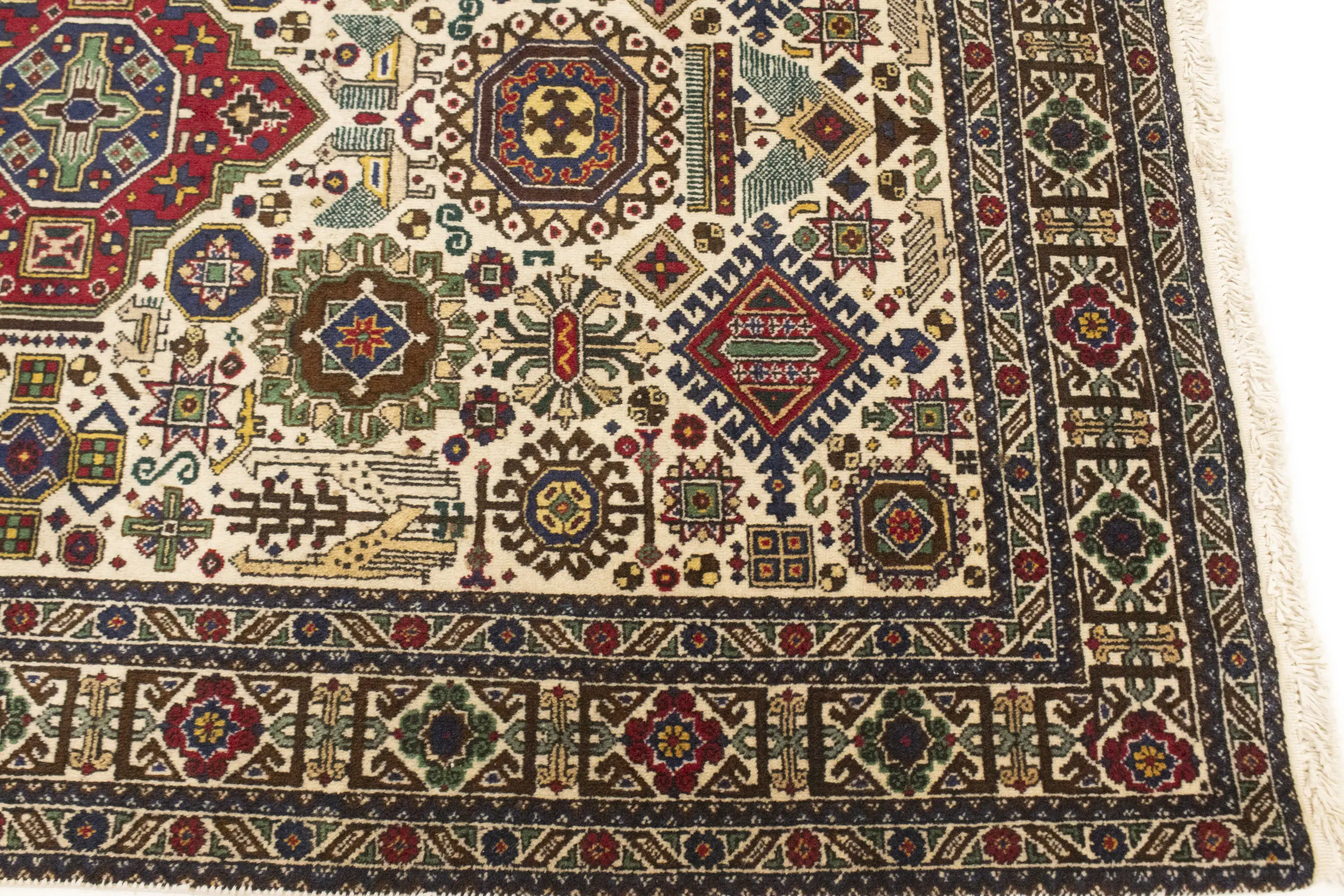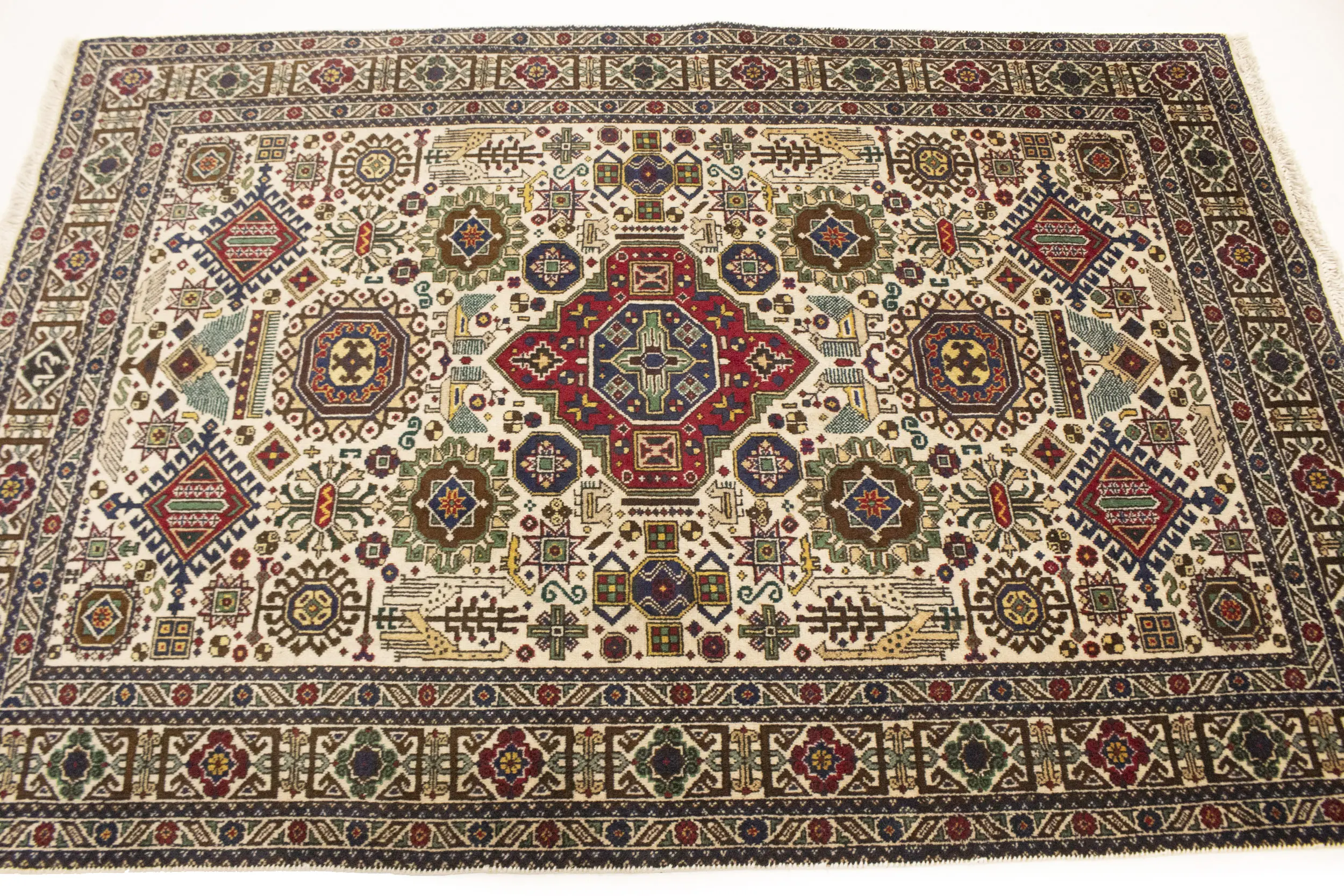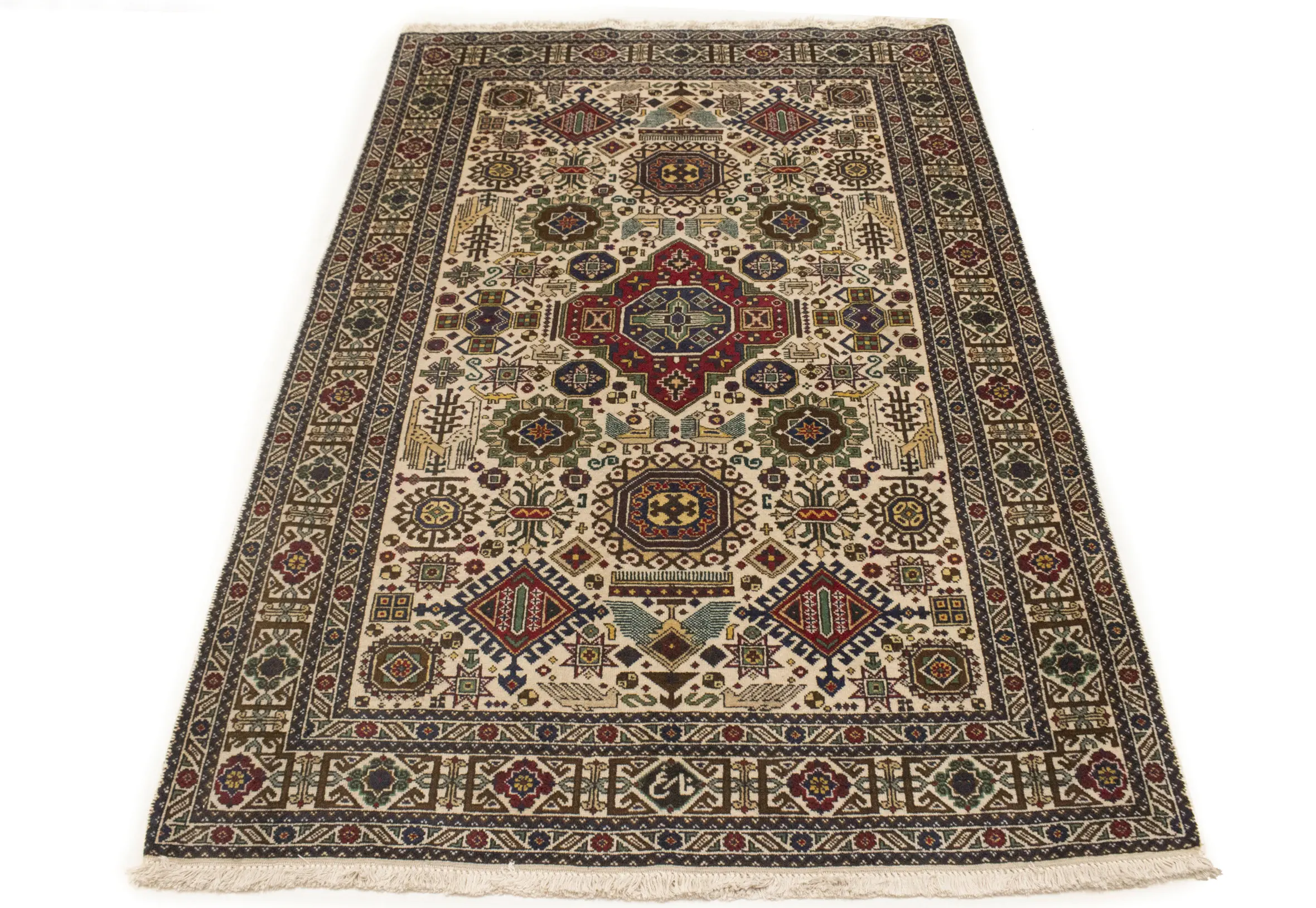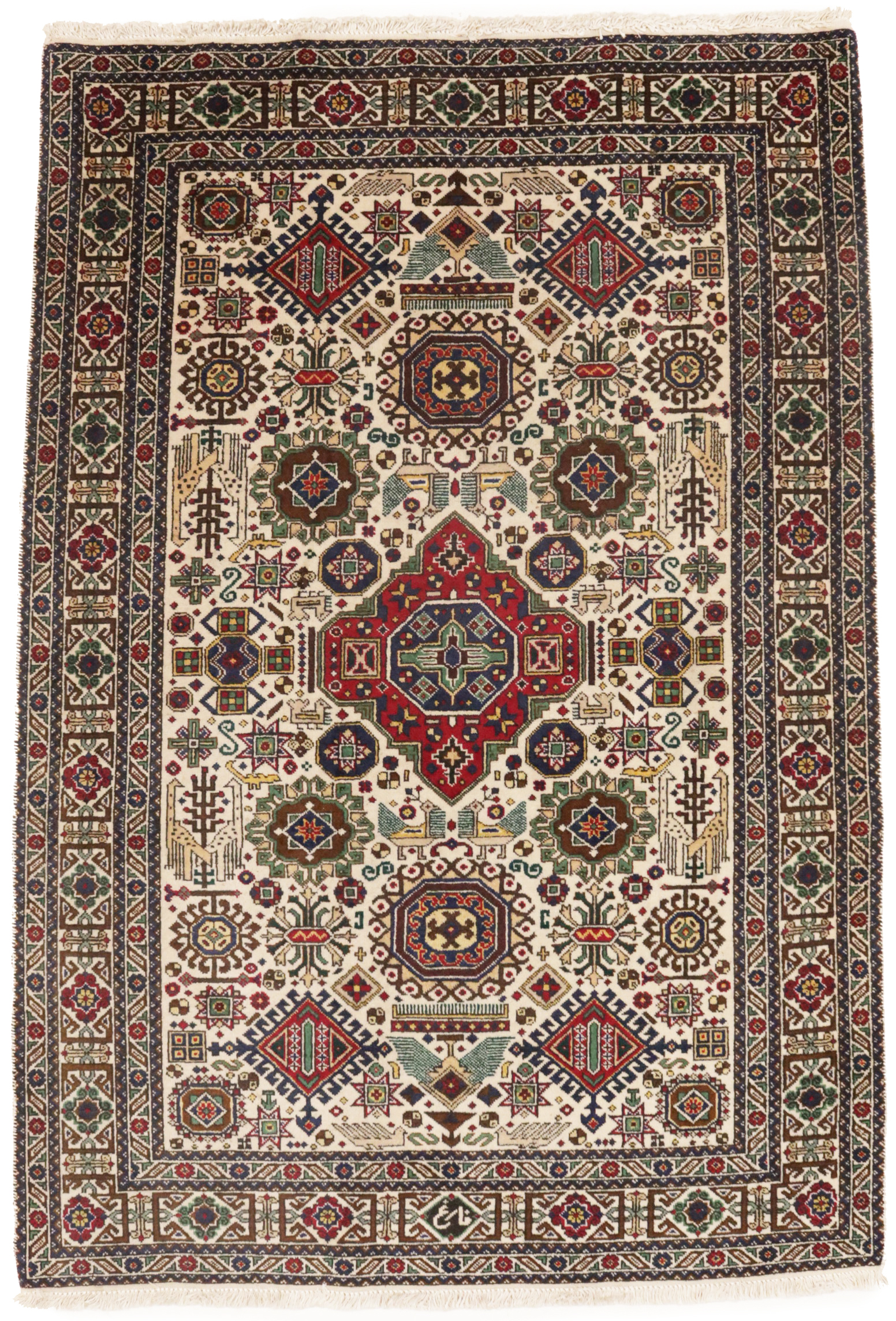 Handmade vintage 4'5X6'5 cream Persian rug made with natural dyes (fine wool pile and cotton foundation), superior knot count, and alluring ancient designs. This Oriental rug never will go out of style and would be among your most valuable treasures.