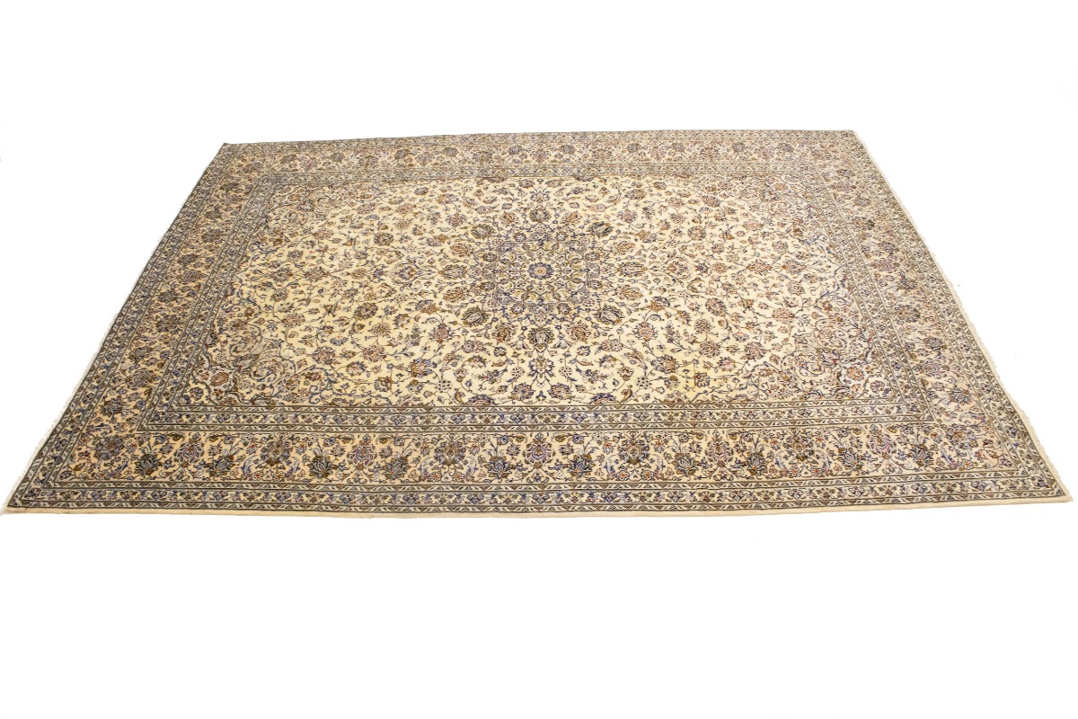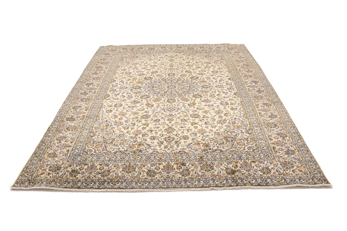 Vintage Cream Traditional 10X13 Kashan Persian Rug