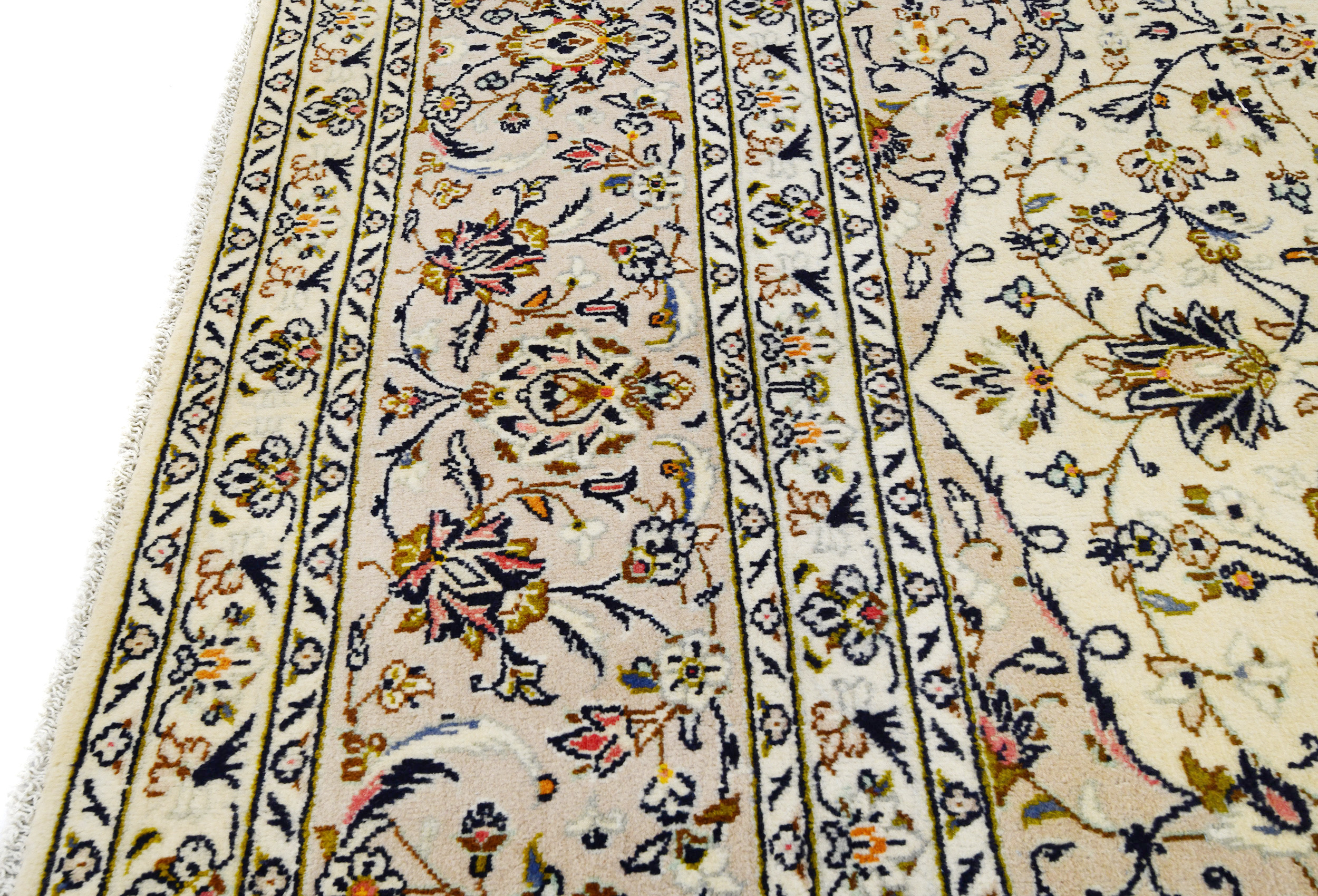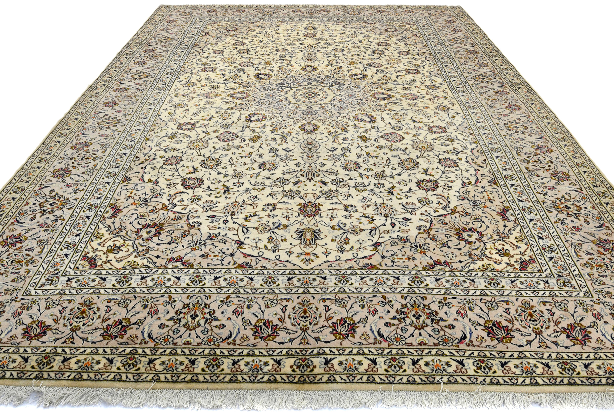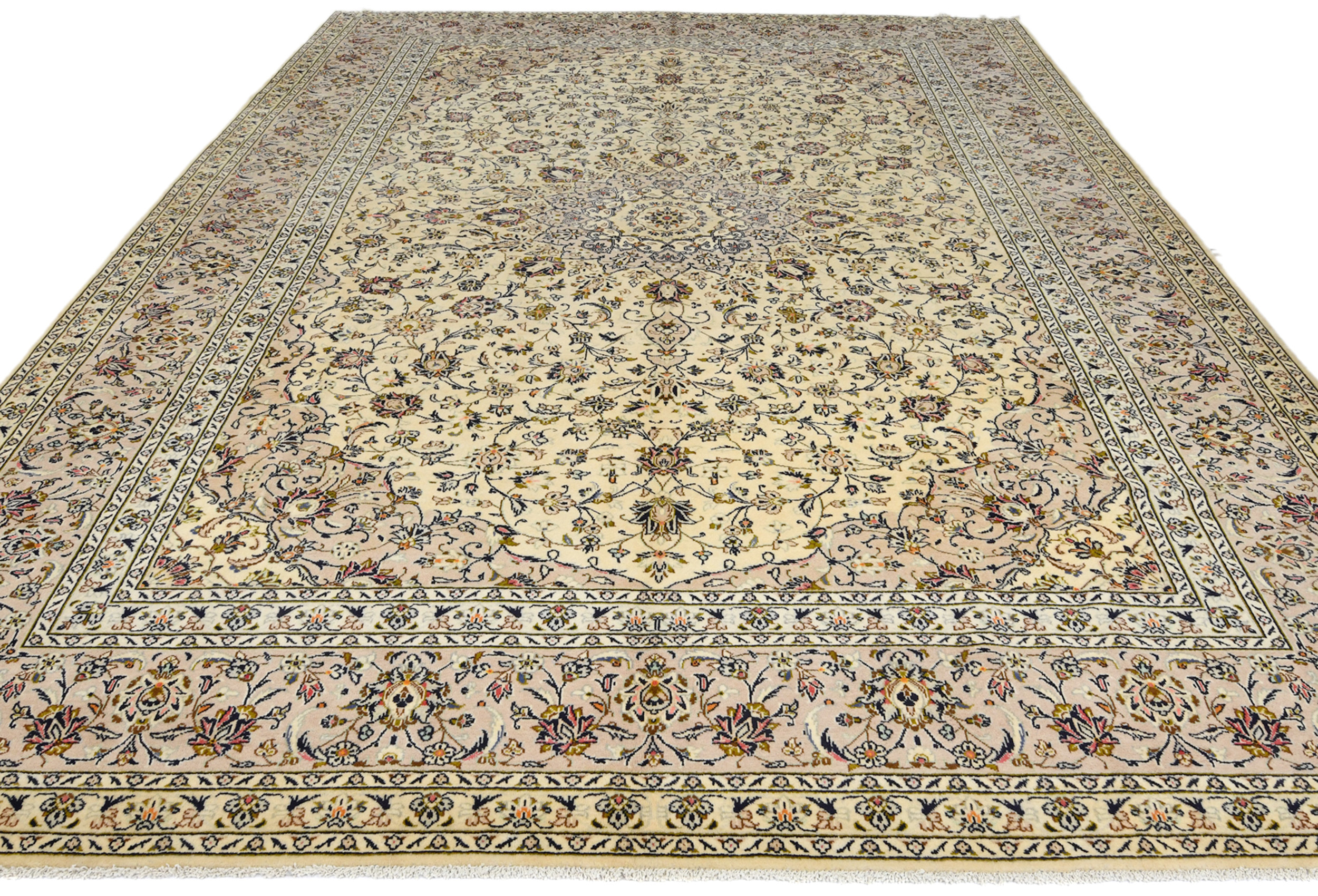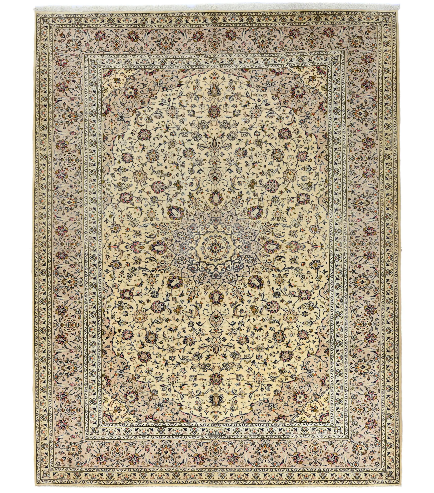 Vintage Cream Traditional 10X13 Kashan Persian Oriental Rug
