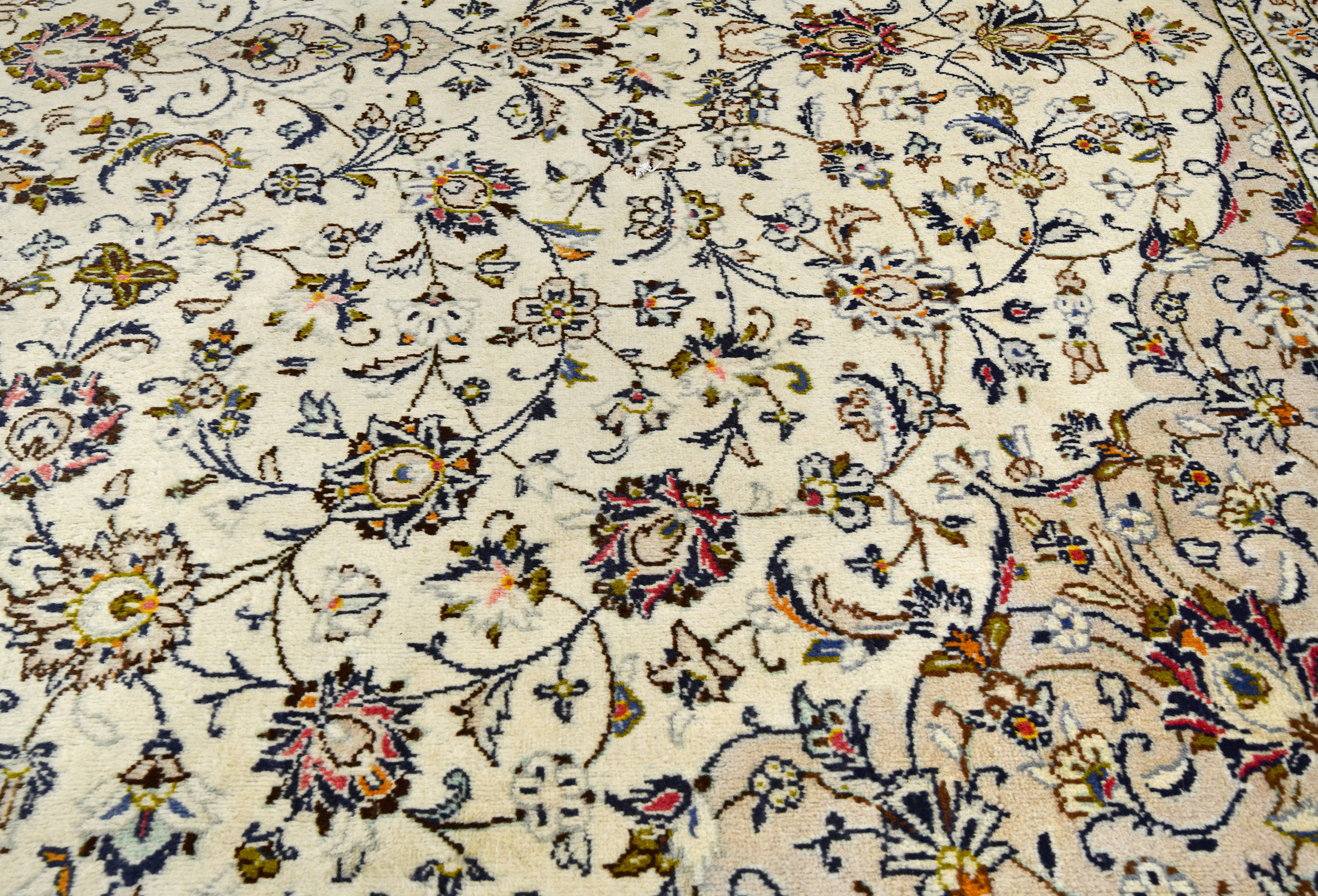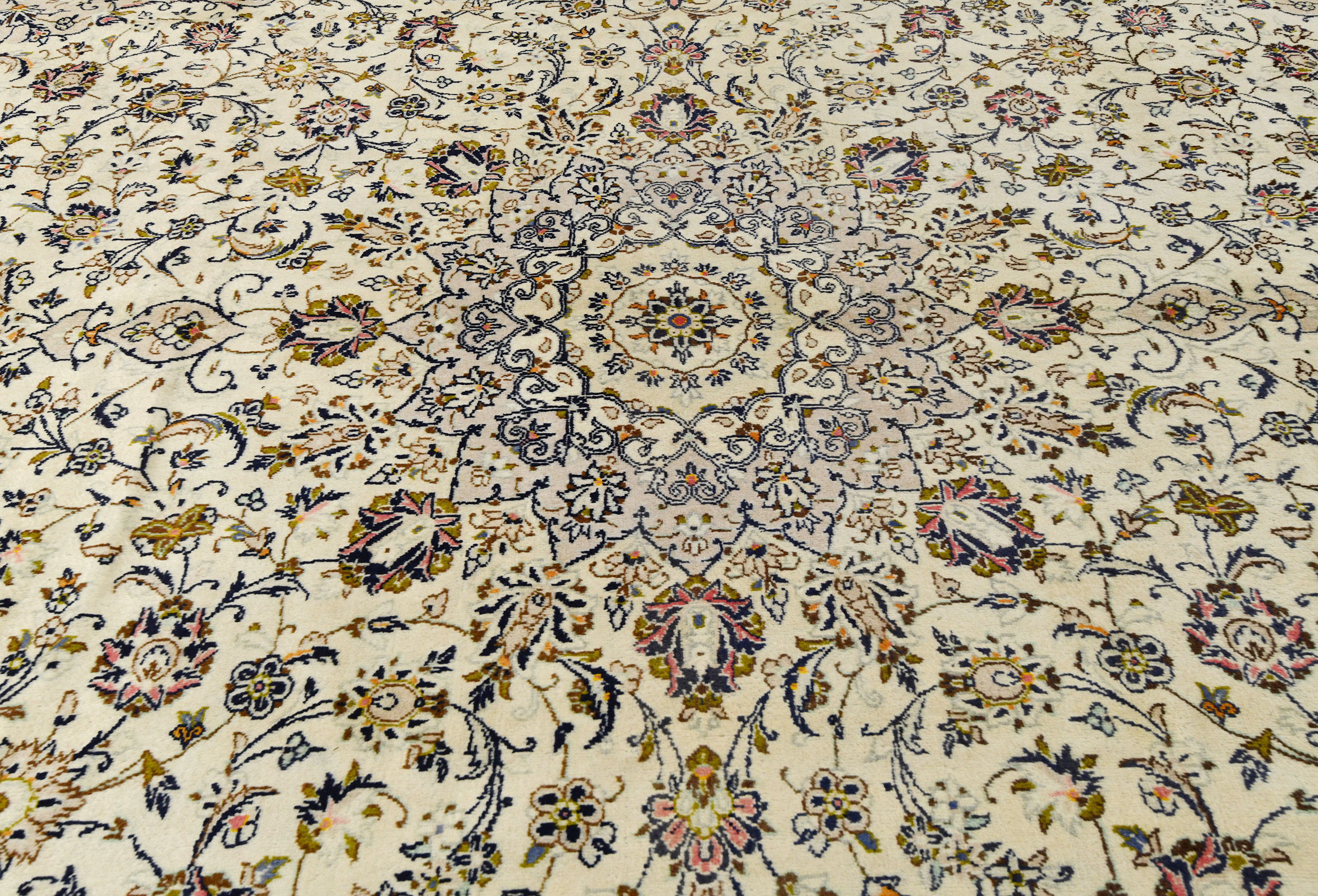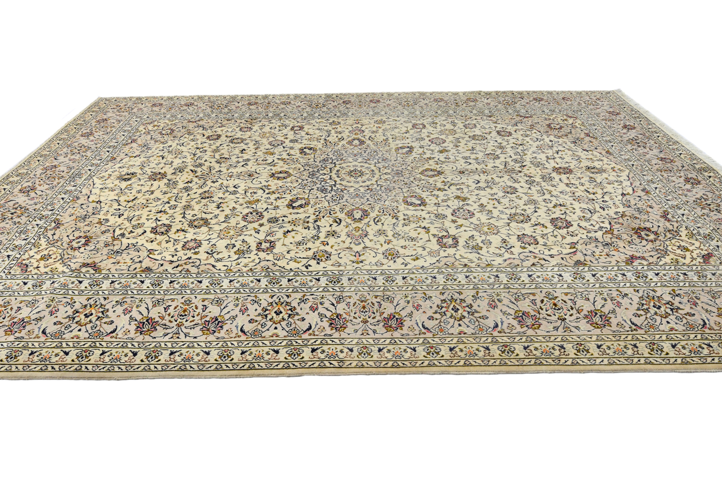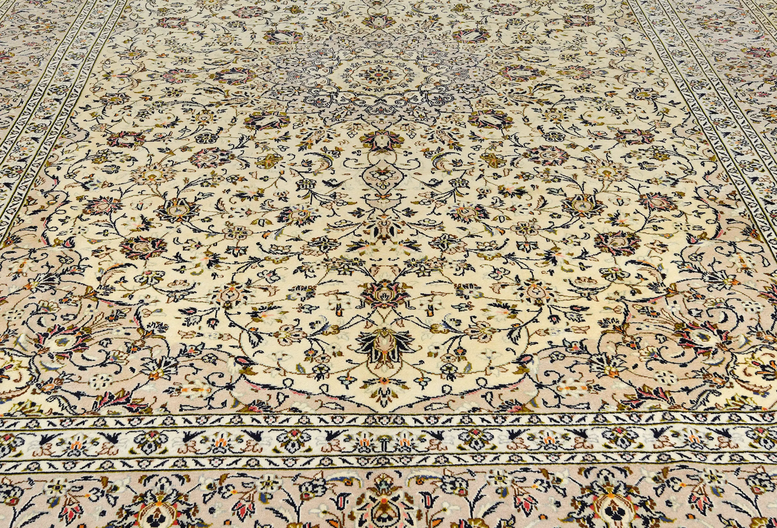 Vintage Cream Traditional 10X13 Kashan Persian Oriental Rug