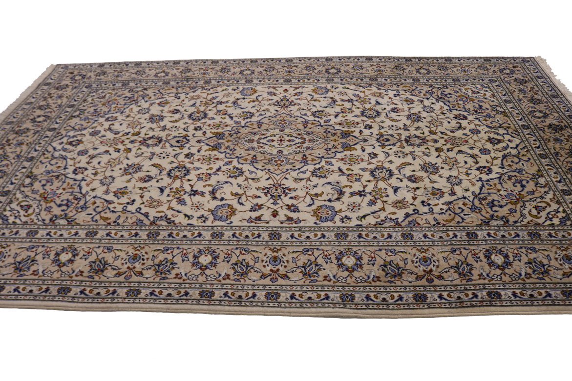 Vintage Cream Traditional 7X10 Kashan Persian Rug