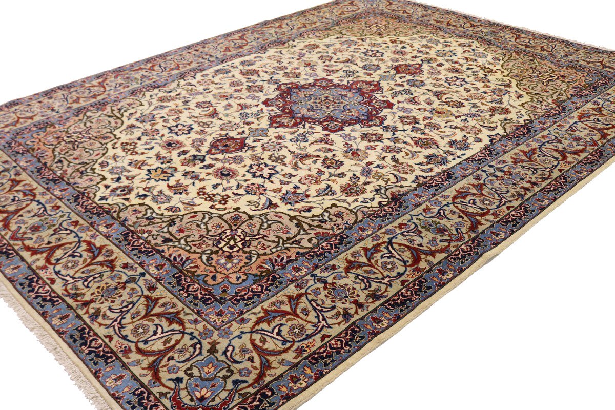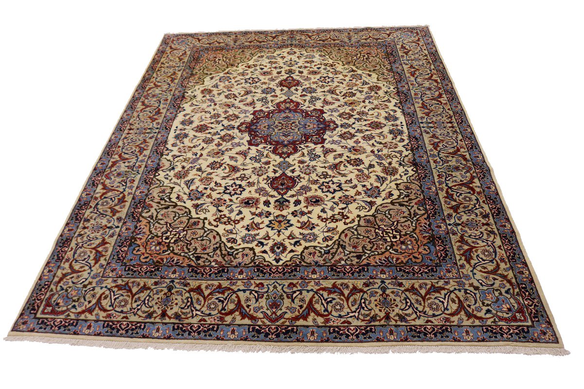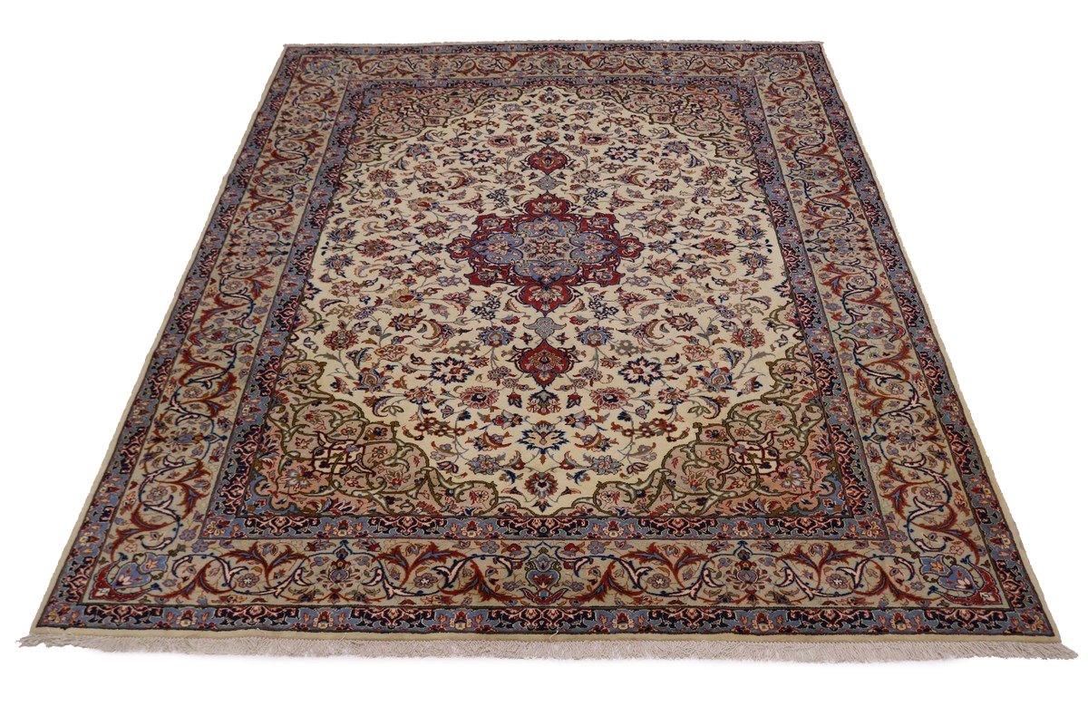 Vintage Cream Traditional 9X12 Isfahan Persian Rug