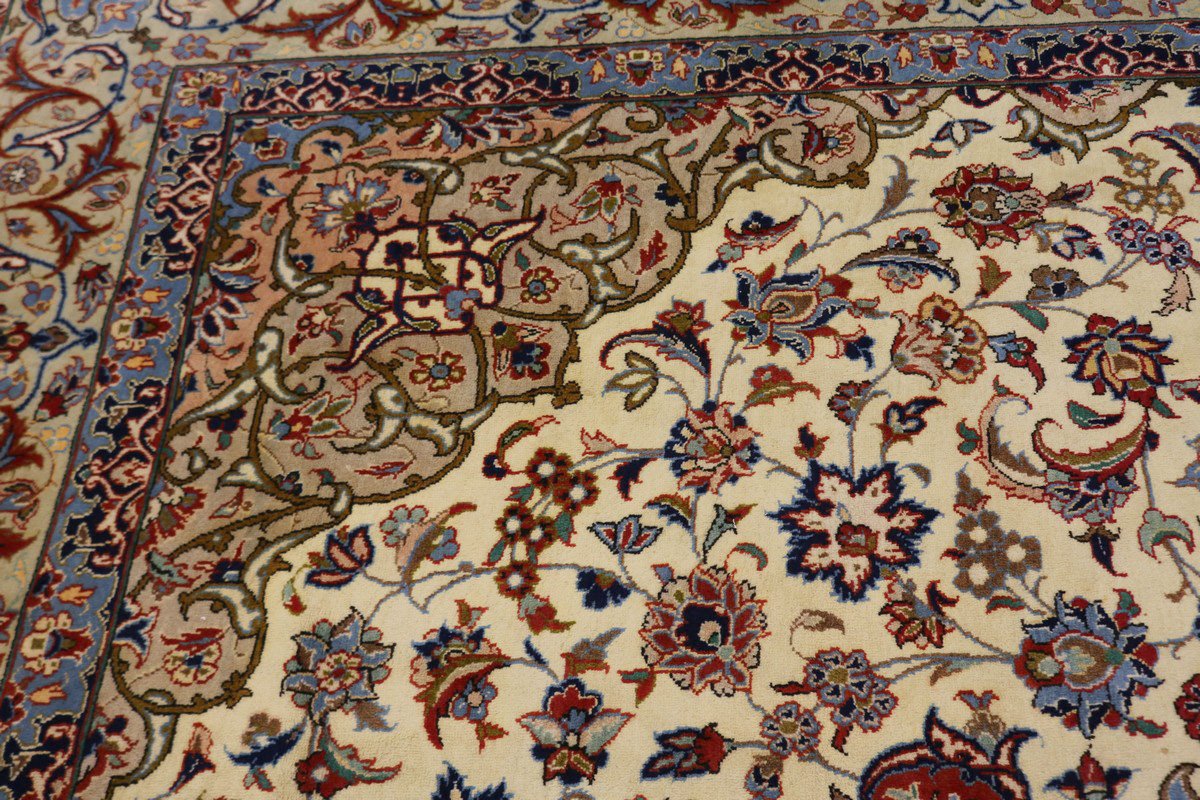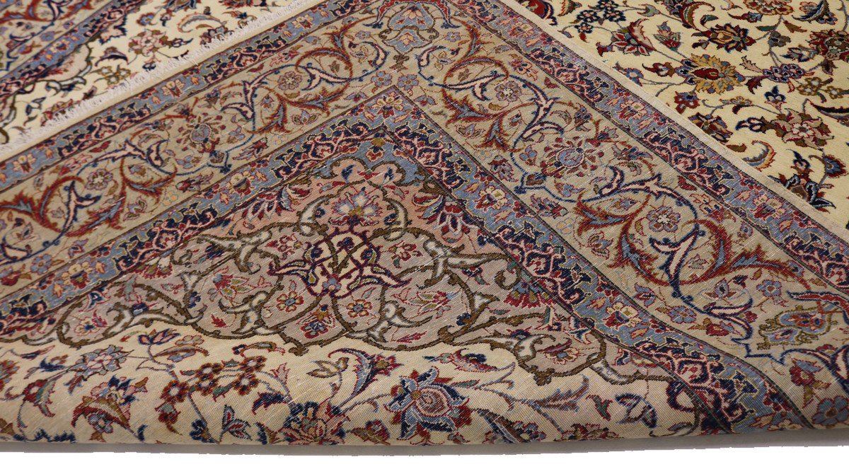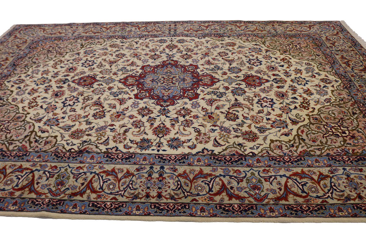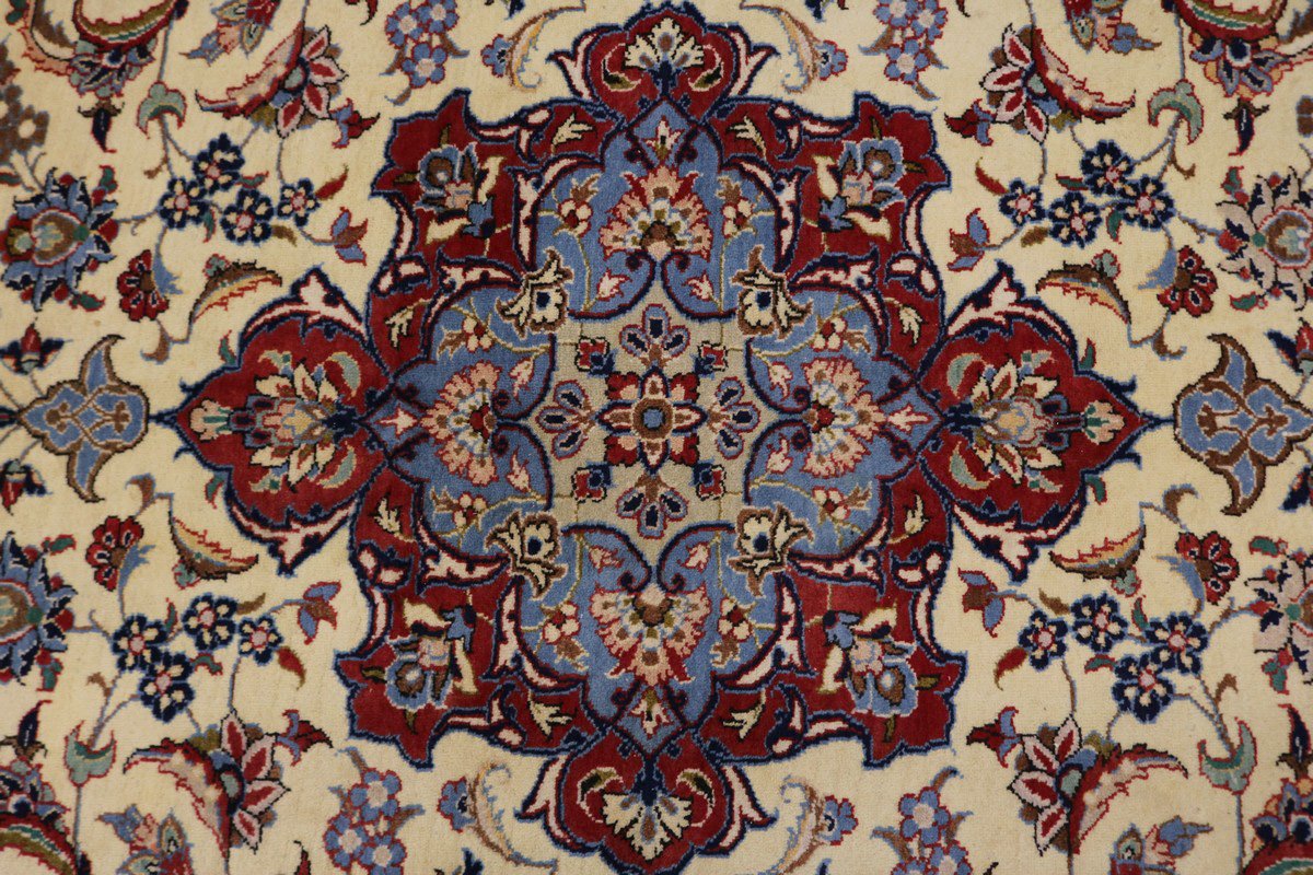 Vintage Cream Traditional 9X12 Isfahan Persian Rug