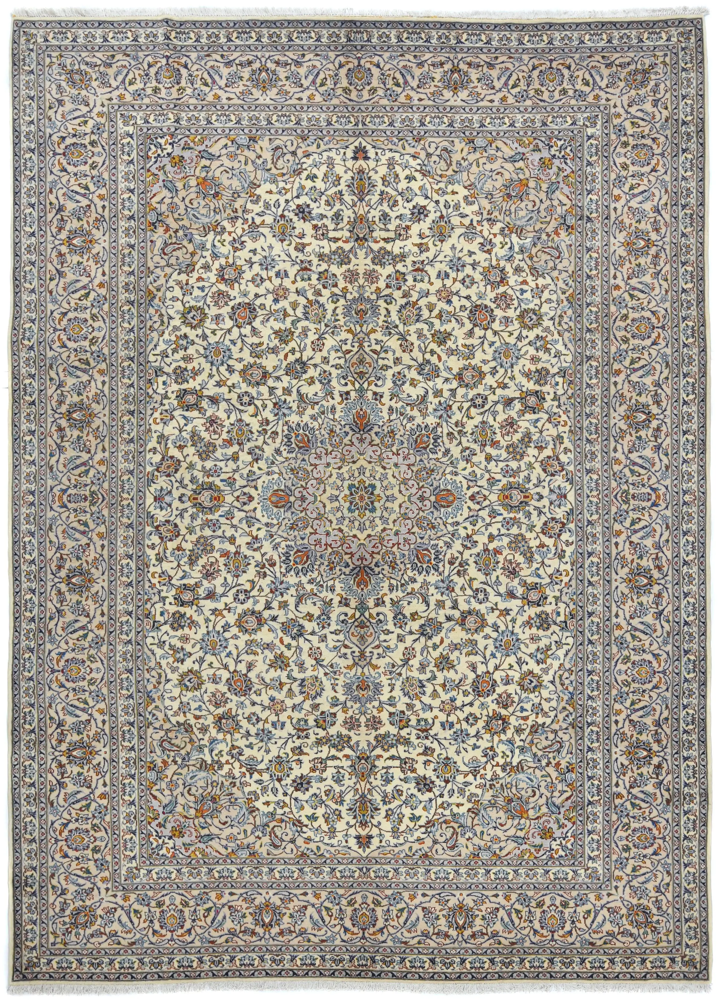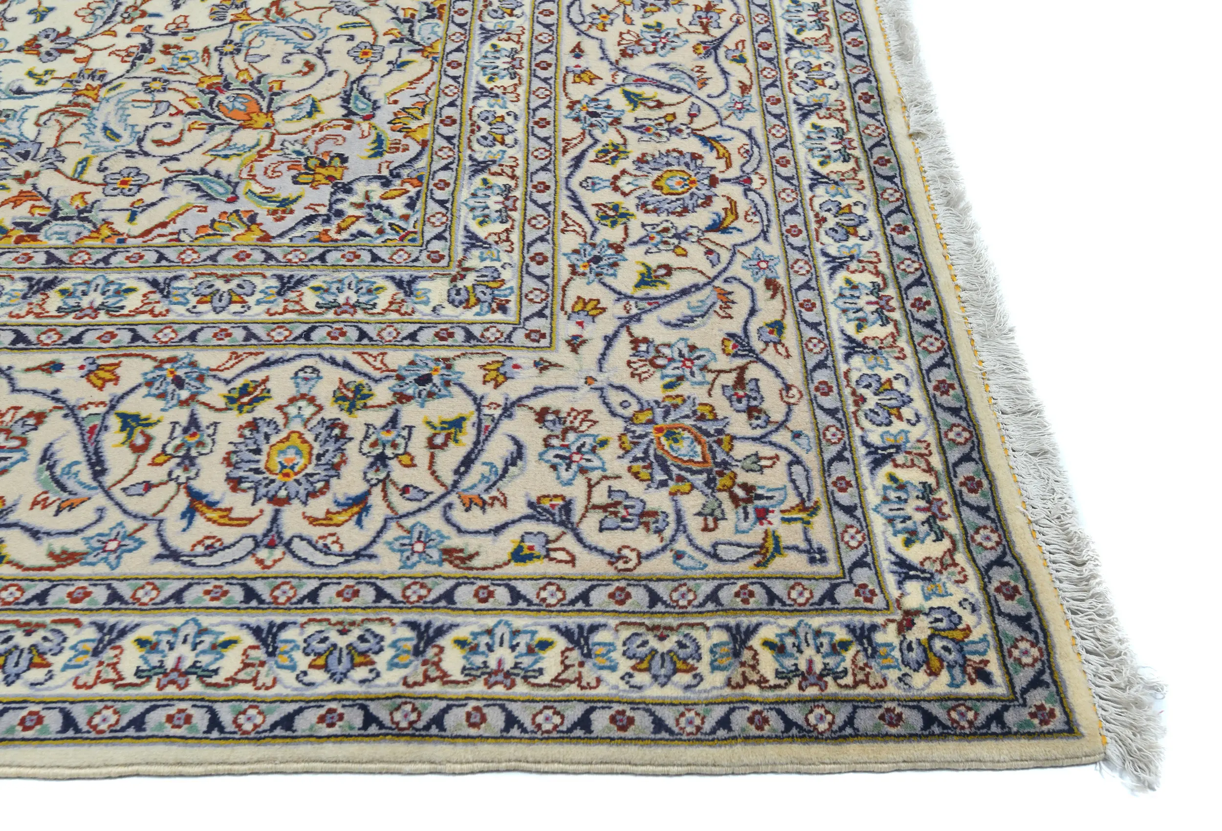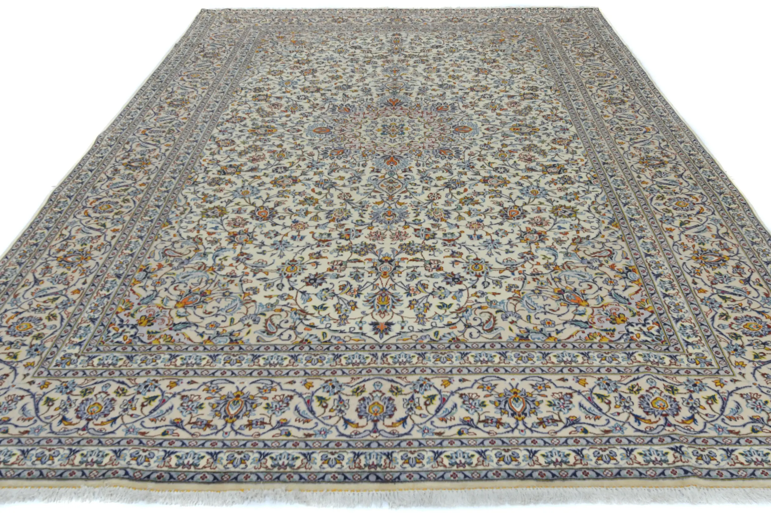Vintage Cream Traditional 9X12 Kashan Persian Rug