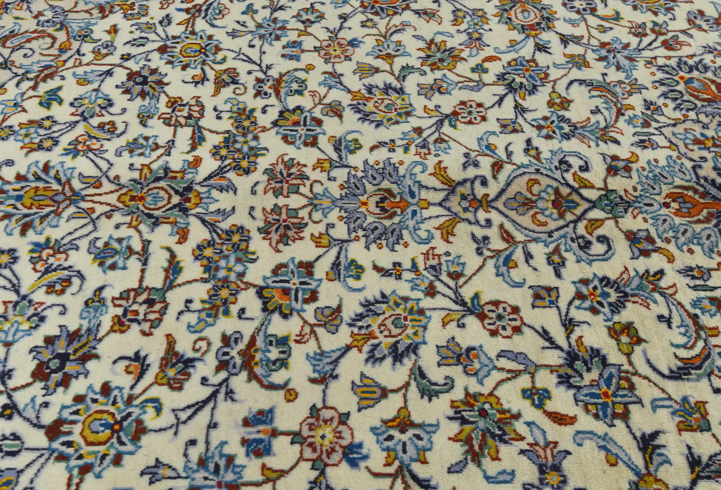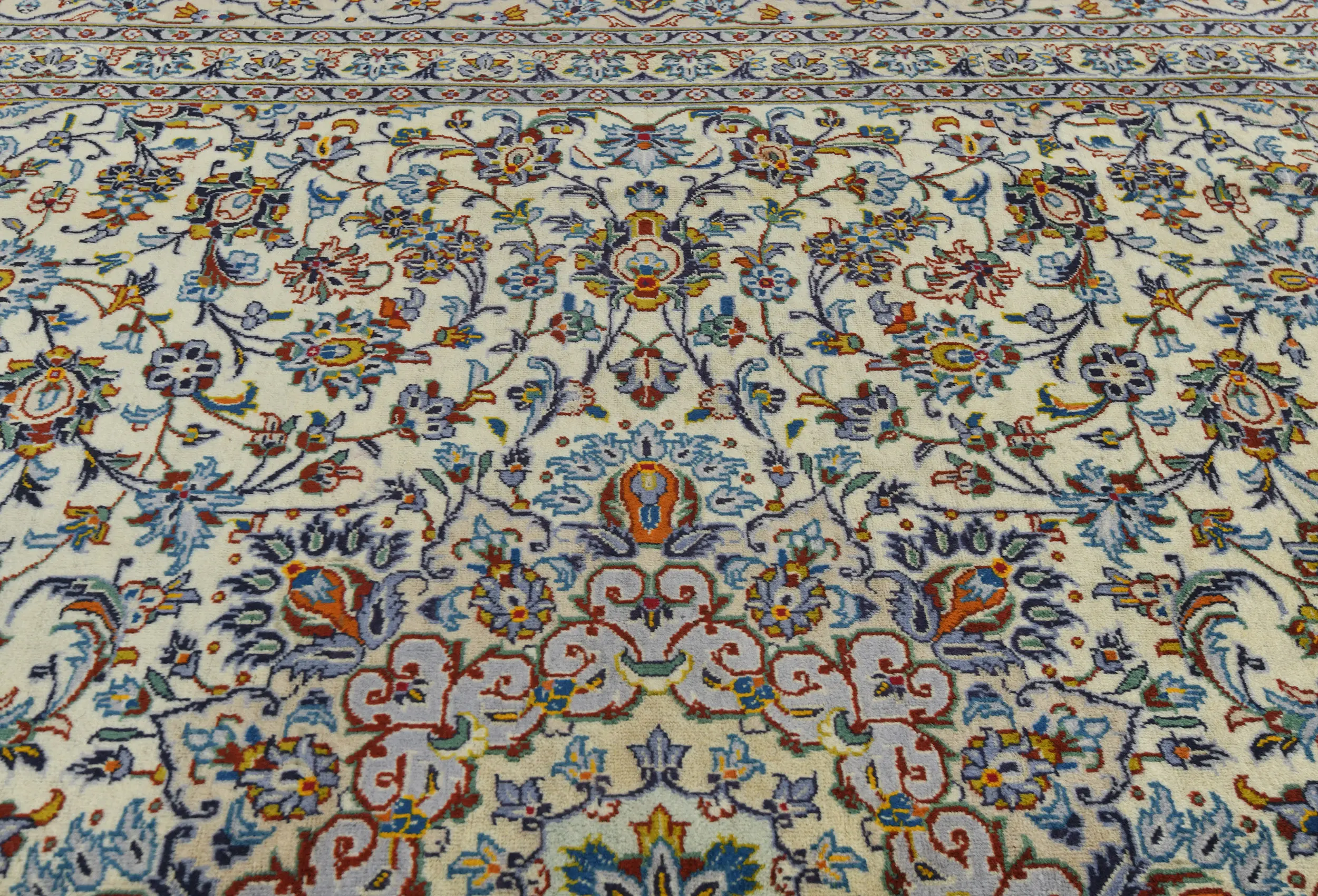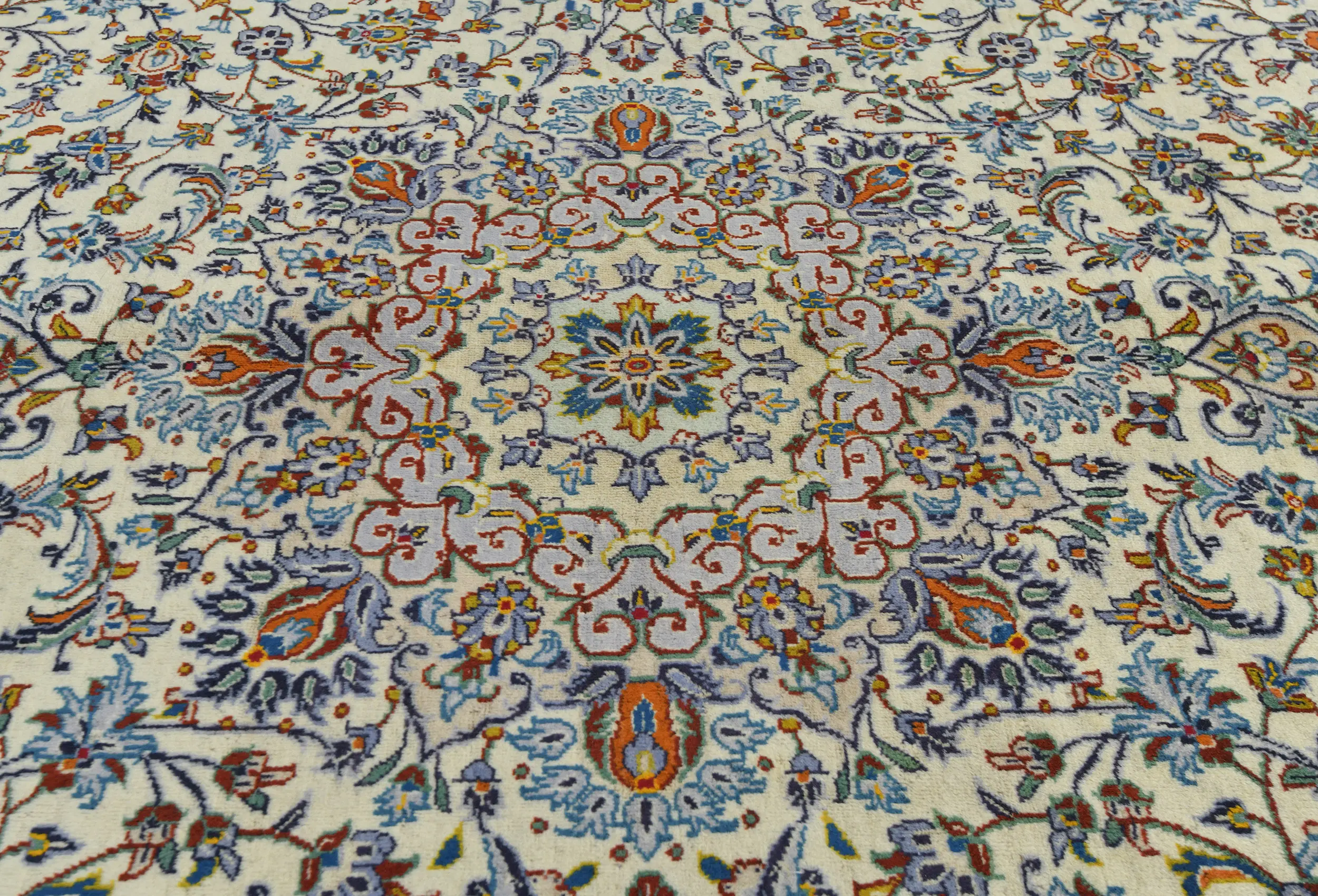 Vintage Cream Traditional 9X12 Kashan Persian Rug