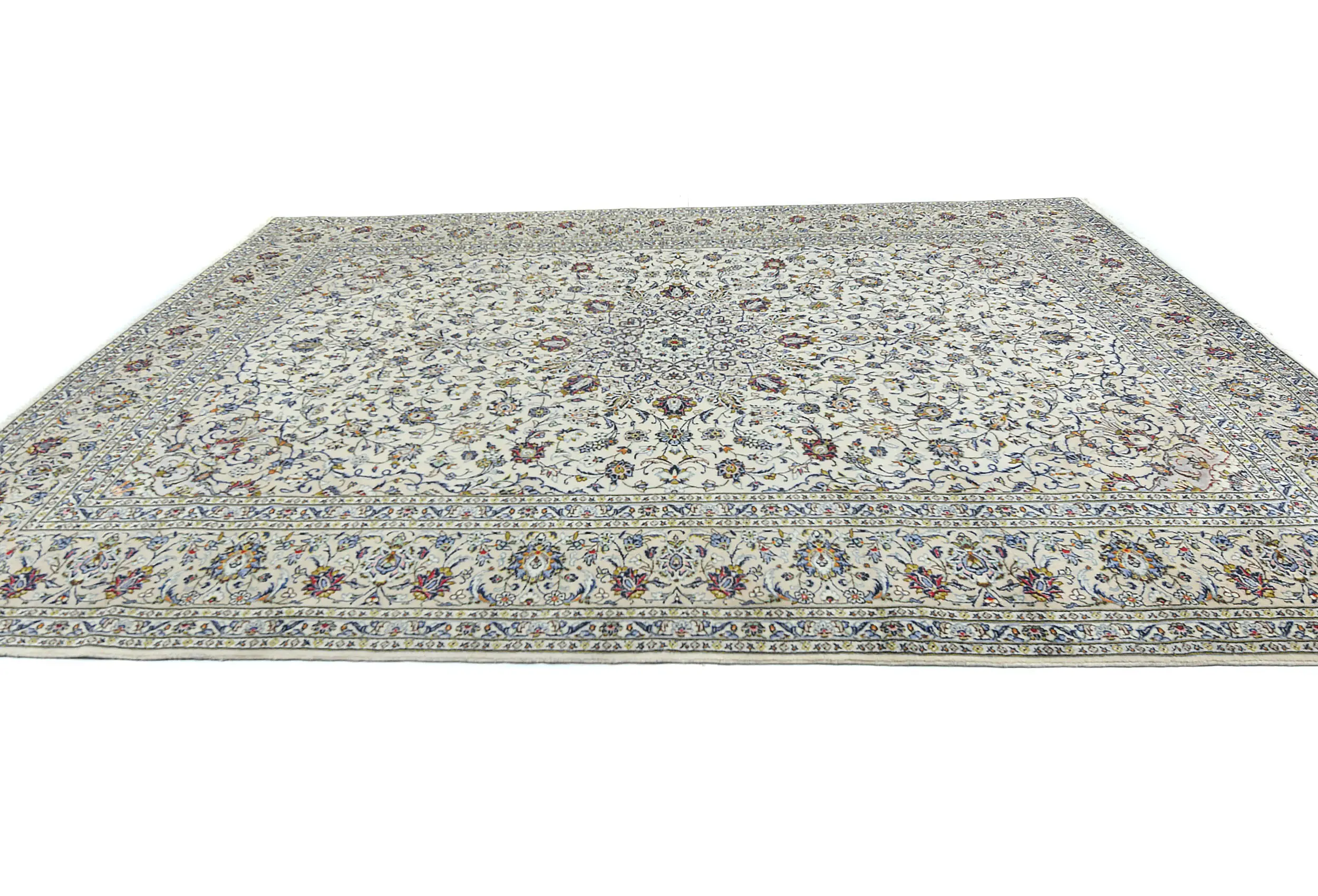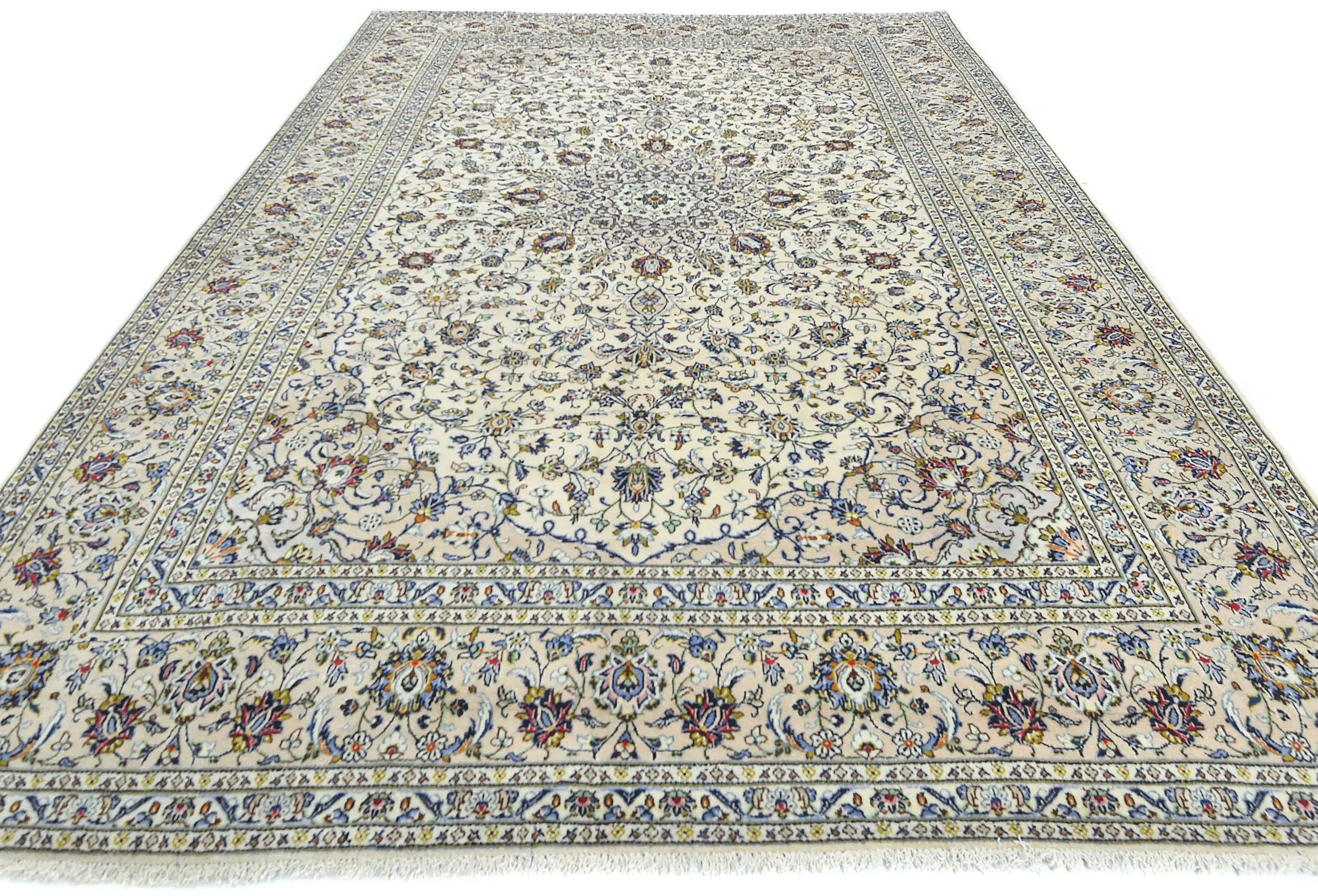 Vintage Cream Traditional Floral 10X13 Kashan Persian Rug