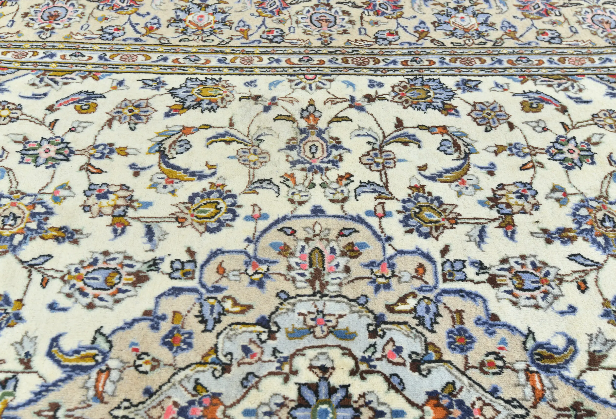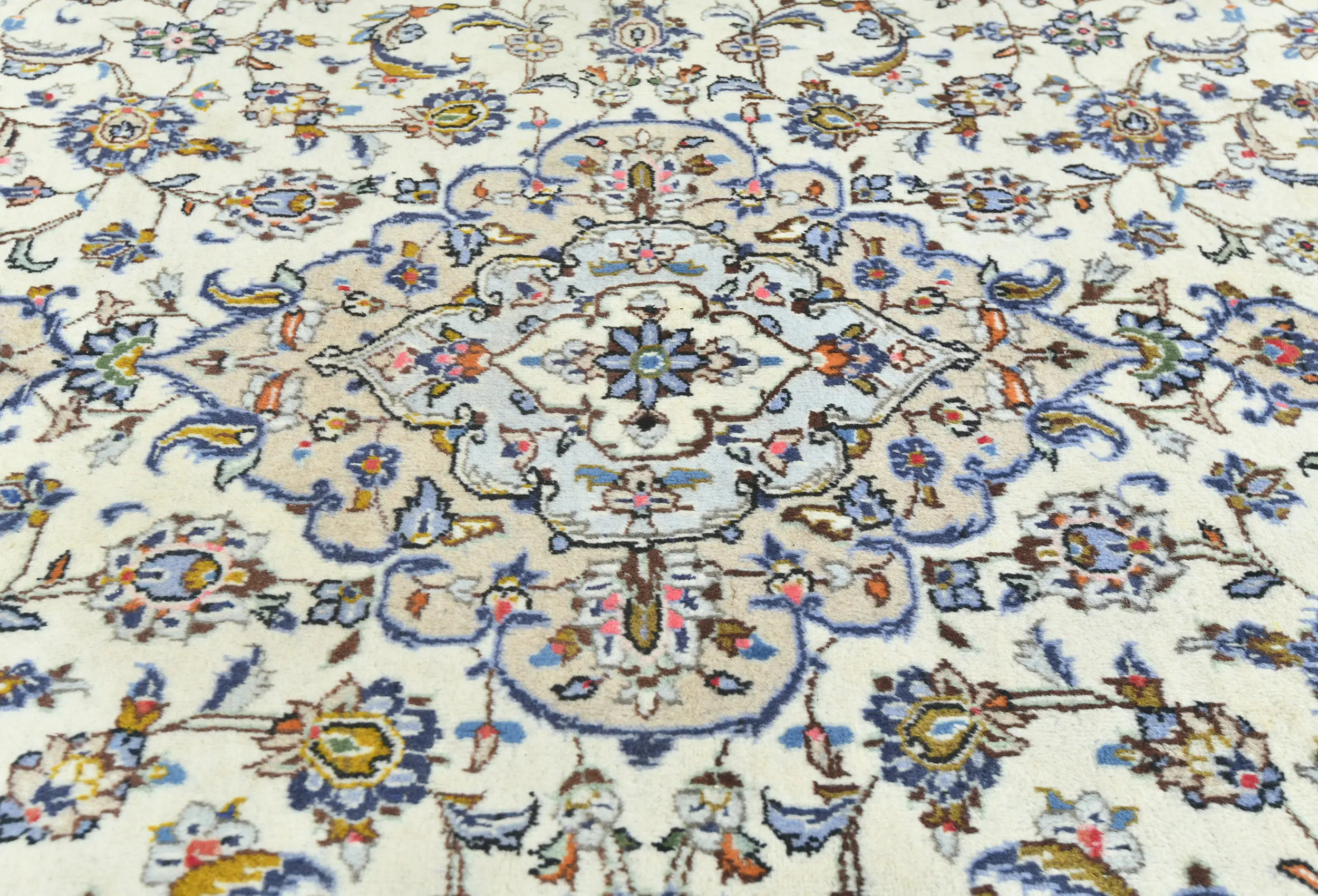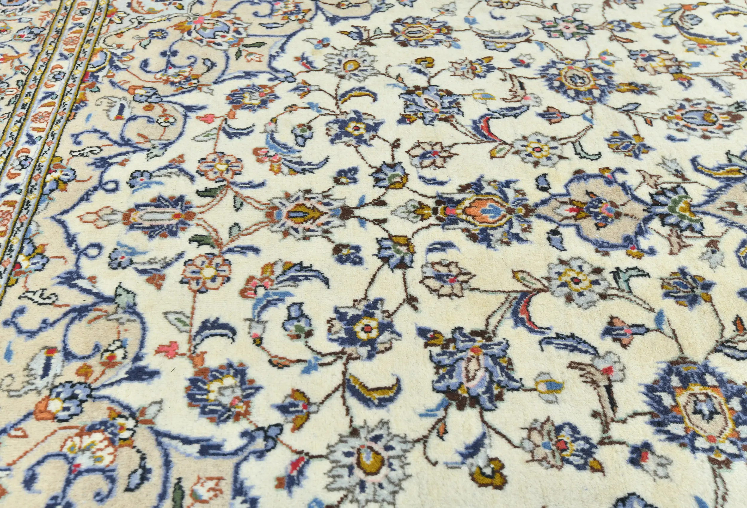 Vintage Cream Traditional Floral 7X10 Kashan Persian Rug