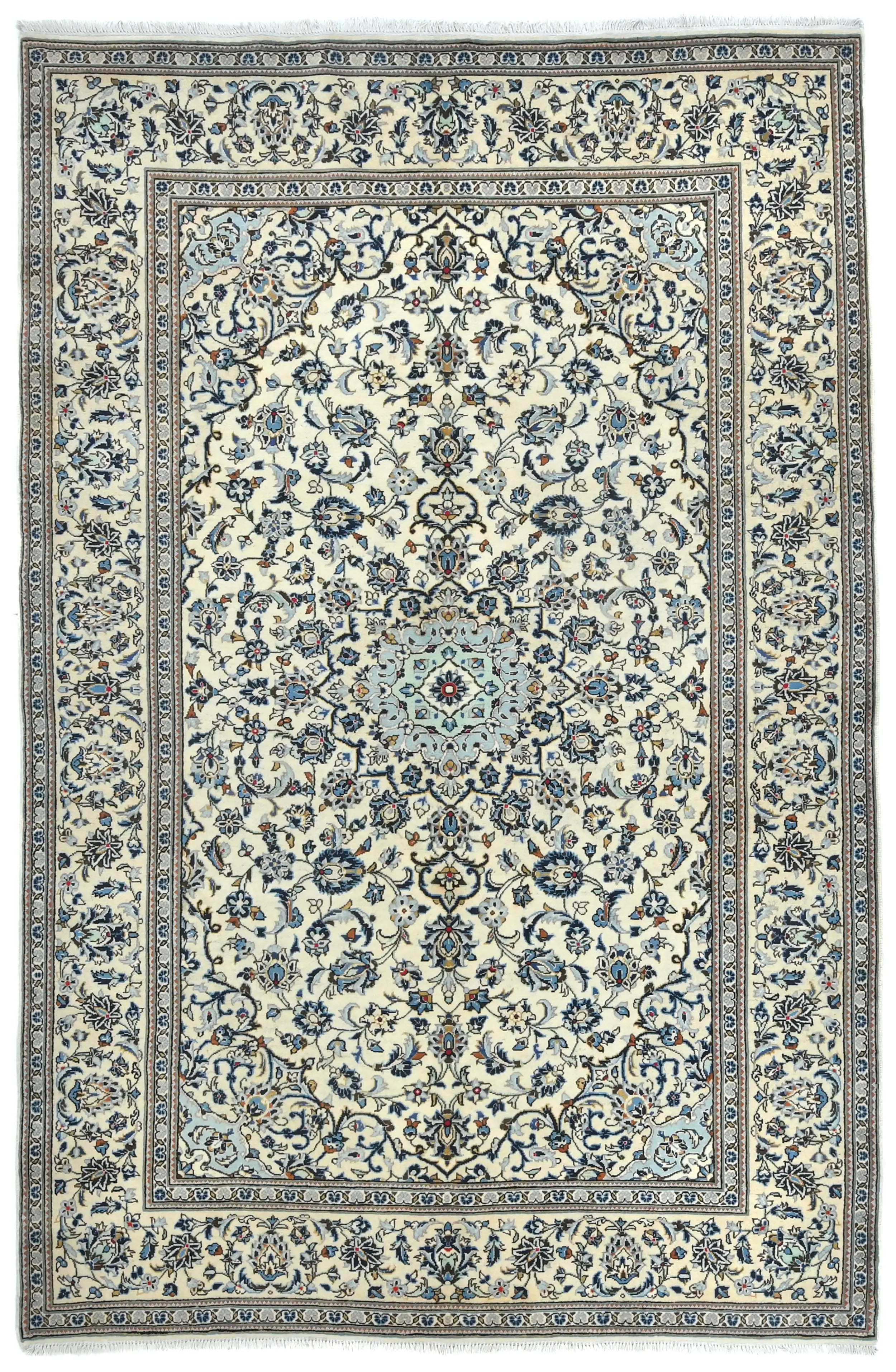 Vintage Cream Traditional Floral 7X10 Kashan Persian Rug