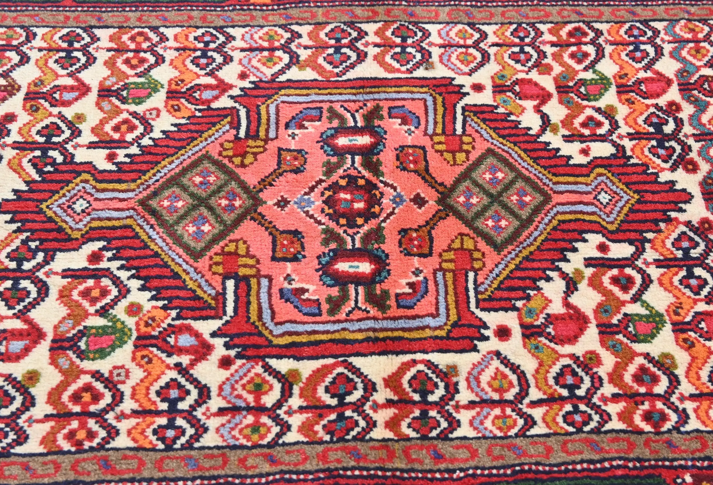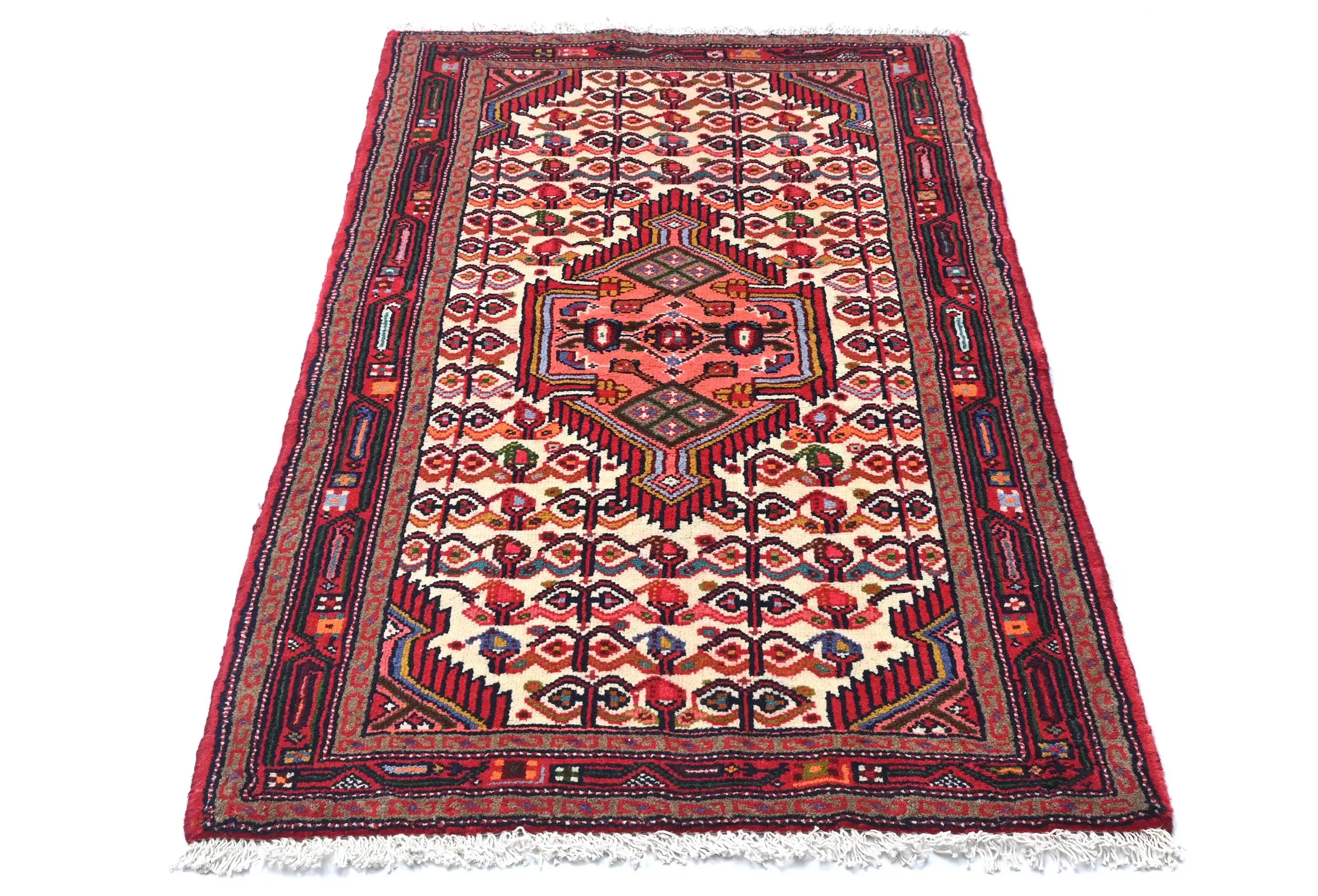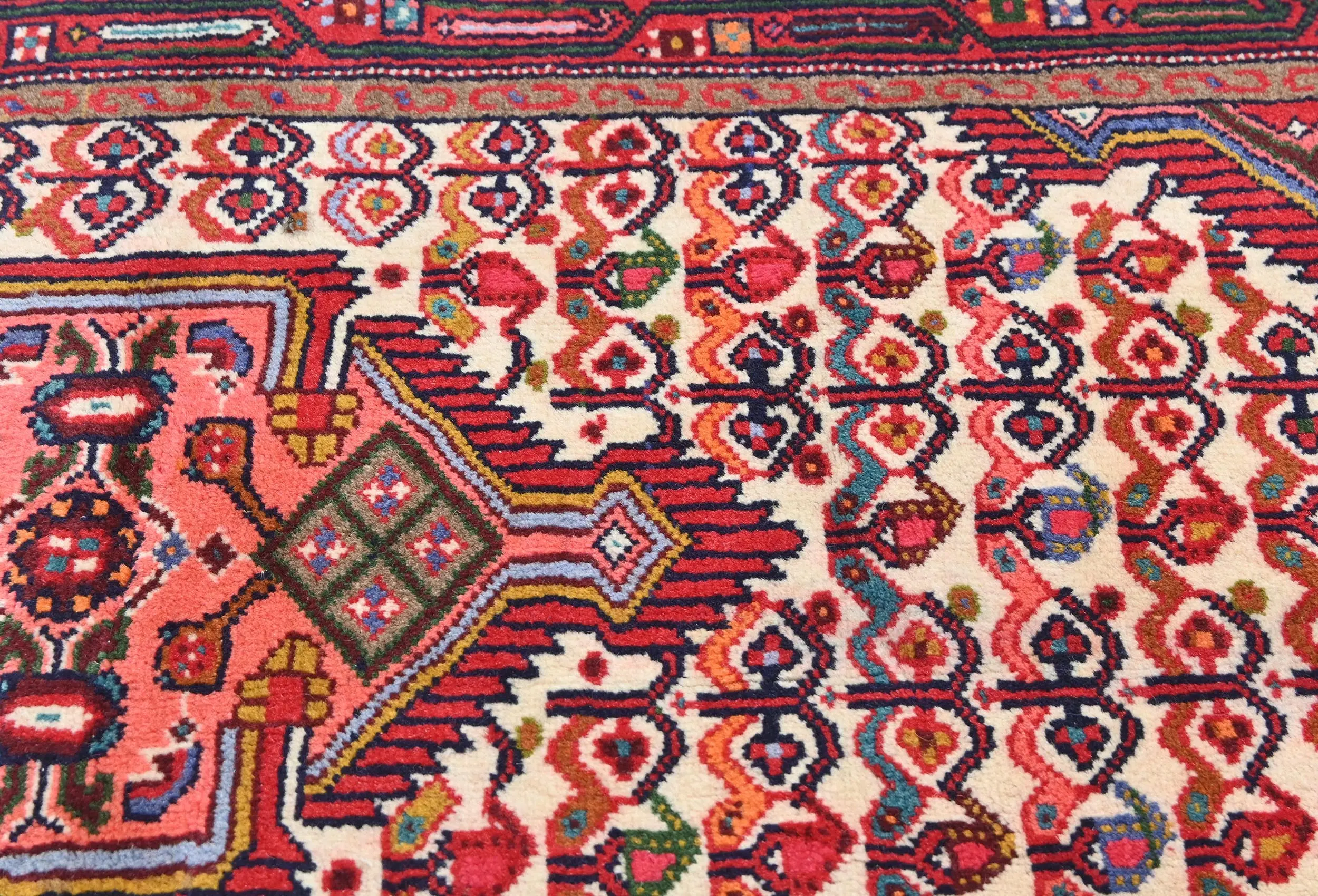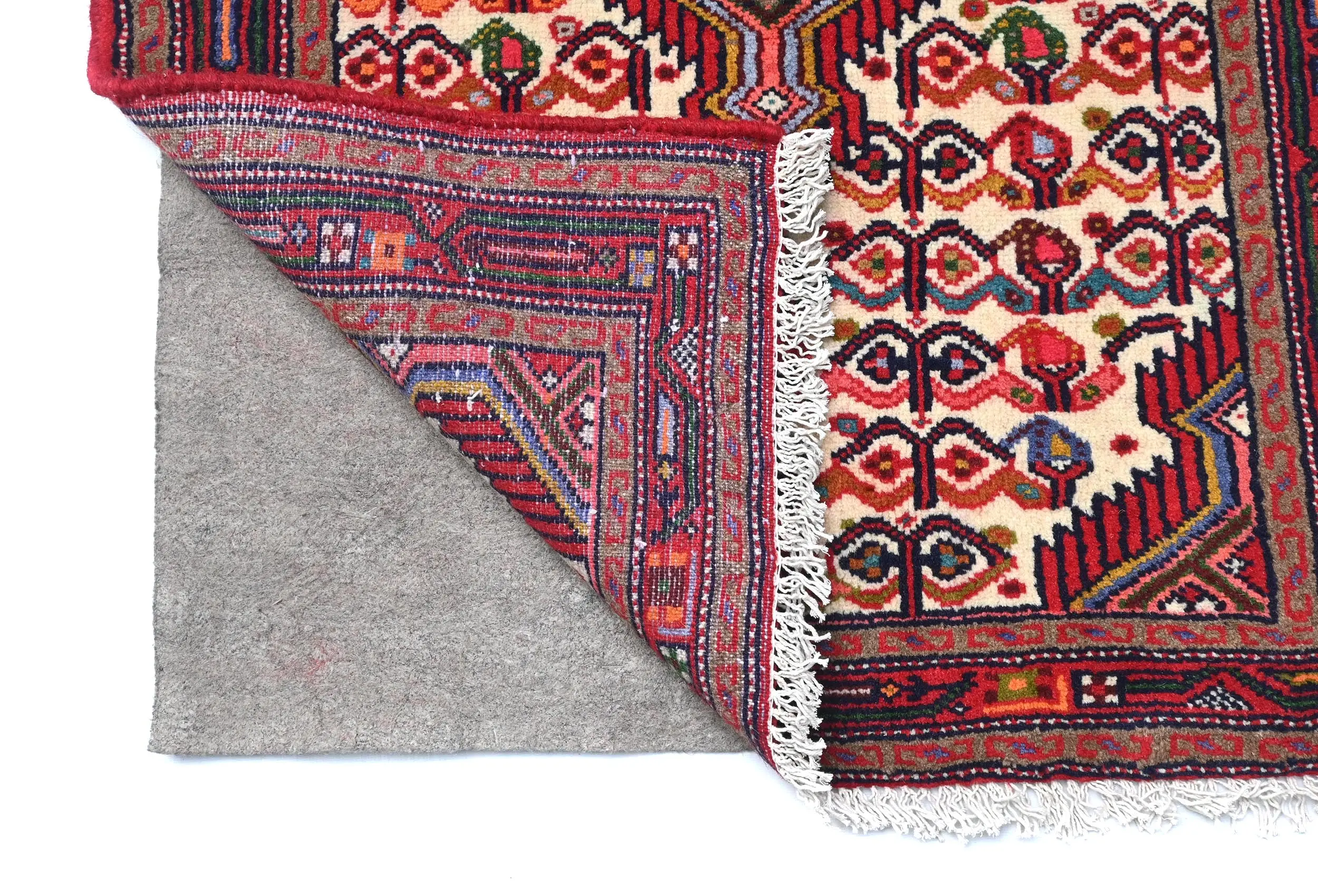 This authentic 2'7X4'1 cream vintage Persian rug was finely knotted by the hands of weavers influenced by a variety of amazing artistic designs, to recreate the aged look of the exceptional piece with a richness of color and embellished background field. What set this tribal Oriental area rug from the others are the material and dye used (wool pile and cotton foundation), knot count, antique designs, fantastic grades, and its regional historical connection: it has deep roots, from the story of the people who produced it to the meaning of the symbols and colors displayed across its canvas that have been praised for centuries. This home décor carpet will be completely cozy and inviting that never will go out of style! Also, this Oriental rug would be among your most valuable treasures, it is a great investment that increase in value over time, and it will last a lifetime because was woven with high-quality, all-natural wool; it won’t rip, tear, or shed. Eco-friendly, opulent yet affordable; this Persian rug will give you an extra pop of character to help define your home environment with luxury and warmth that will capture the eyes and attention of your audience (homeowners, designers, decorators, family and friends). EB-7604
