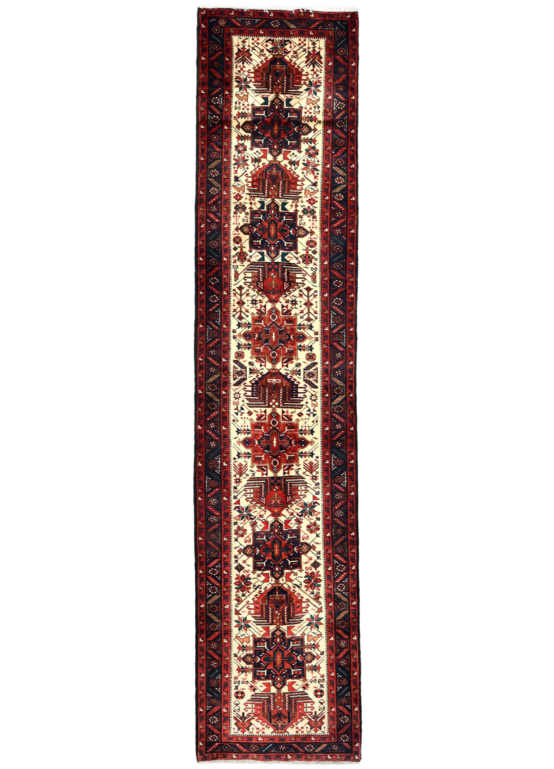 Vintage Cream Tribal 3X15 Karajeh Persian Runner Rug
