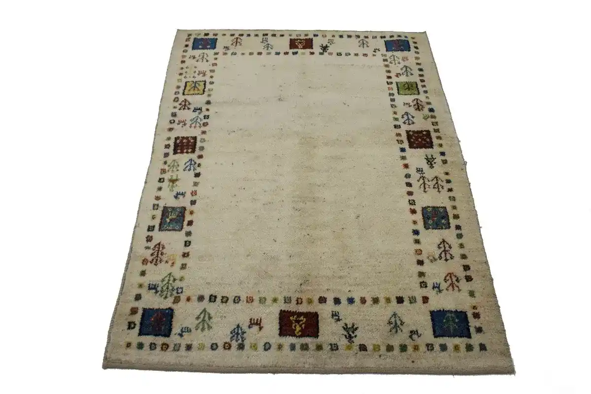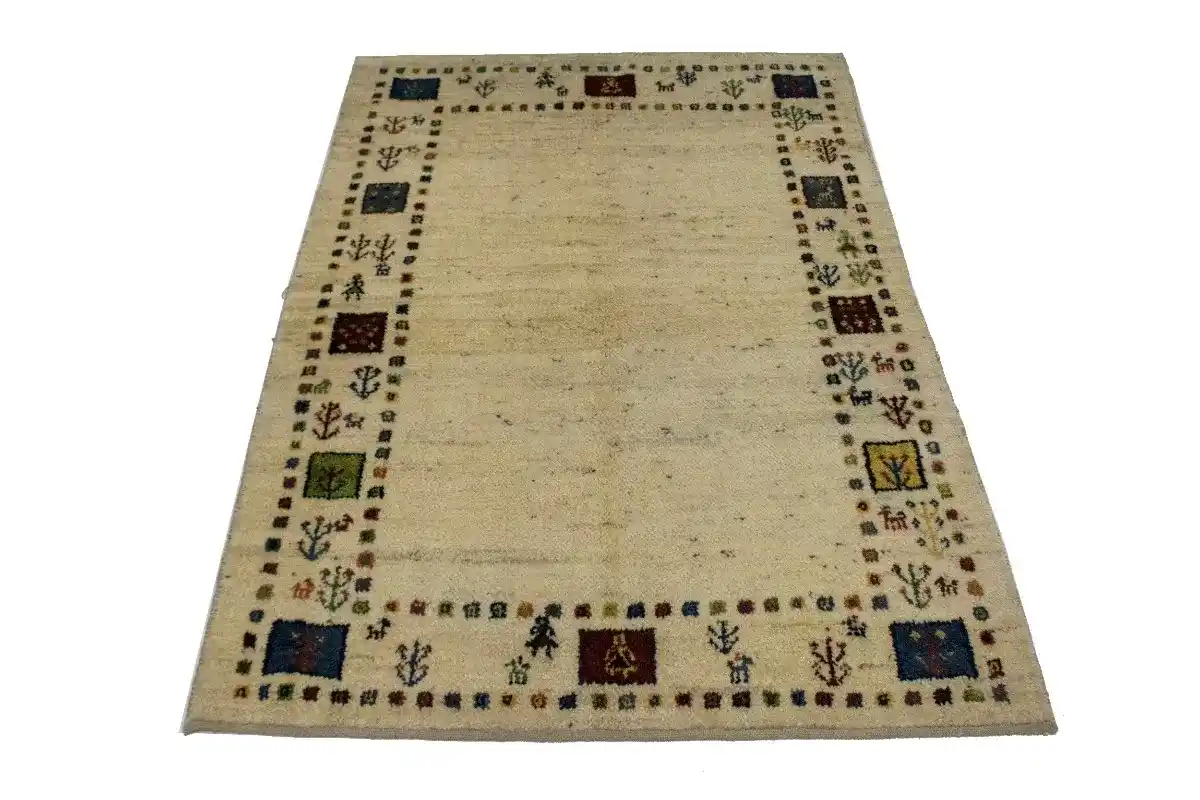 Vintage Cream Tribal 4X6 Gabbeh Persian Rug