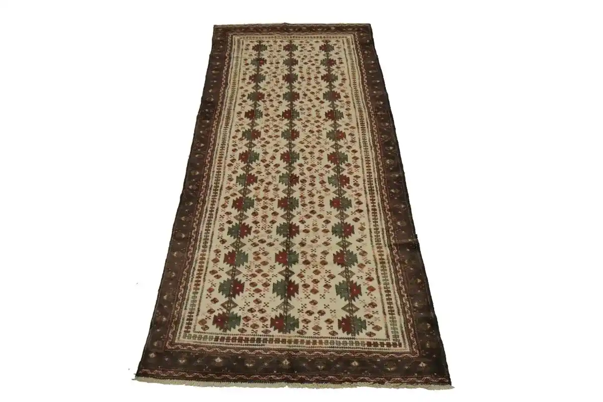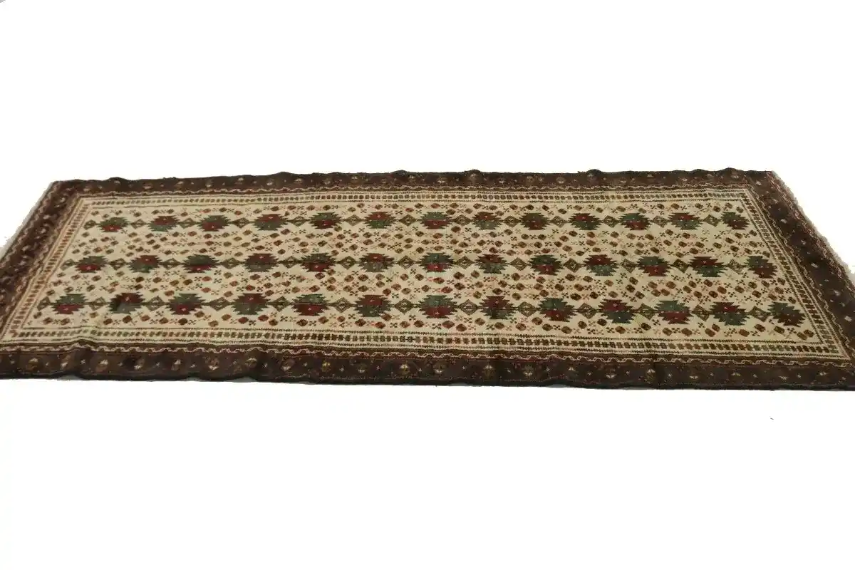 Vintage Cream Tribal 4X9 Turkoman Persian Runner Rug