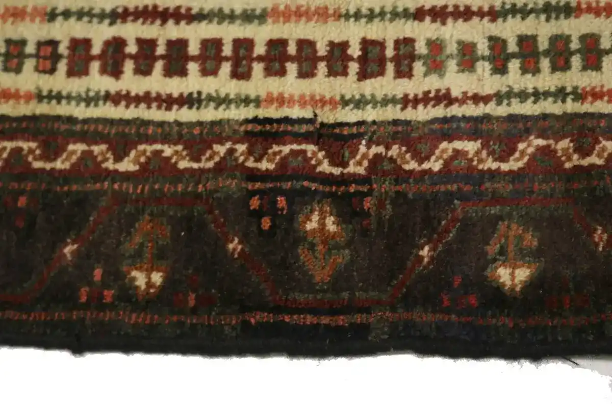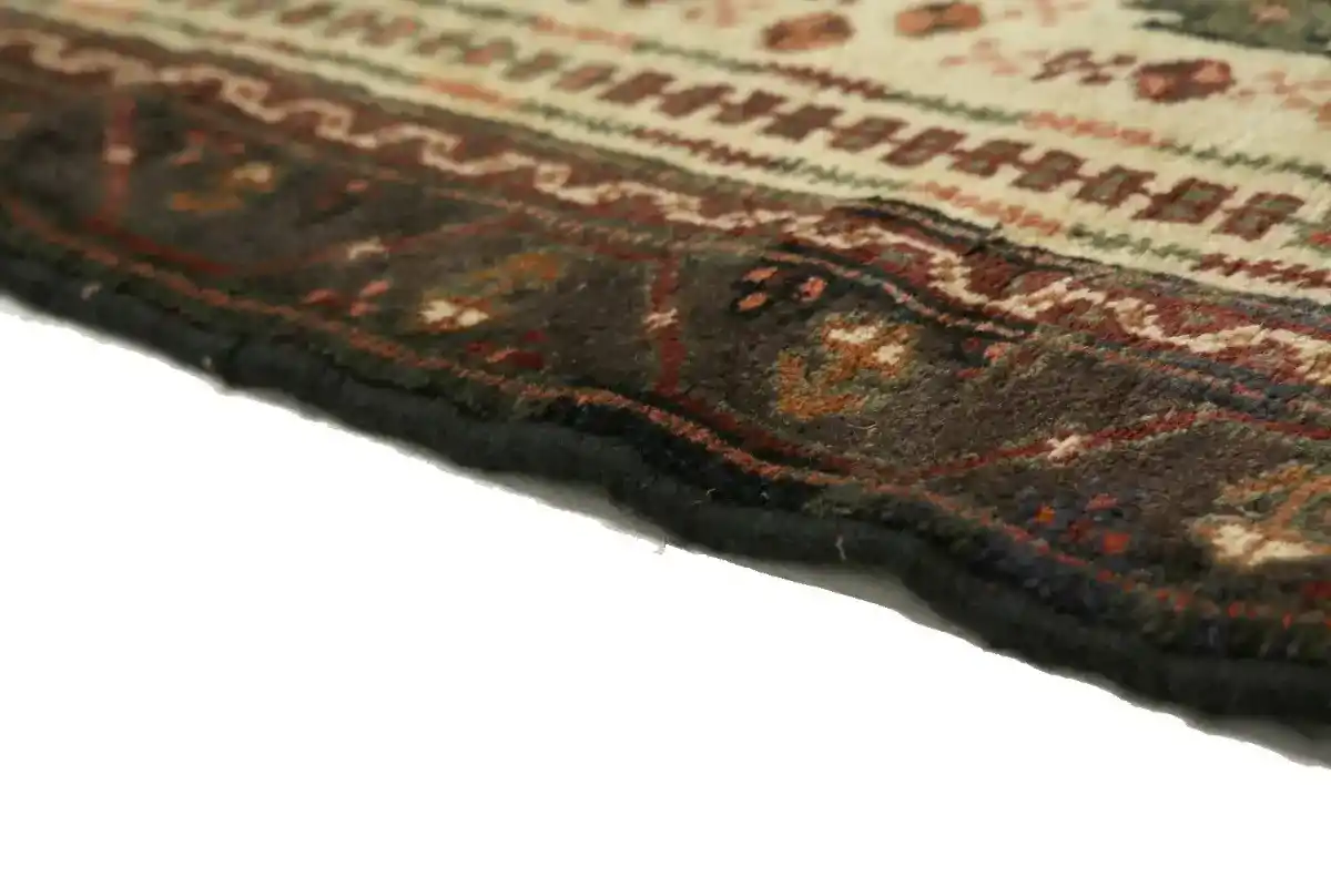 This original 4X9 cream vintage Persian runner was well-constructed by the hands of master weavers motivated by a variety of stunning artistic designs, to recreate the aged look of the exceptional piece with a richness of color and developed decorative background field. What set this tribal Oriental area runner from the others are the material and dye used (wool pile and cotton foundation), knot count, ancient designs, fantastic grades, and its regional historical connection: it has deep roots, from the story of the people who produced it to the meaning of the symbols and colors displayed across its canvas that have been praised for centuries. This home décor carpet will be completely cozy and inviting that never will go out of style! Also, this Oriental runner would be among your most valuable treasures, it is a great investment that increase in value over time, and it will last a lifetime because was woven with high-quality, all-natural wool; it won’t rip, tear, or shed. Eco-friendly, opulent yet affordable; this Persian rug will give you an extra pop of character to help define your home environment with elegance and warmth that will capture the eyes and attention of your audience (homeowners, designers, decorators, family and friends). EB-1296