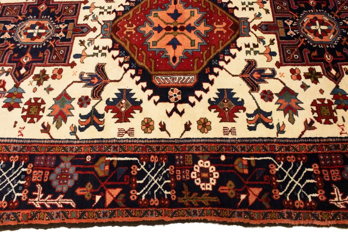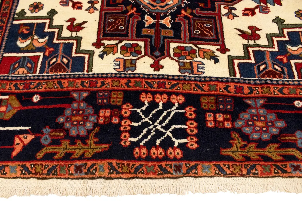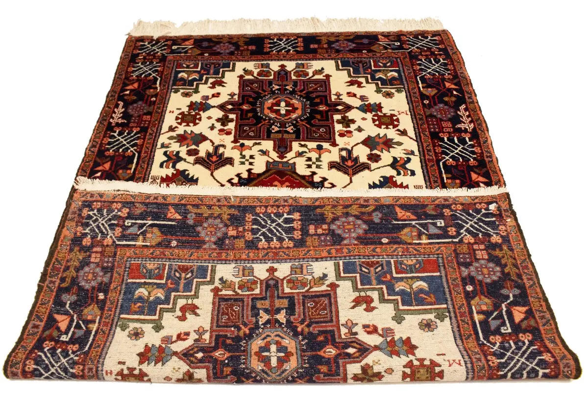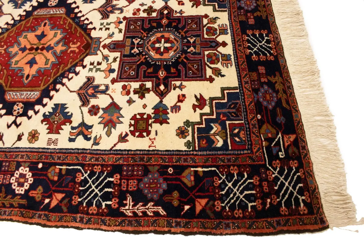 Vintage Cream Tribal 5X8 Karajeh Persian Rug