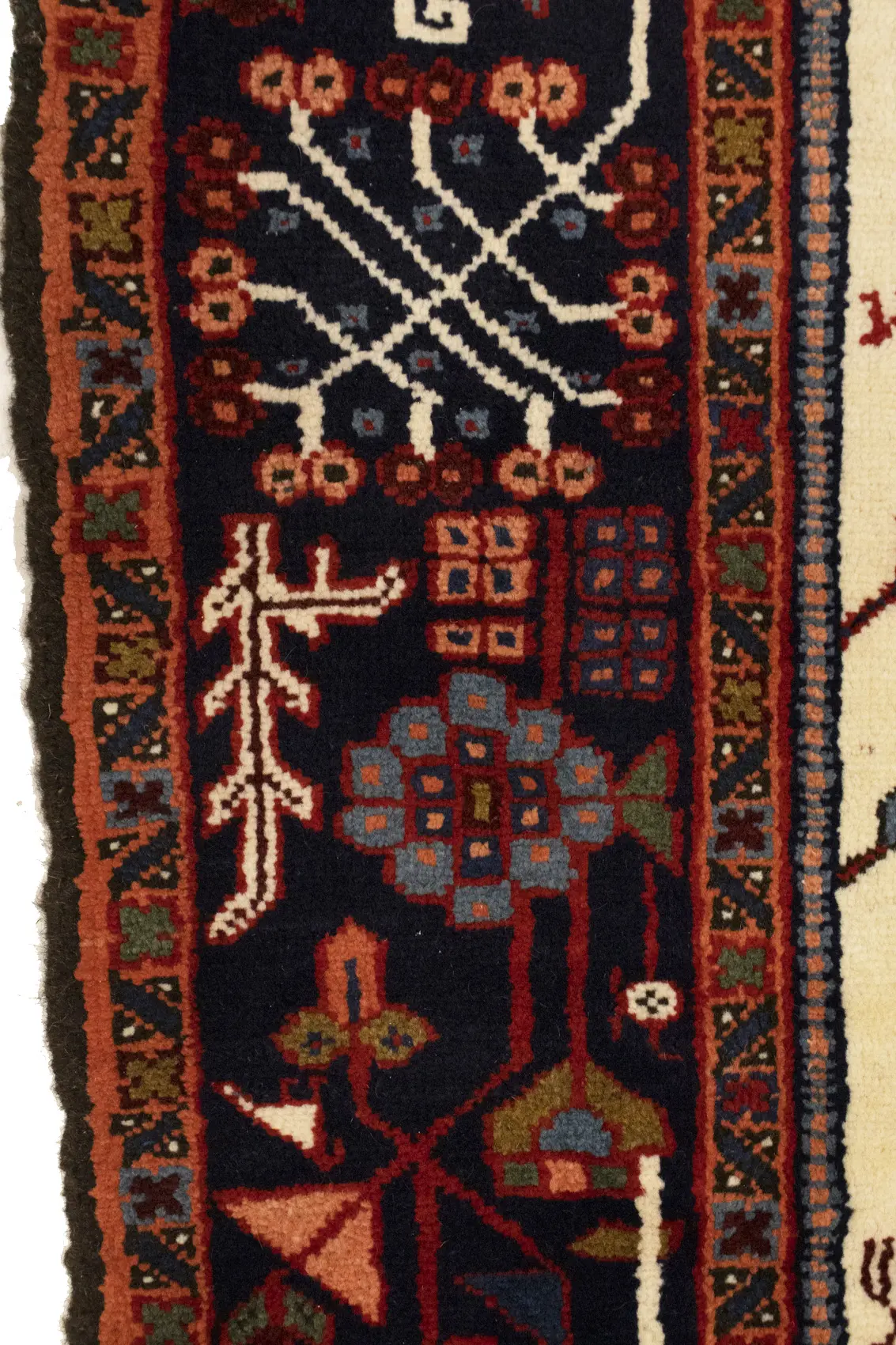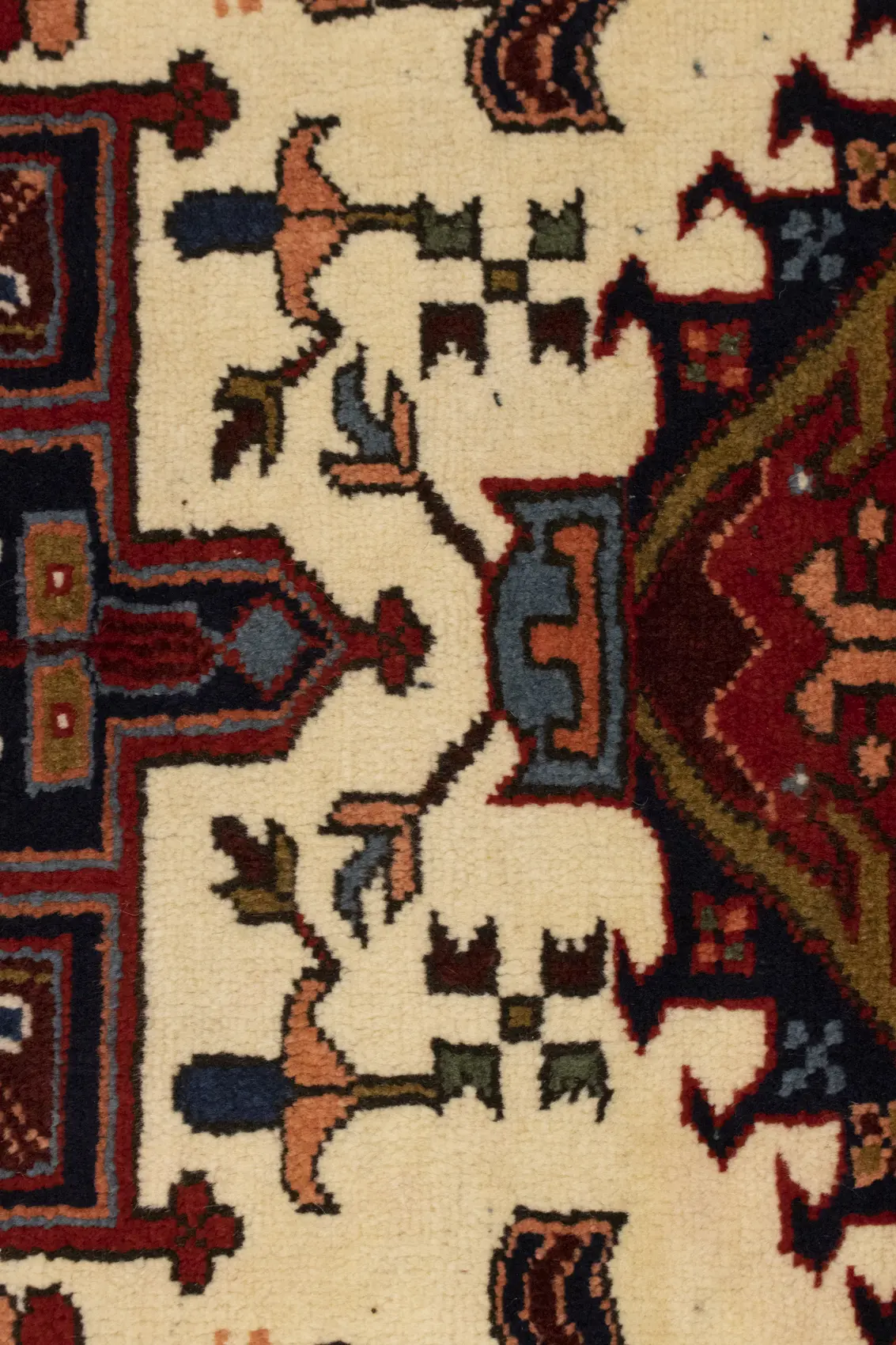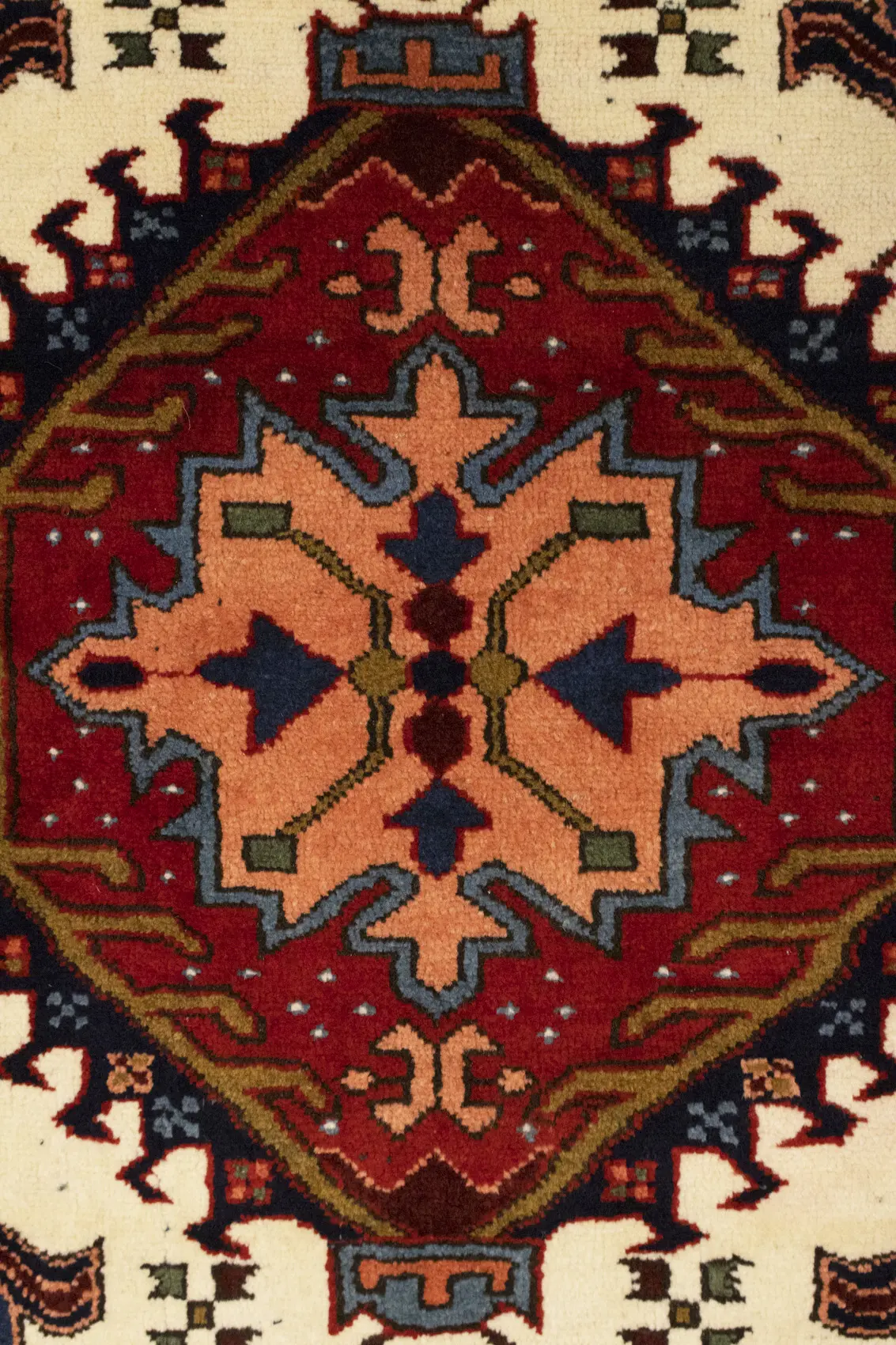 Vintage Cream Tribal 5X8 Karajeh Persian Rug