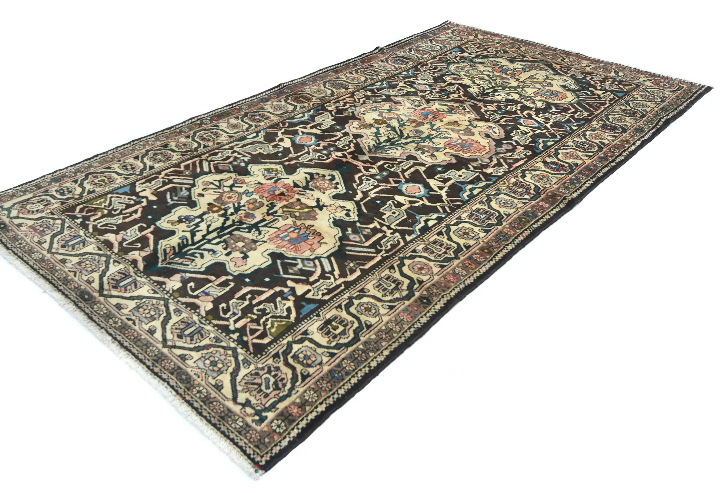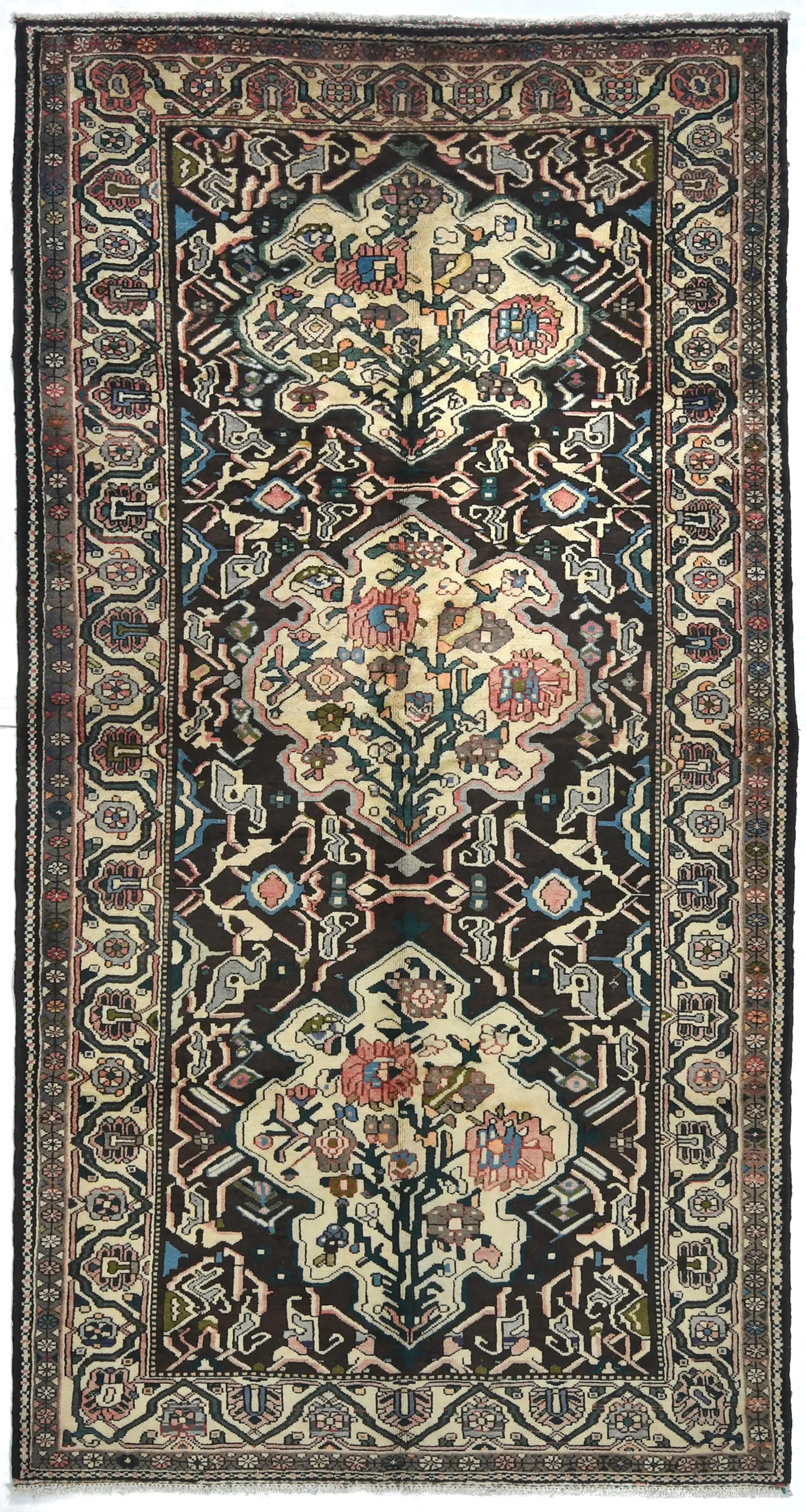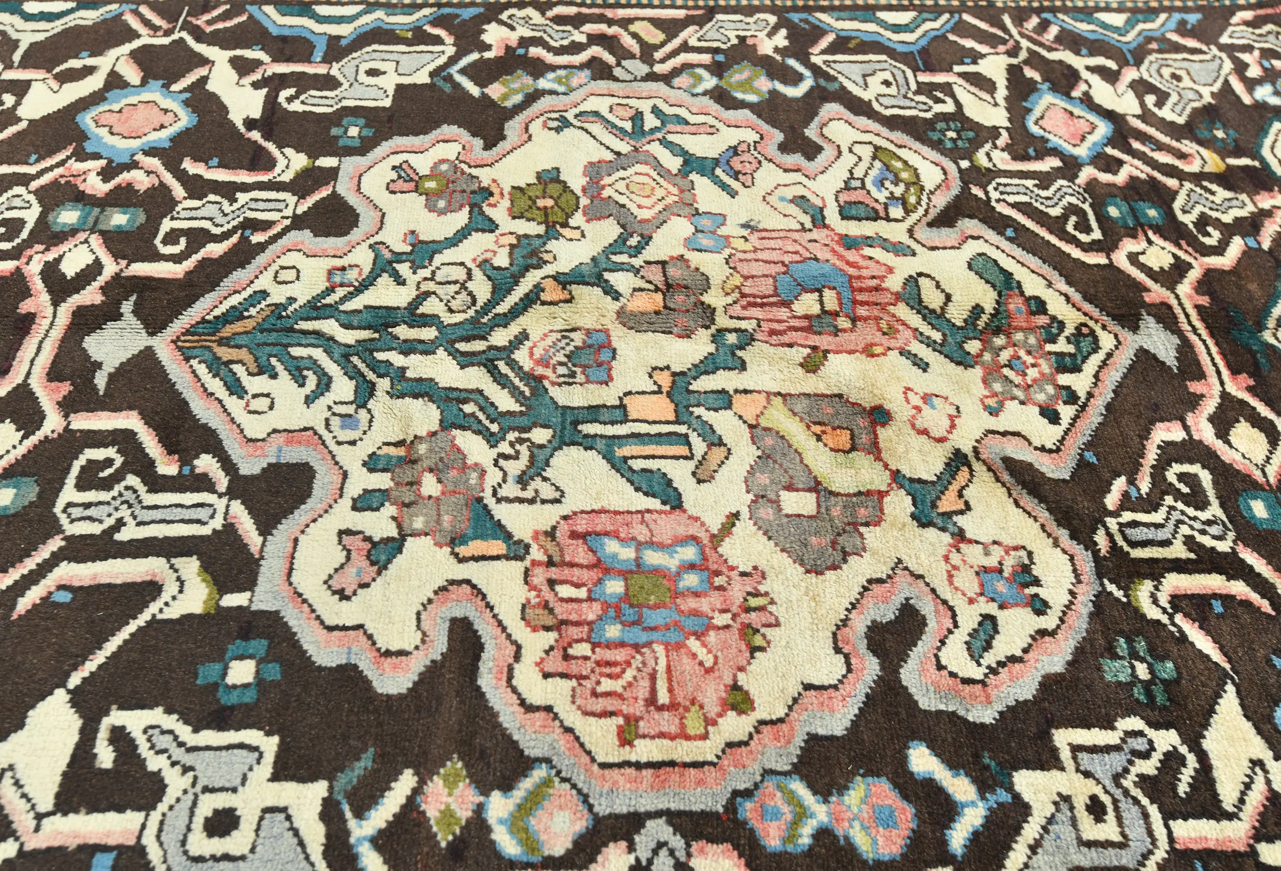 Vintage Dark Brown Floral 5'5X10'2 Bakhtiari Persian Runner Rug