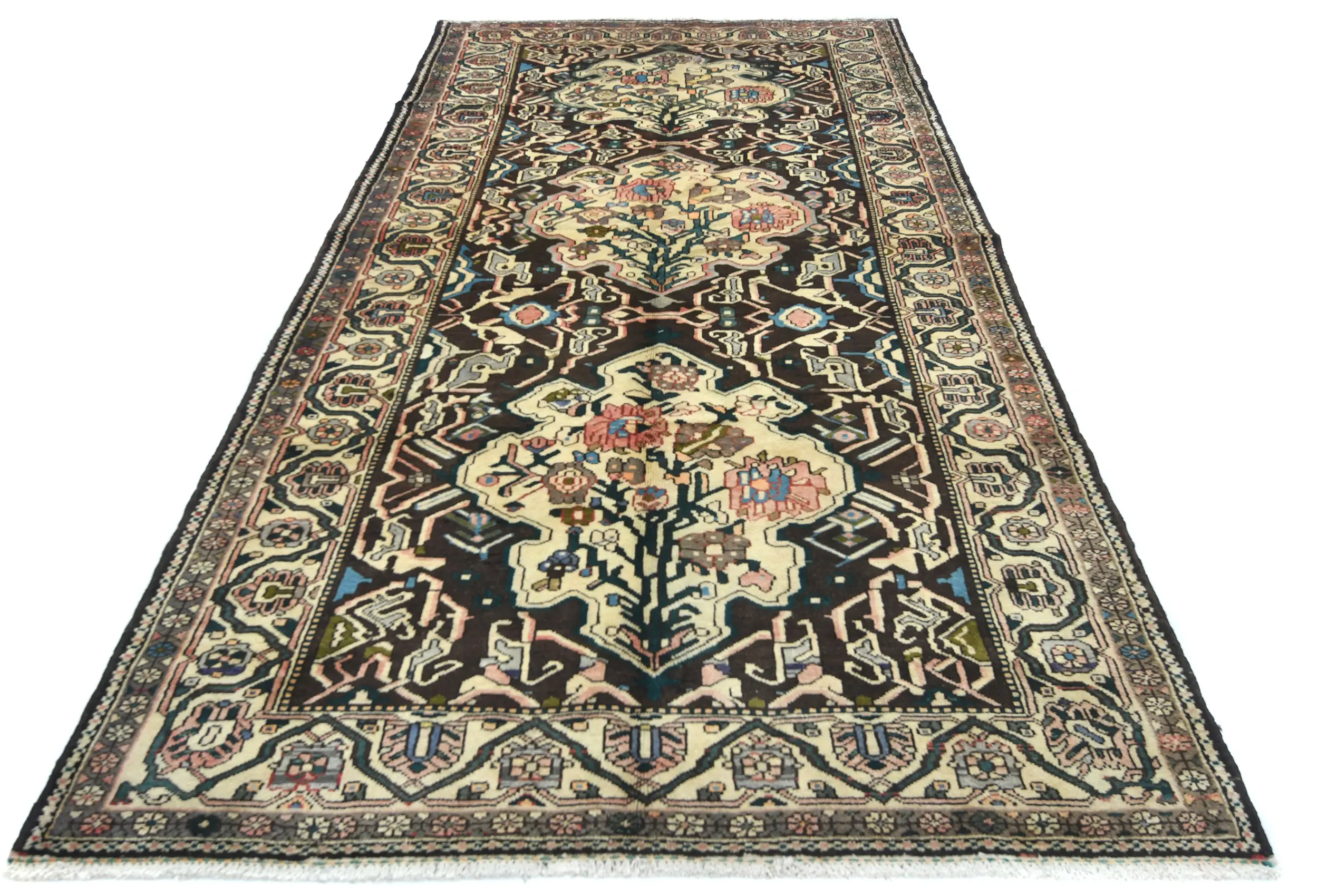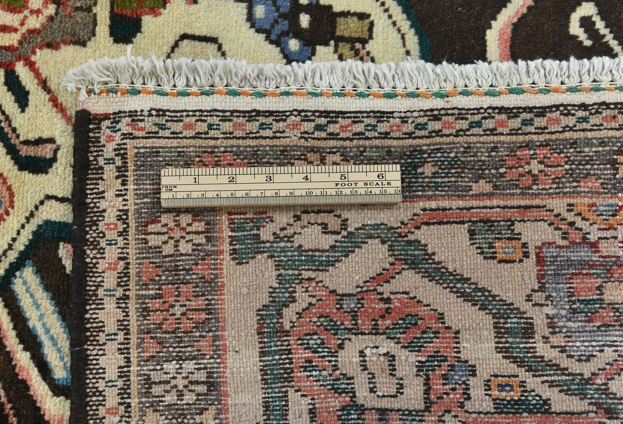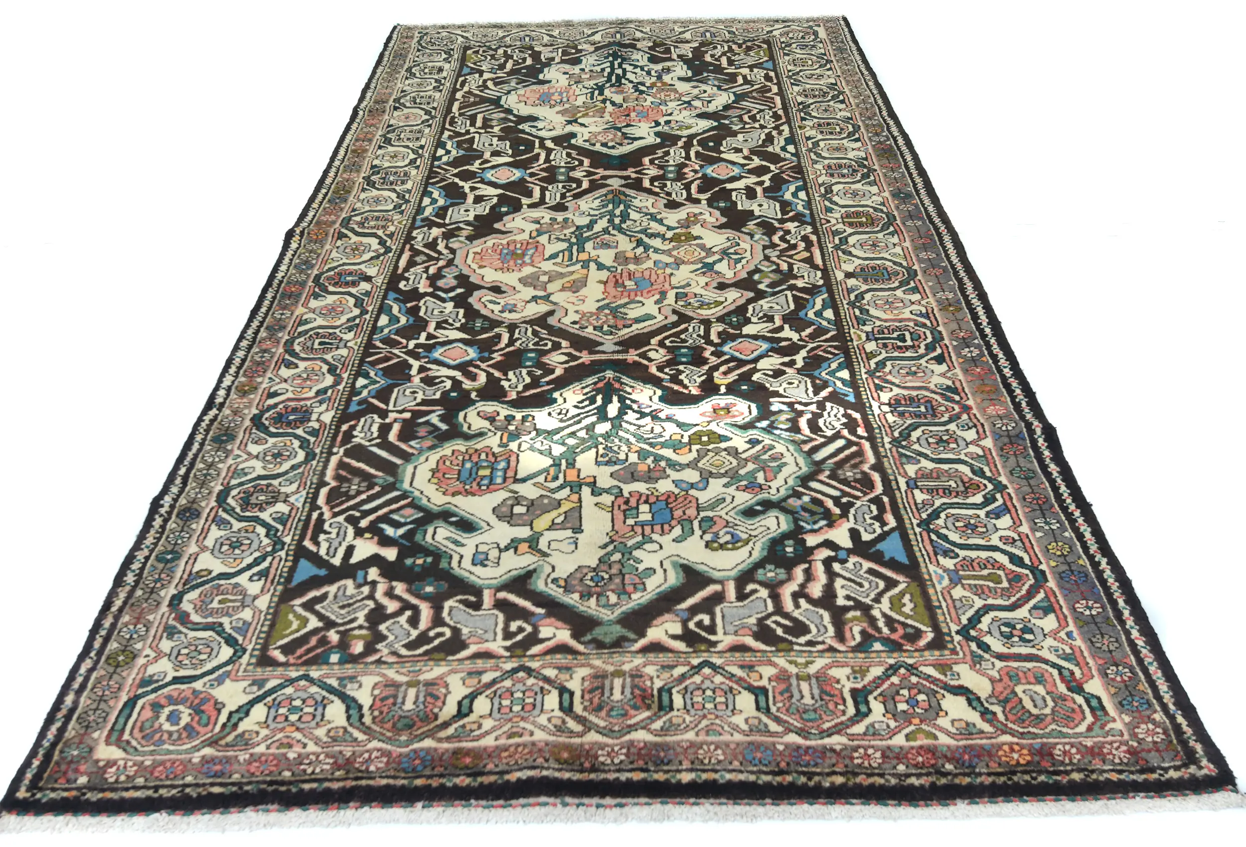 Hand Knotted vintage 5'5X10'2 dark brown Persian runner made with vegetable dyes (fine wool pile and cotton foundation), exceptional knot count, and alluring ancient designs. This Oriental runner never will go out of style and would be among your most valuable treasures.