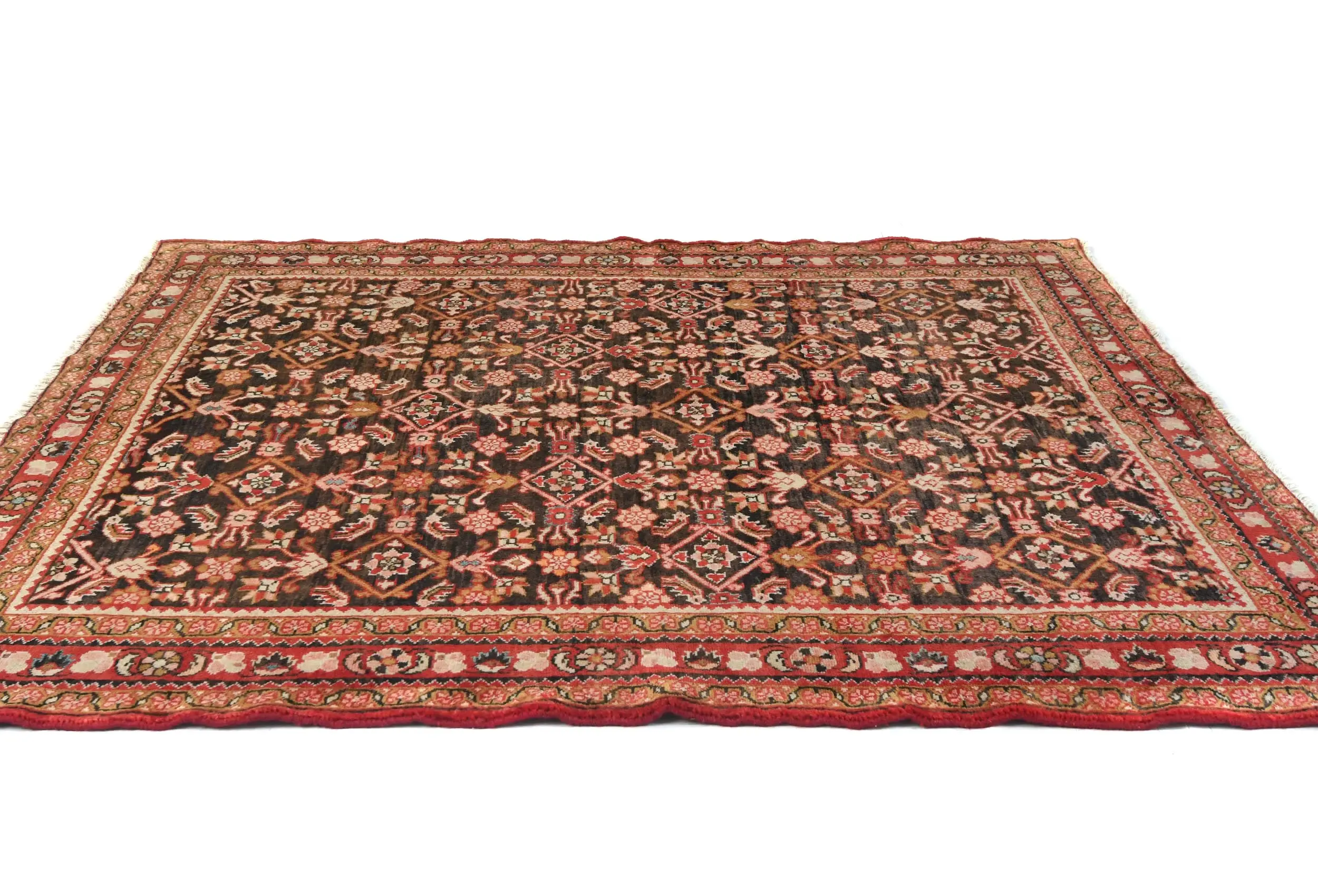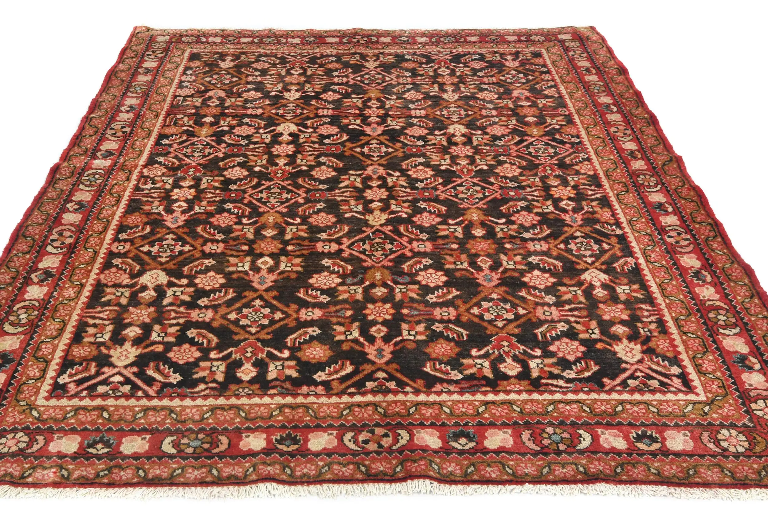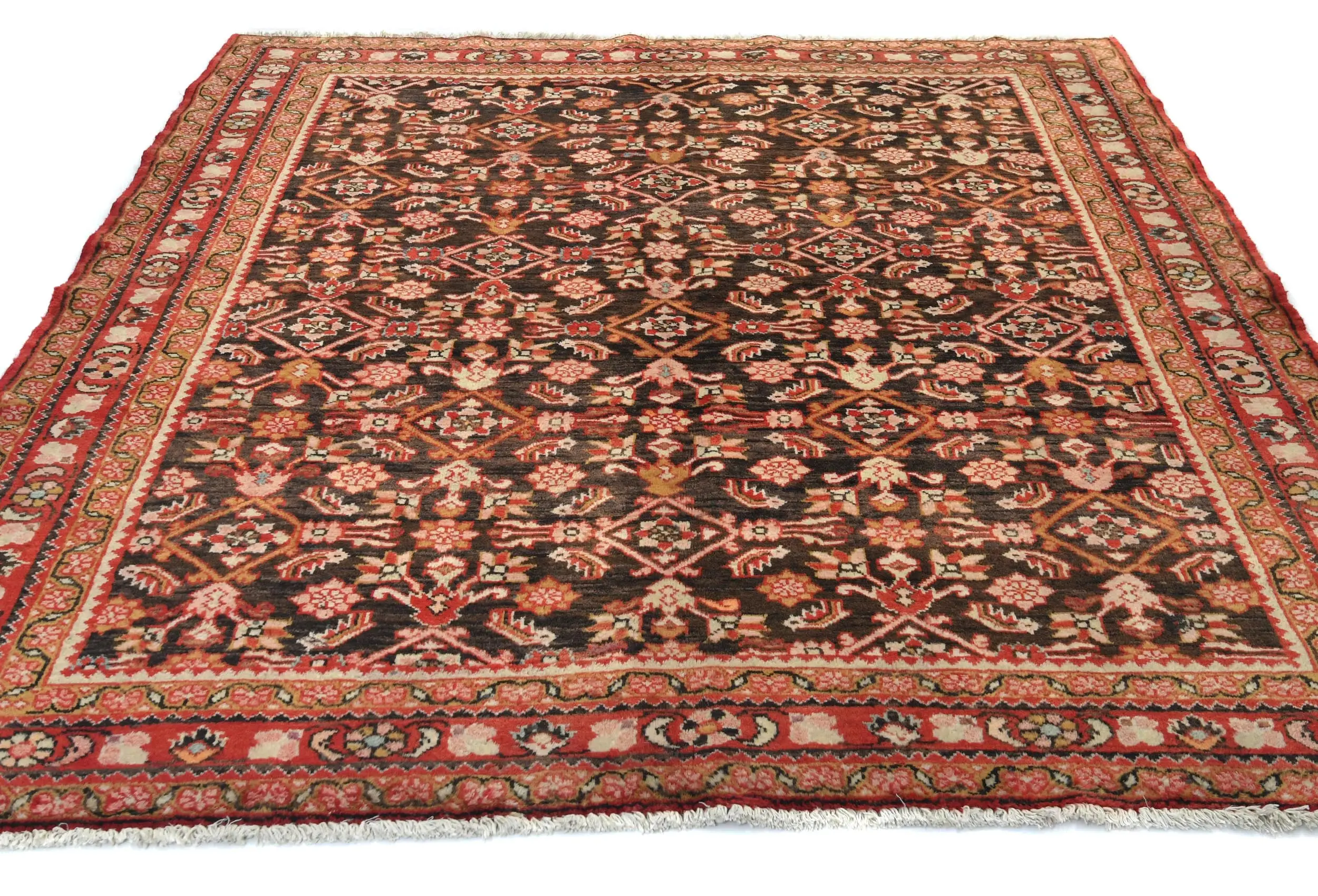 Hand Knotted 5'8X6'8 Dark Brown vintage Persian rug made with natural dyes (fine wool pile and cotton foundation), superior knot count, and appealing ancient designs. This Oriental rug never will go out of style and would be among your most valuable treasures.