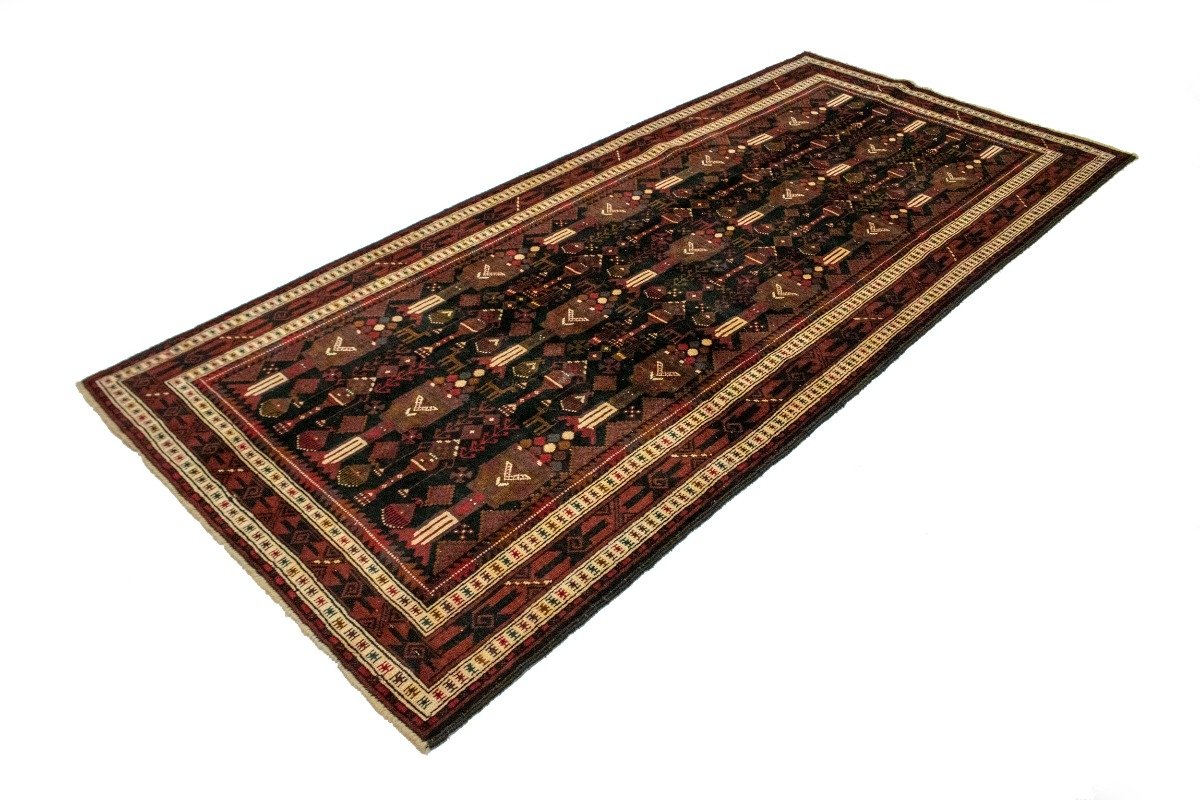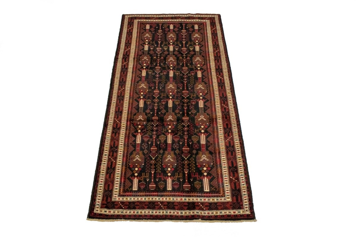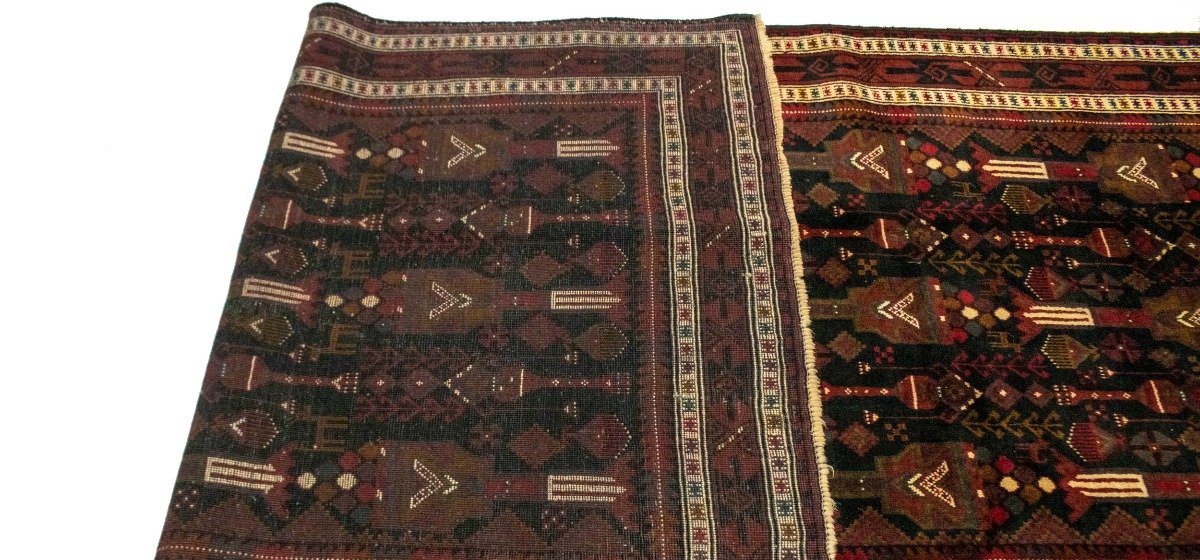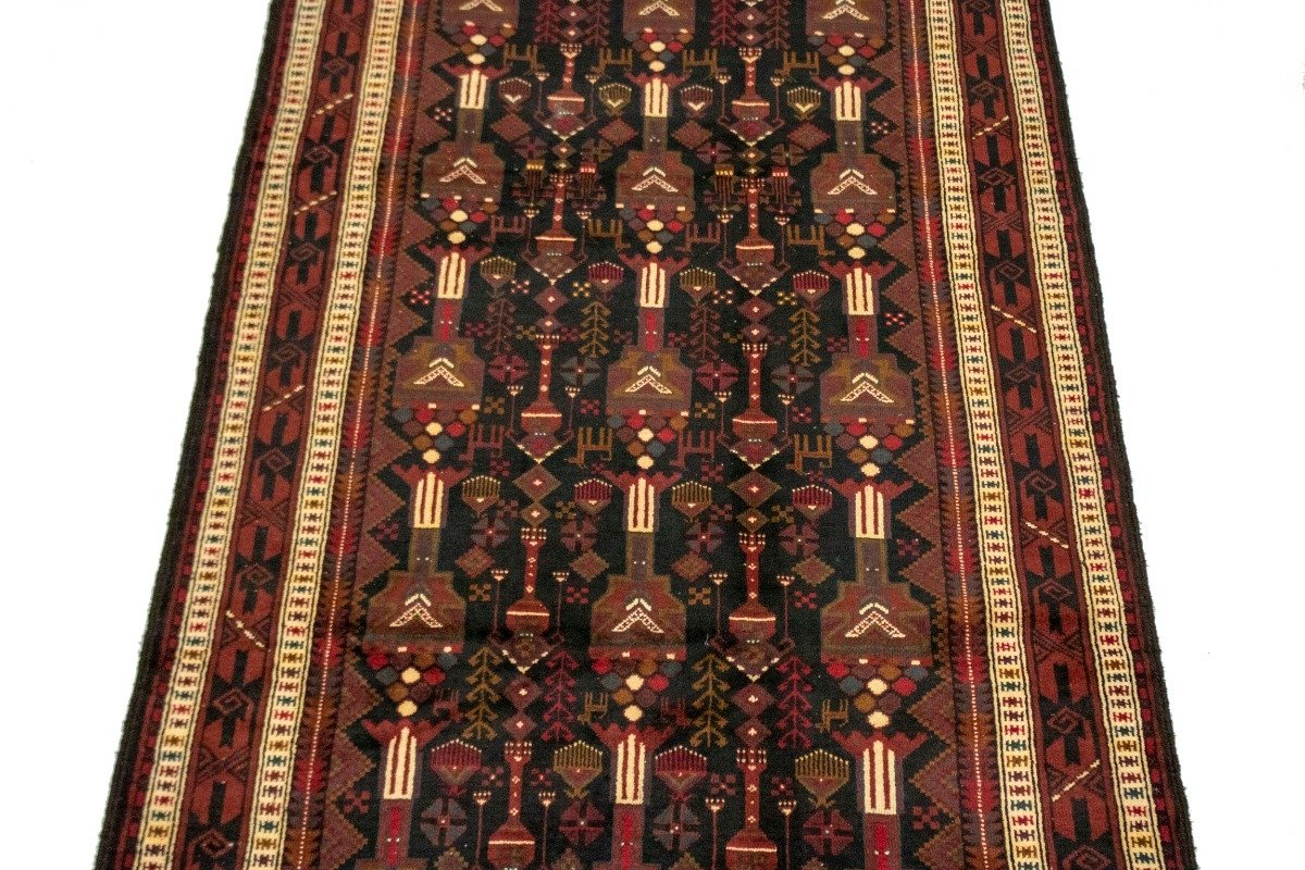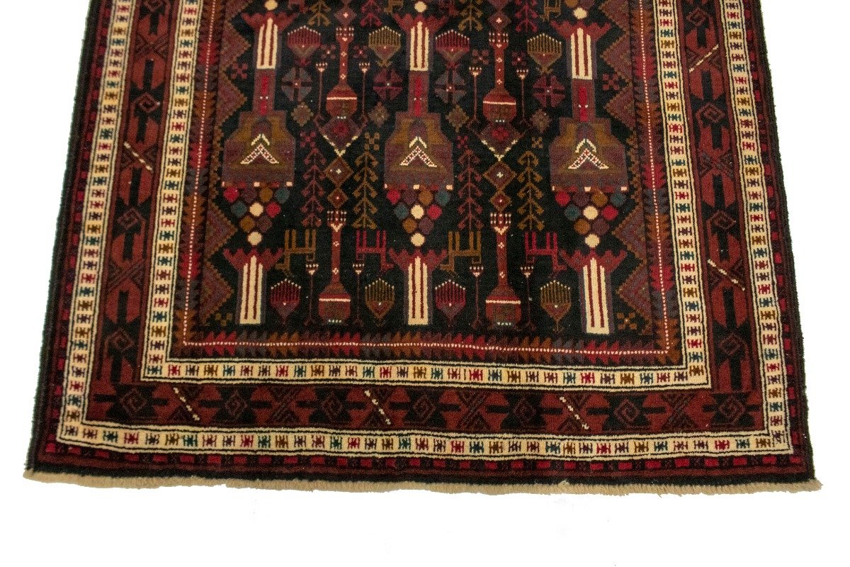 Vintage Dark Navy Blue Tribal 4X10 Balouch Persian Runner Rug