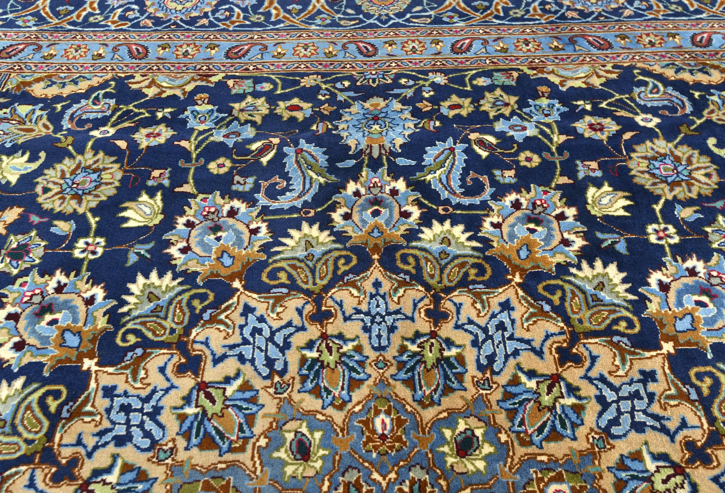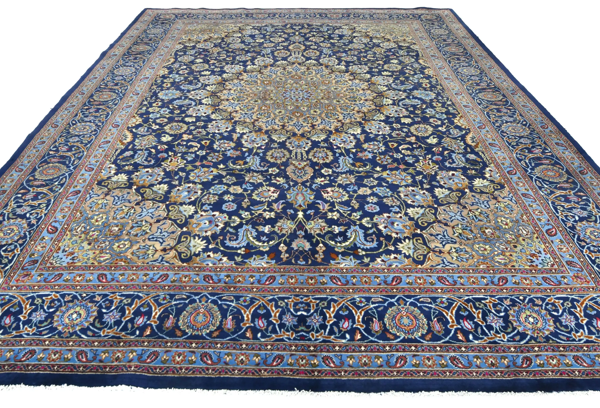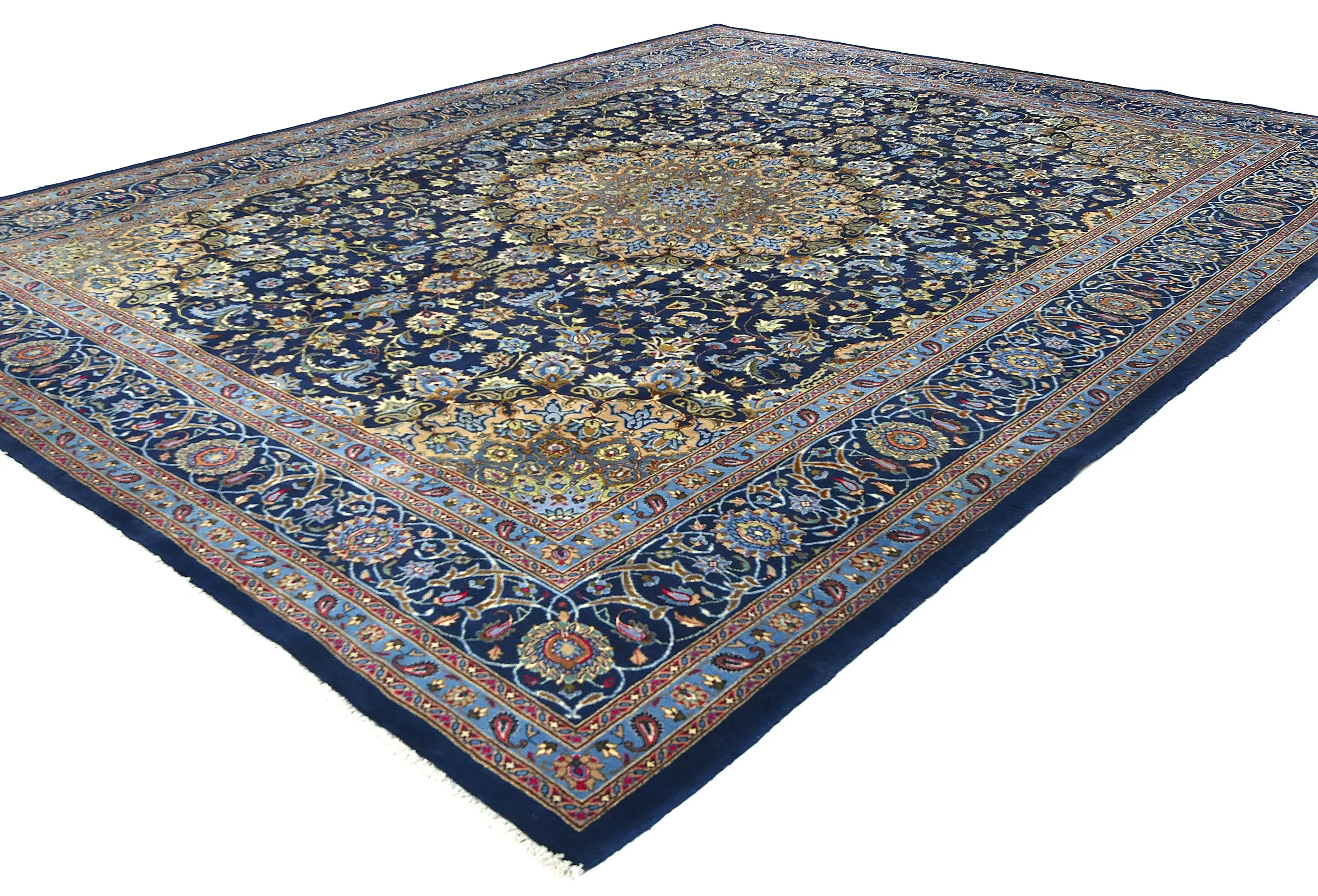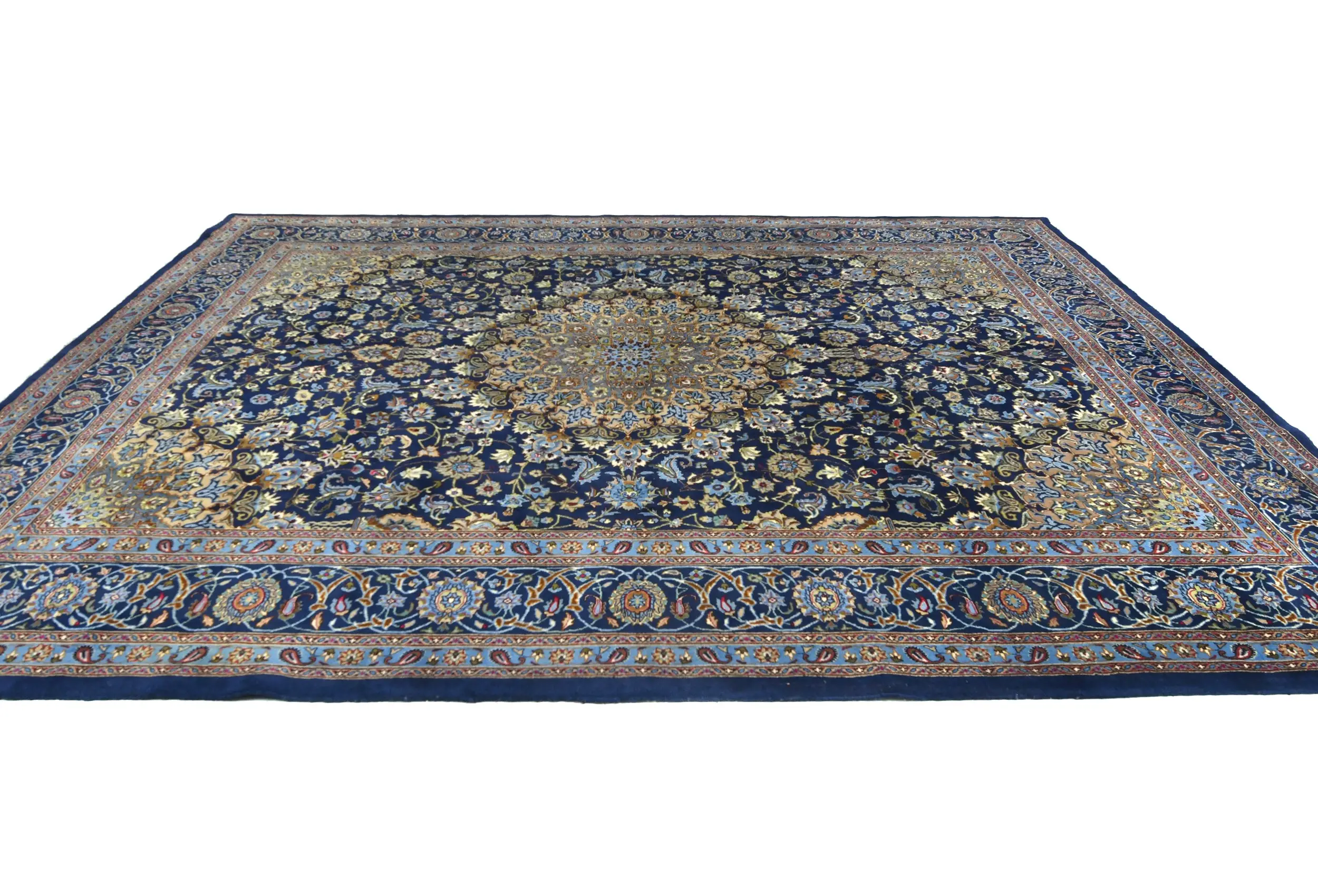 Vintage Dark Navy Floral Traditional 10X13 Kashmar Persian Rug