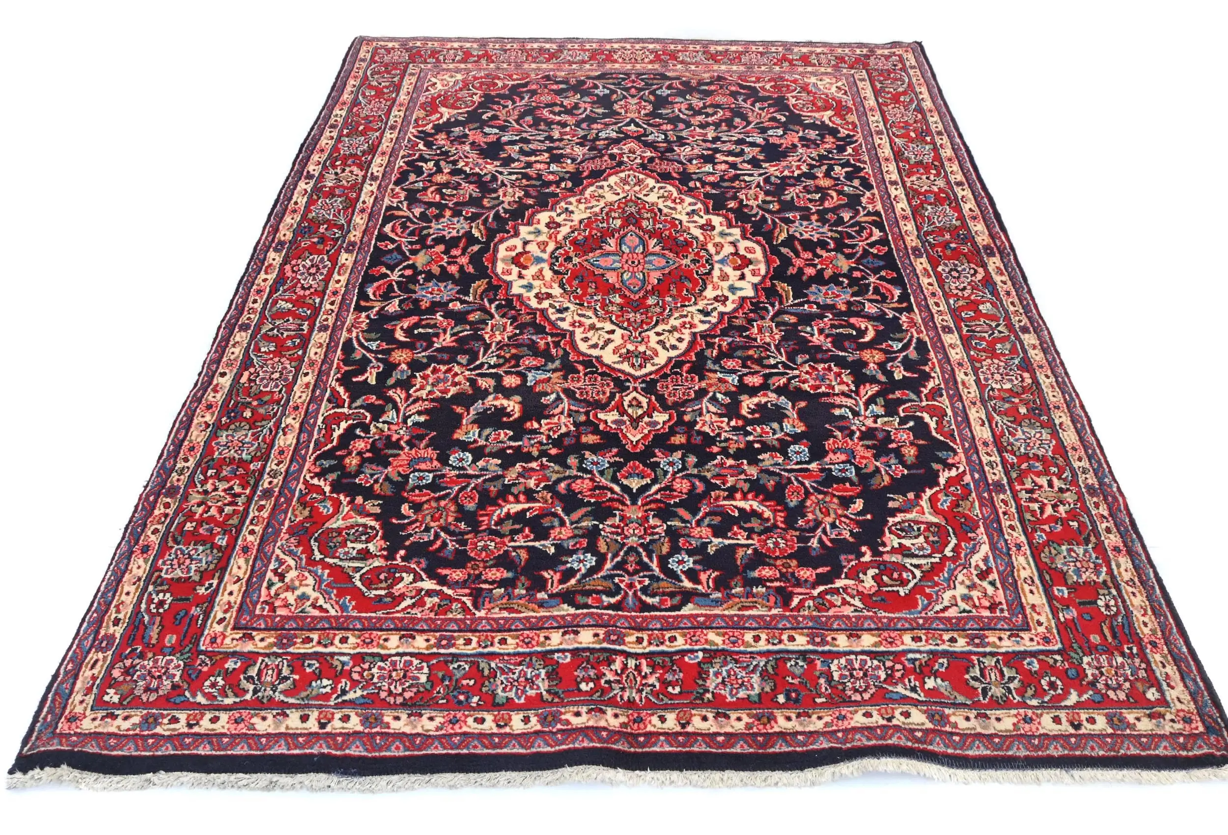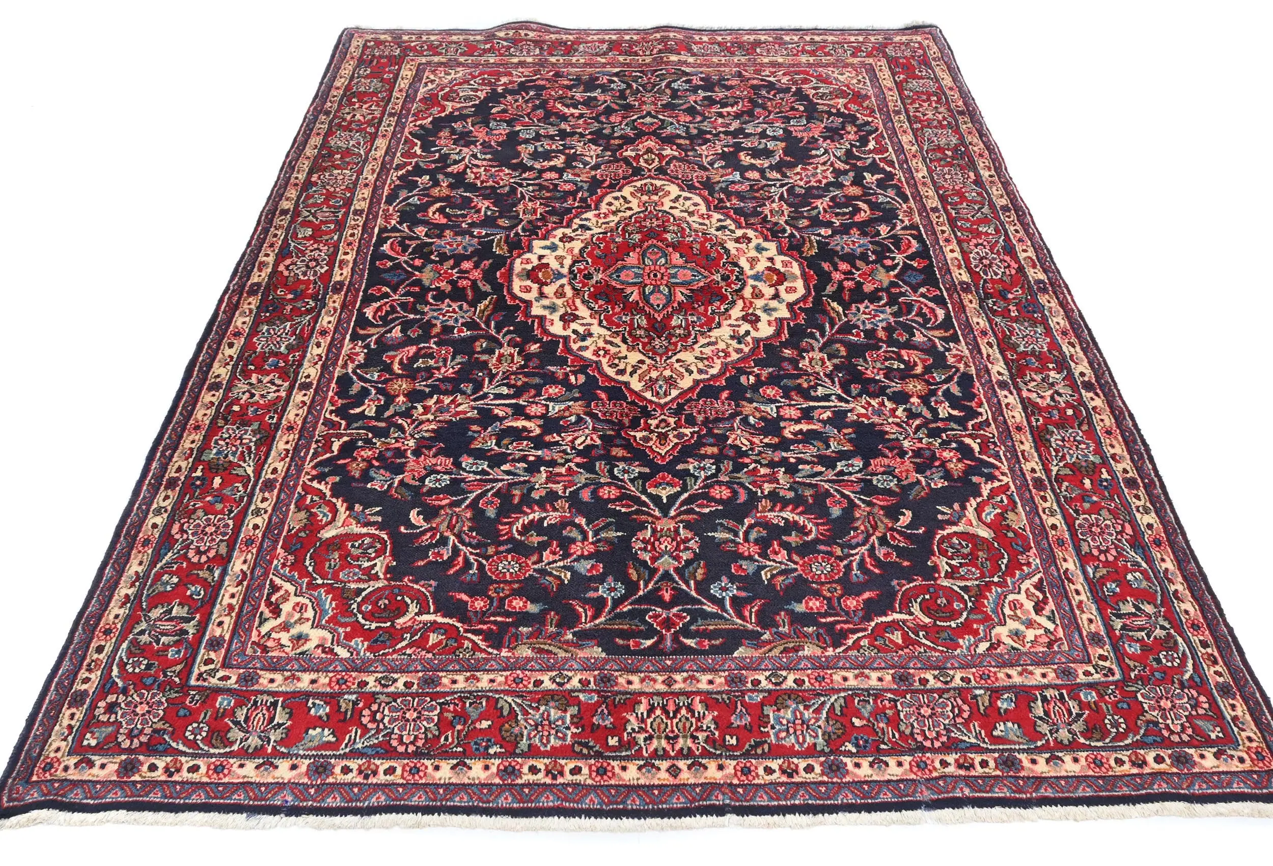 Handmade vintage 4'5X6'10 Dark Purple-navy Persian rug made with vegetable dyes (fine wool pile and cotton foundation), superior knot count, and alluring ancient designs. This Oriental rug never will go out of style and would be among your most valuable treasures.