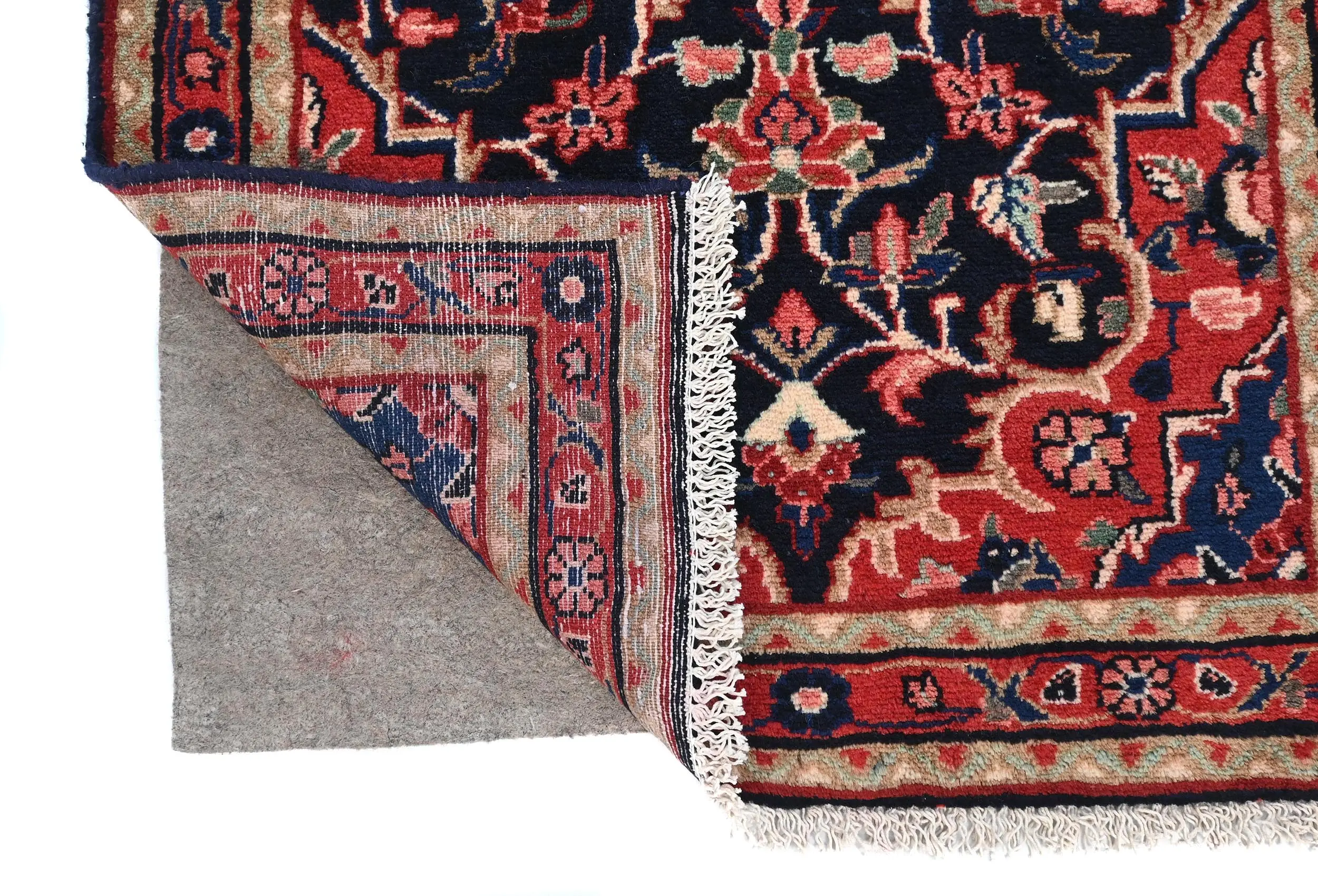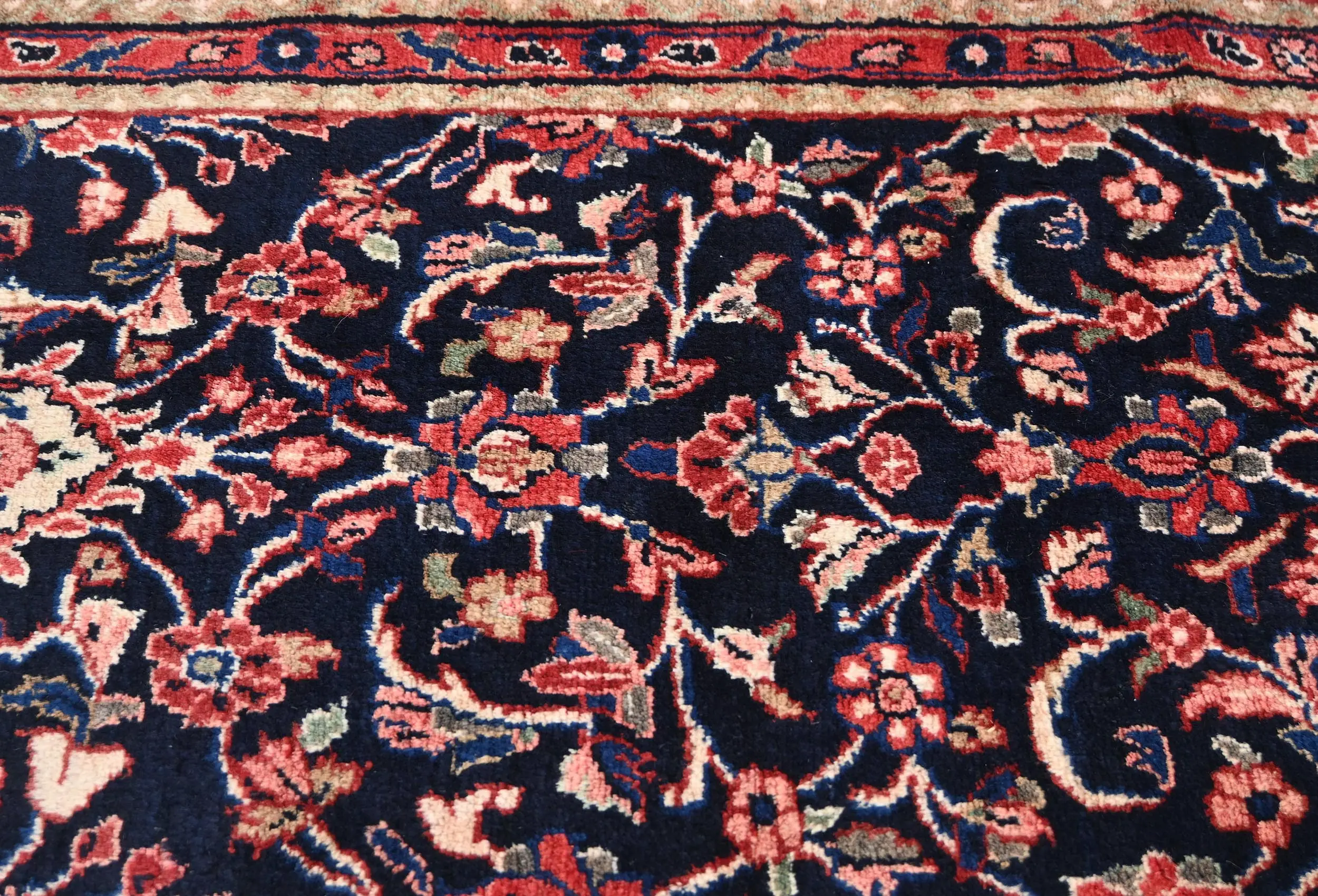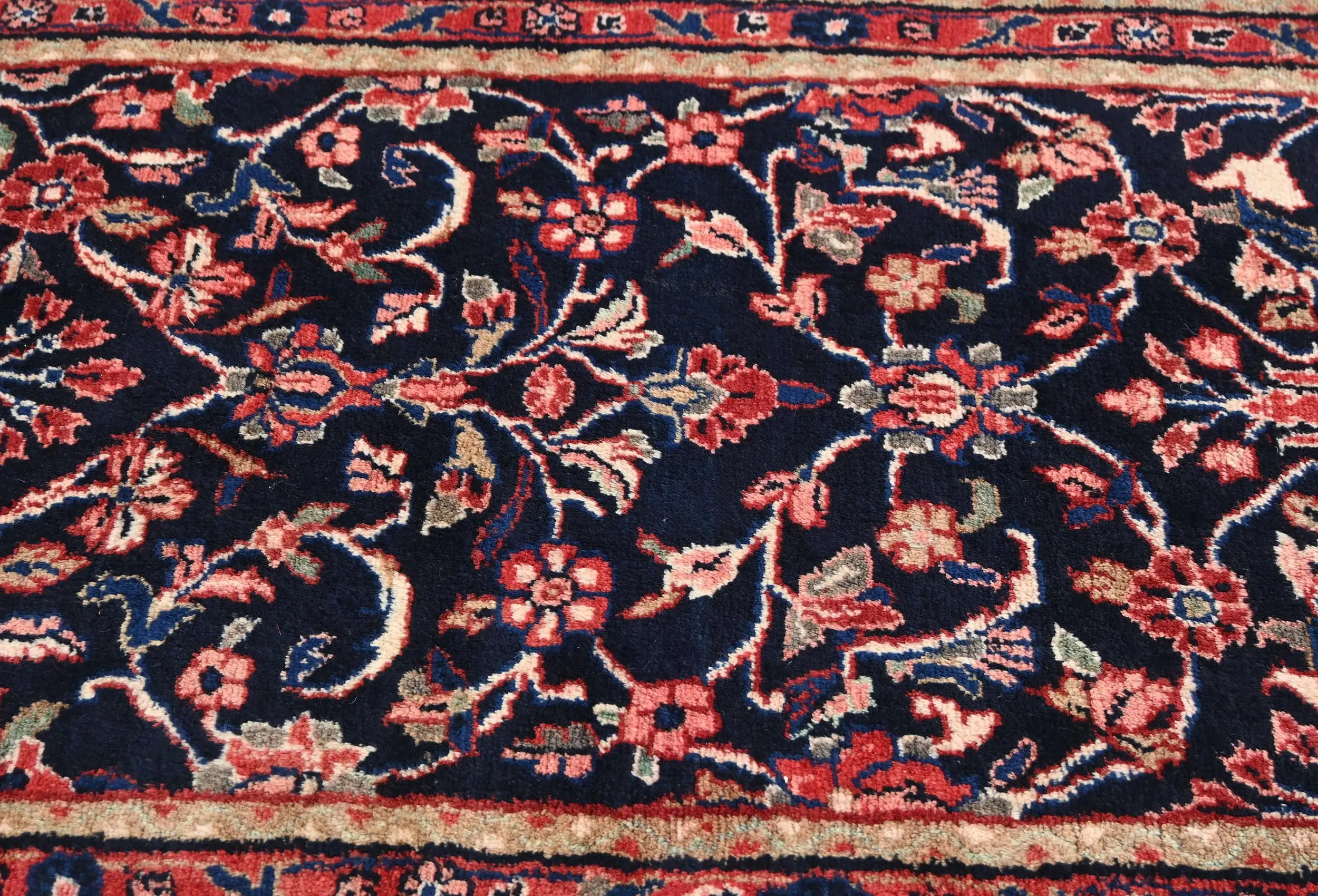 This original 3X13 dark purple-navy vintage Persian runner was crafted by the hands of skilled weavers enthused by a variety of lovely artistic designs, to recreate the aged look of the unique piece with a richness of color and beautifully elaborated background field. What set this tribal Oriental area runner from the others are the material and dye used (wool pile and cotton foundation), knot count, ancient designs, fantastic grades, and its regional historical connection: it has deep roots, from the story of the people who produced it to the meaning of the symbols and colors displayed across its canvas that have been praised for centuries. This home décor carpet will be completely cozy and inviting that never will go out of style! Also, this Oriental runner would be among your most valuable treasures, it is a great investment that increase in value over time, and it will last for generations because was woven with high-quality, all-natural wool; it won’t rip, tear, or shed. Environmentally friendly, opulent yet affordable; this Persian rug will give you a thorough amount of character to help define your living space with sophistication and warmth that will capture the eyes and attention of your audience (homeowners, designers, decorators, family and friends). EB-7491