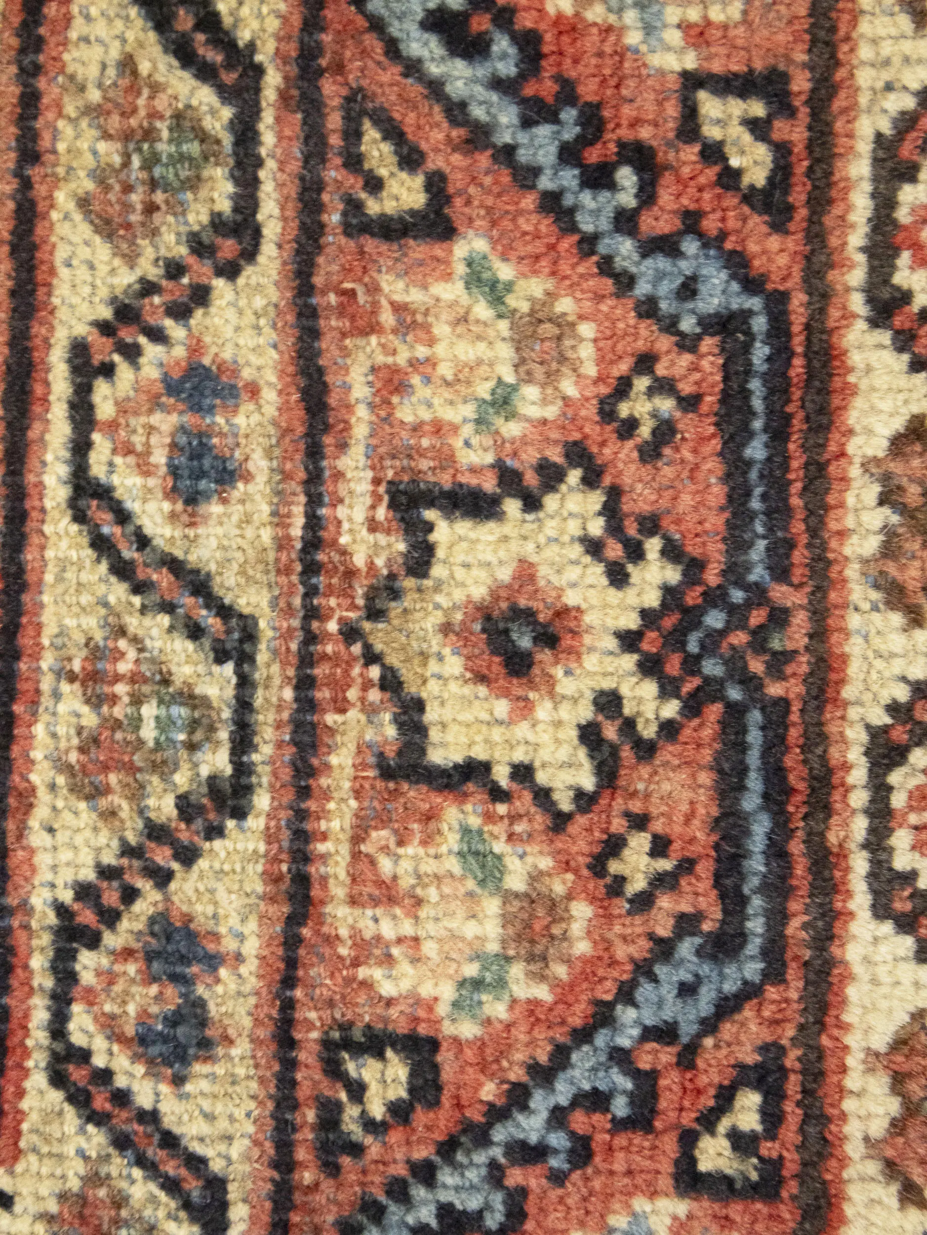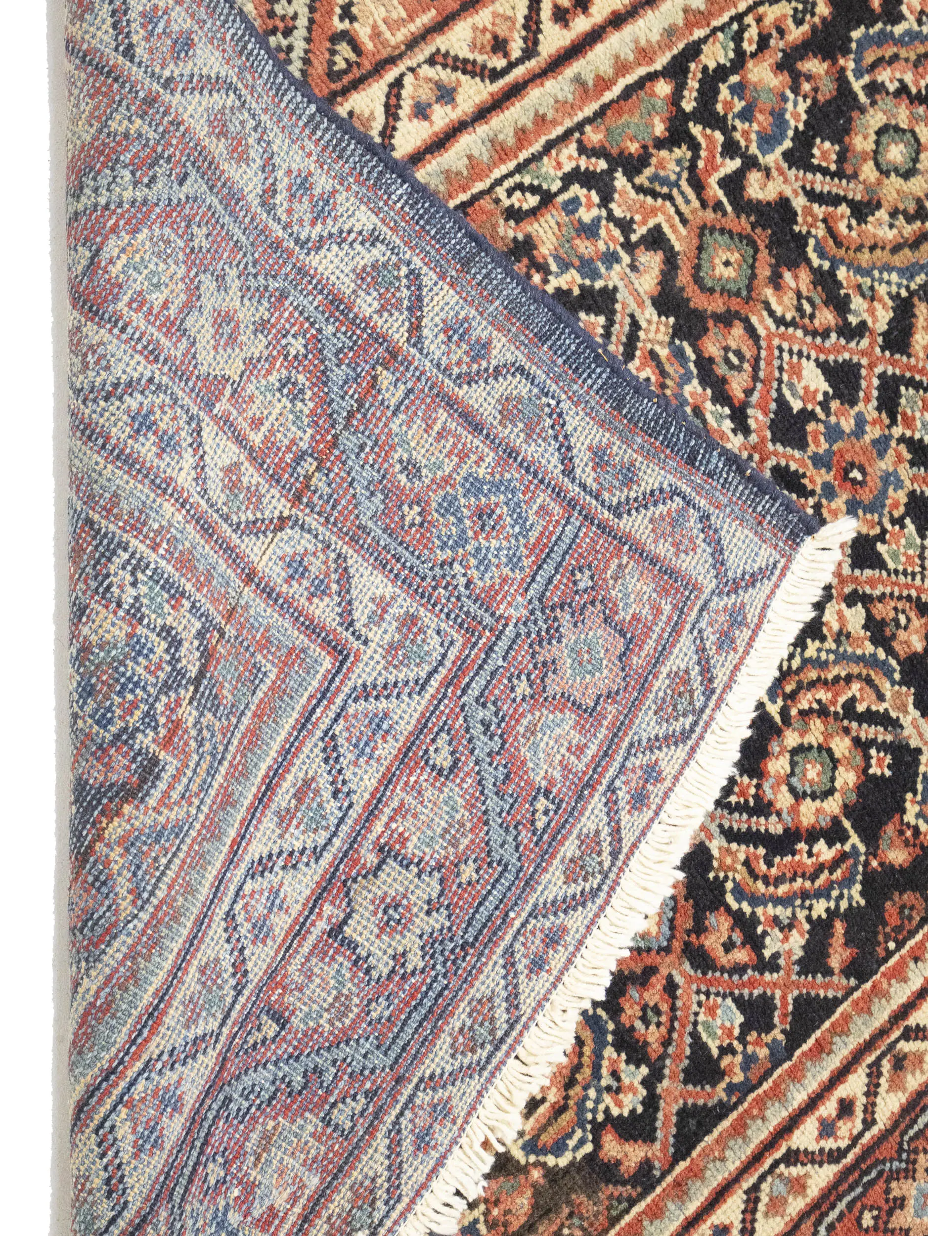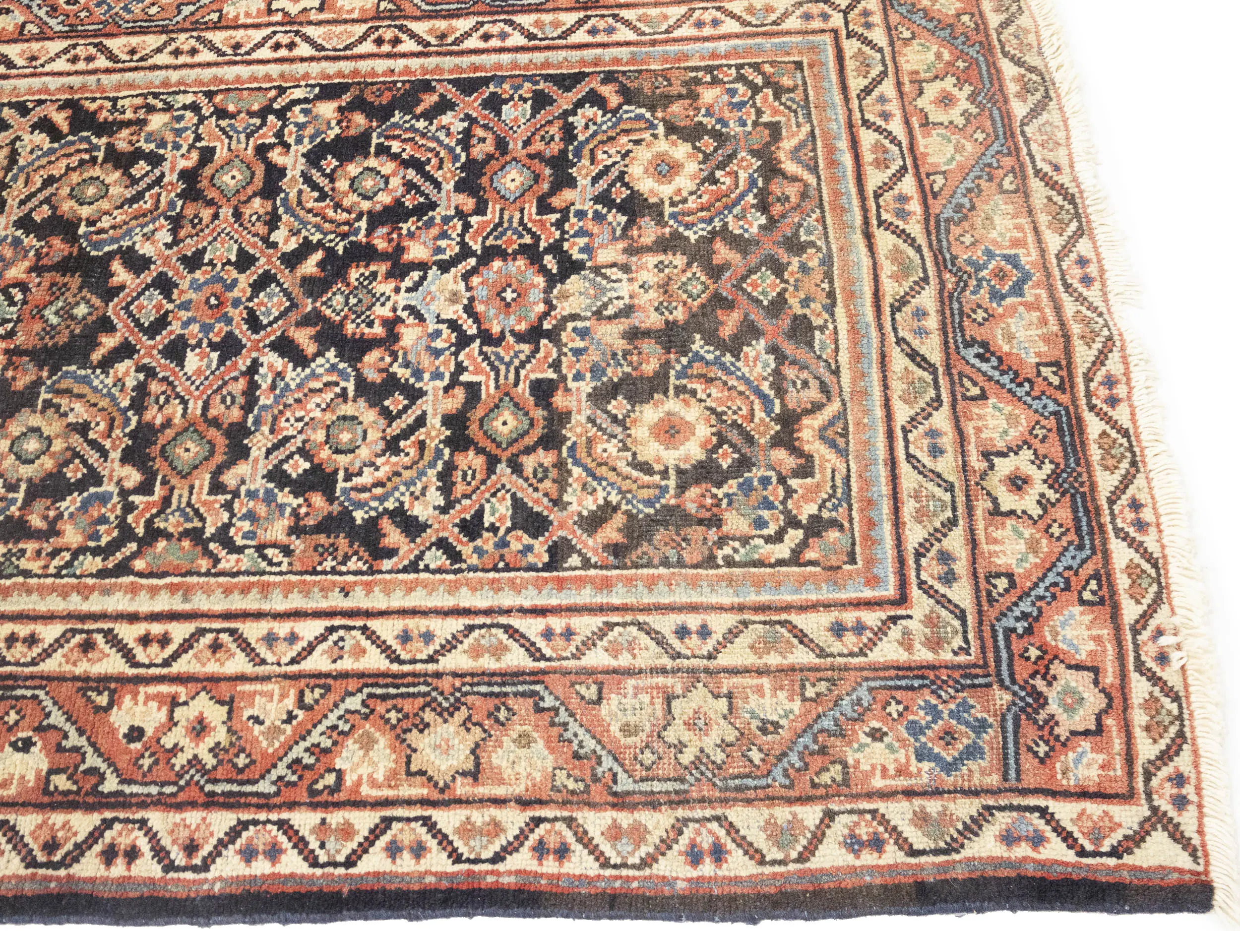 Handmade semi antique 9X12 rusty red Persian rug made with vegetable dyes (fine wool pile and cotton foundation), superior knot count, and appealing ancient designs. This Oriental rug never will go out of style and would be among your most valuable treasures.
