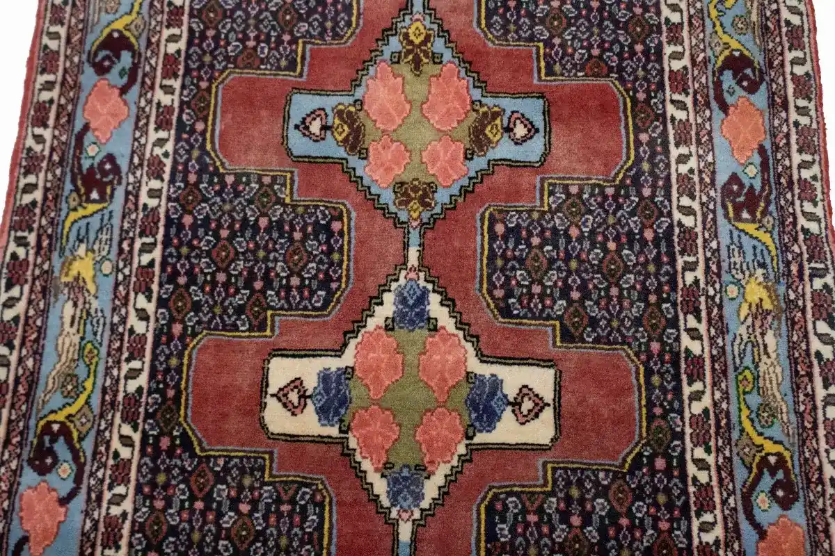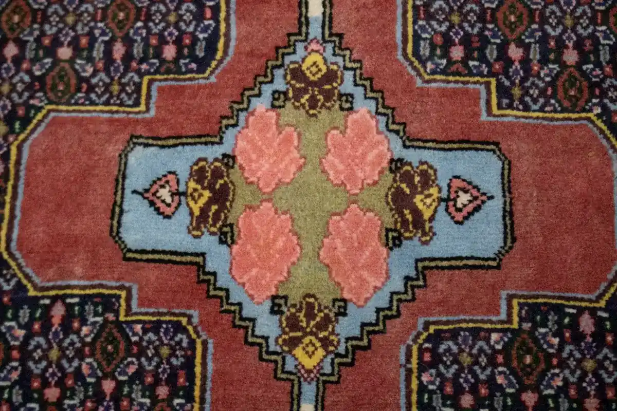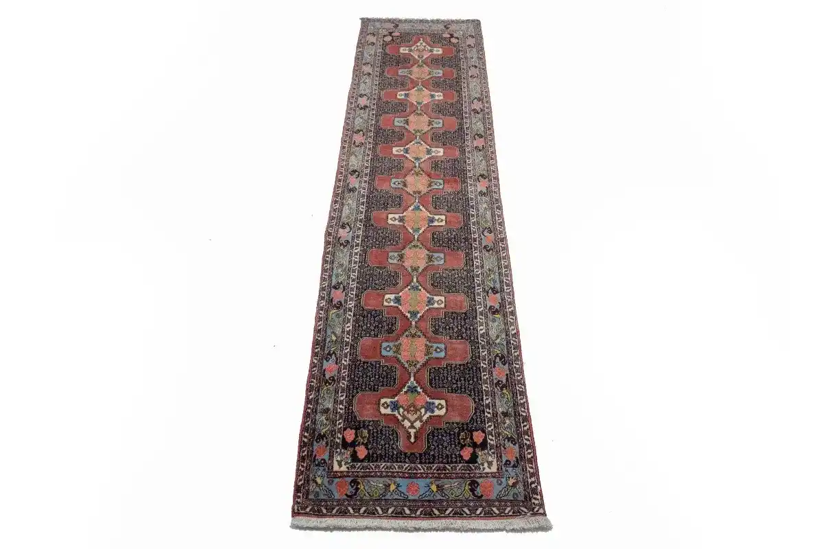This genuine 3X13 dark navy vintage Persian runner was made by the hands of gifted weavers inspired by a variety of spectacular artistic designs, to recreate the aged look of the original piece with a richness of color and ornately patterned background field. What set this geometric Oriental area runner from the others are the material and dye used (wool pile and cotton foundation), knot count, ancient designs, fantastic grades, and its regional historical connection: it has deep roots, from the story of the people who produced it to the meaning of the symbols and colors displayed across its canvas that have been praised for centuries. This home décor carpet will be completely cozy and inviting that never will go out of style! Also, this Oriental runner would be among your most valuable treasures, it is a great investment that accrues value over time, and it will last for generations because was woven with high-quality, all-natural wool; it won’t rip, tear, or shed. Environmentally friendly, opulent yet affordable; this Persian rug will give you a thorough amount of character to help define your living space with elegance and warmth that will capture the eyes and attention of your audience (homeowners, designers, decorators, family and friends). EB-2468