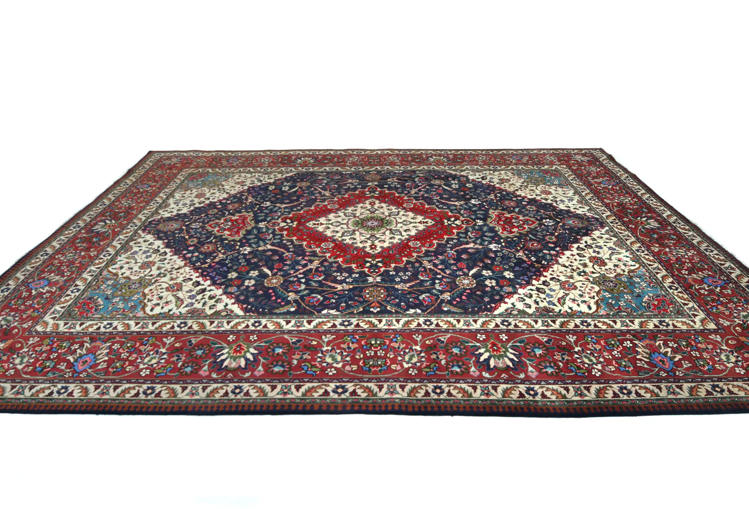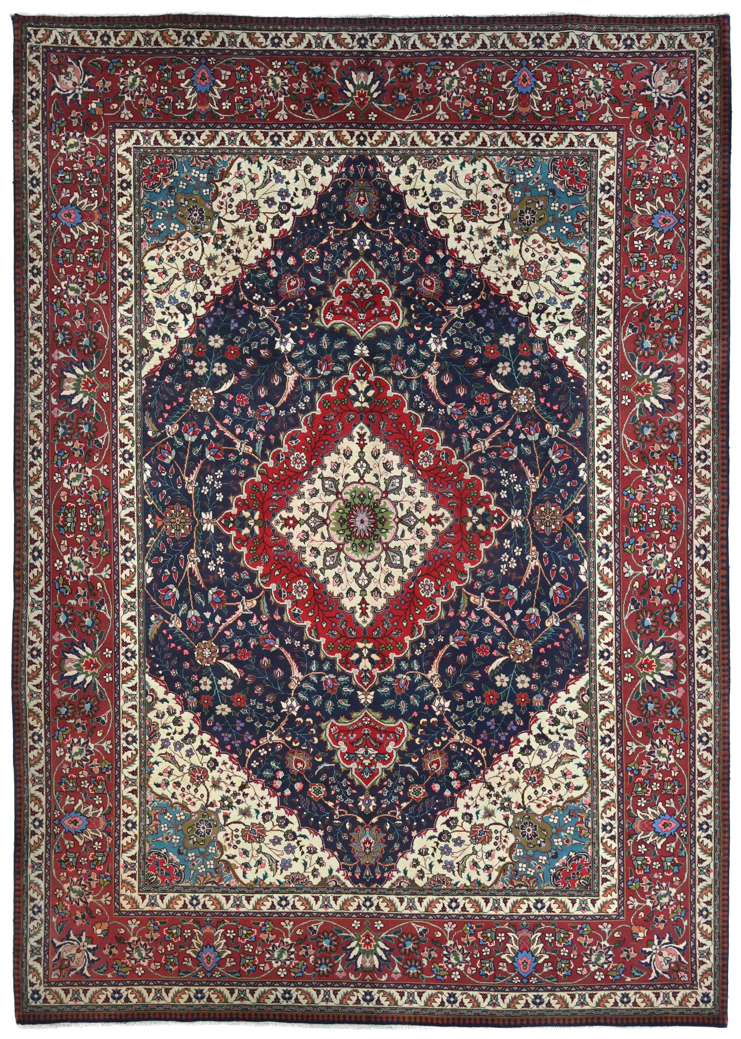 Vintage Purple-navy Floral Traditional 9'8X12'4 Tabriz Persian Rug