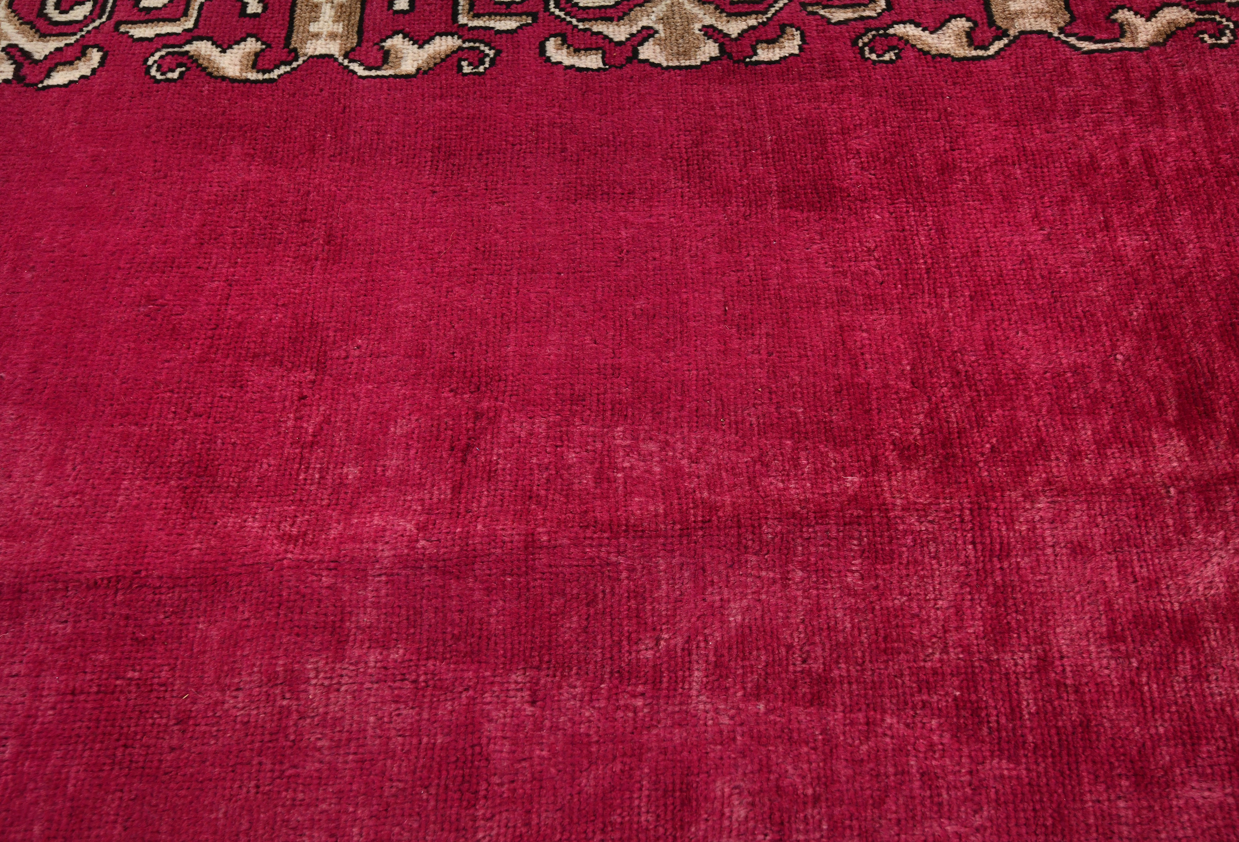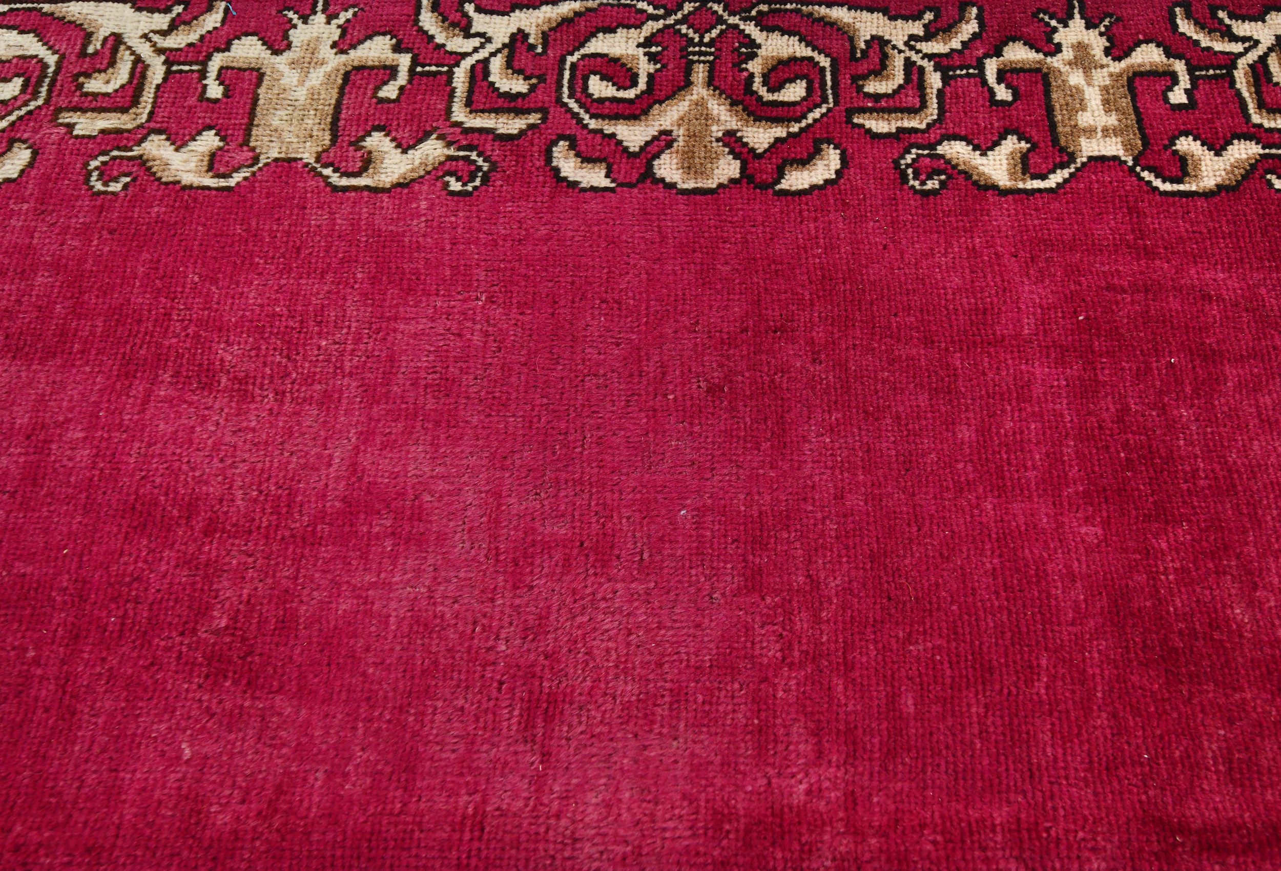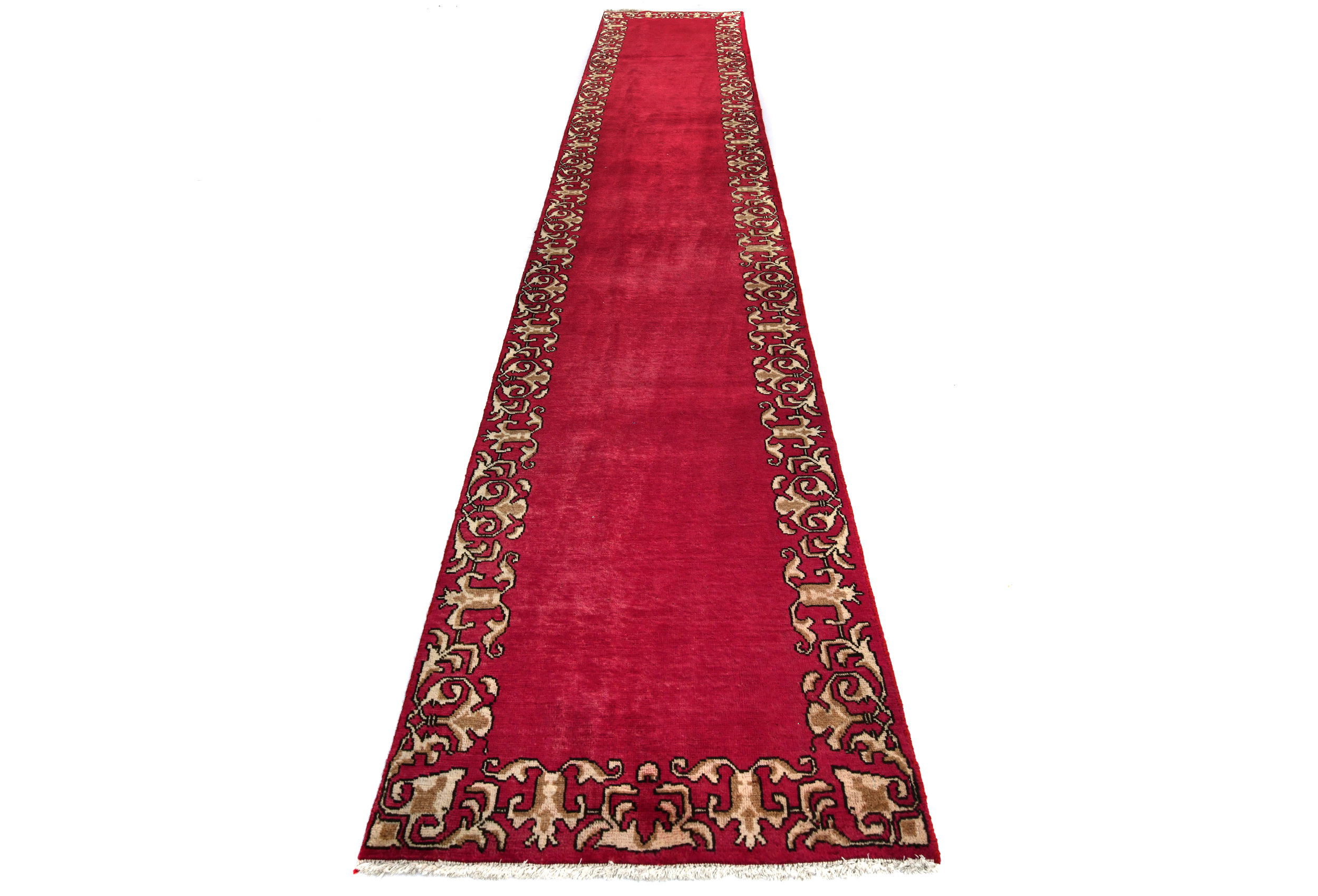 Handmade vintage 2'7X15'4 fuchsia rose Persian runner made with vegetable dyes (fine wool pile and cotton foundation), superior knot count, and alluring ancient designs. This Oriental runner never will go out of style and would be among your most valuable treasures.
