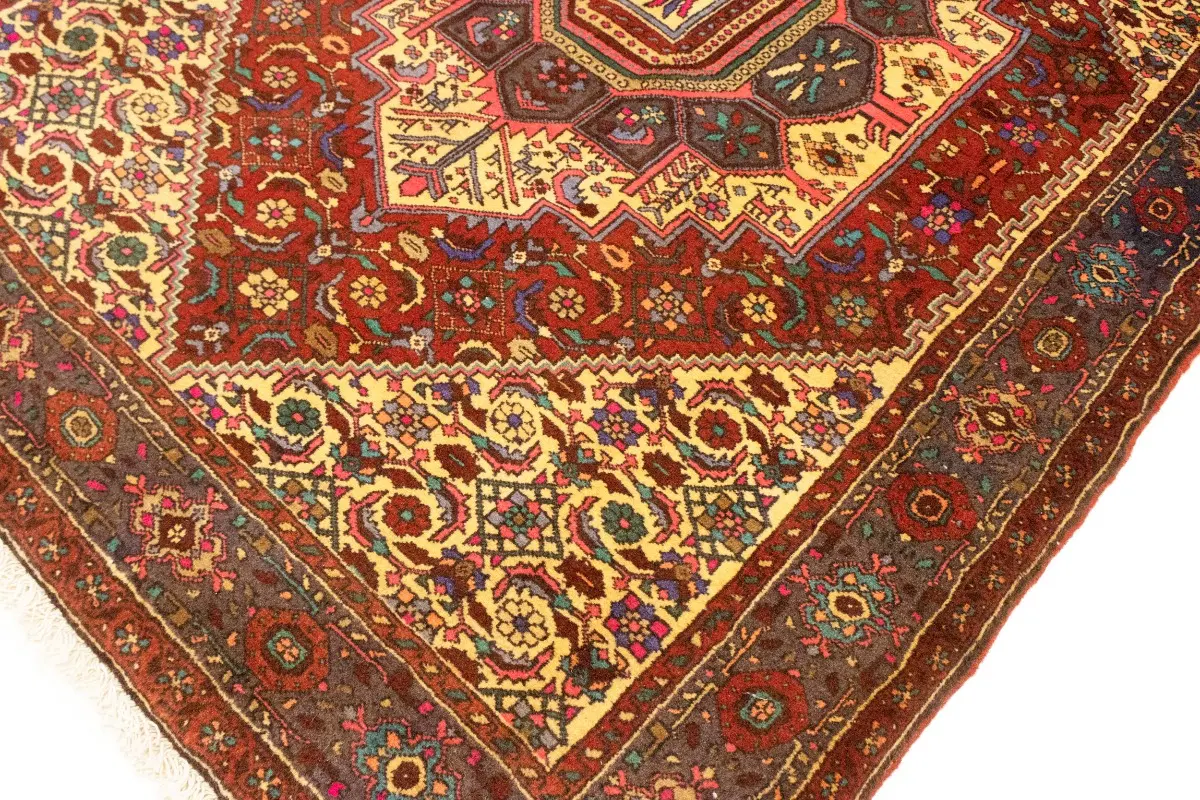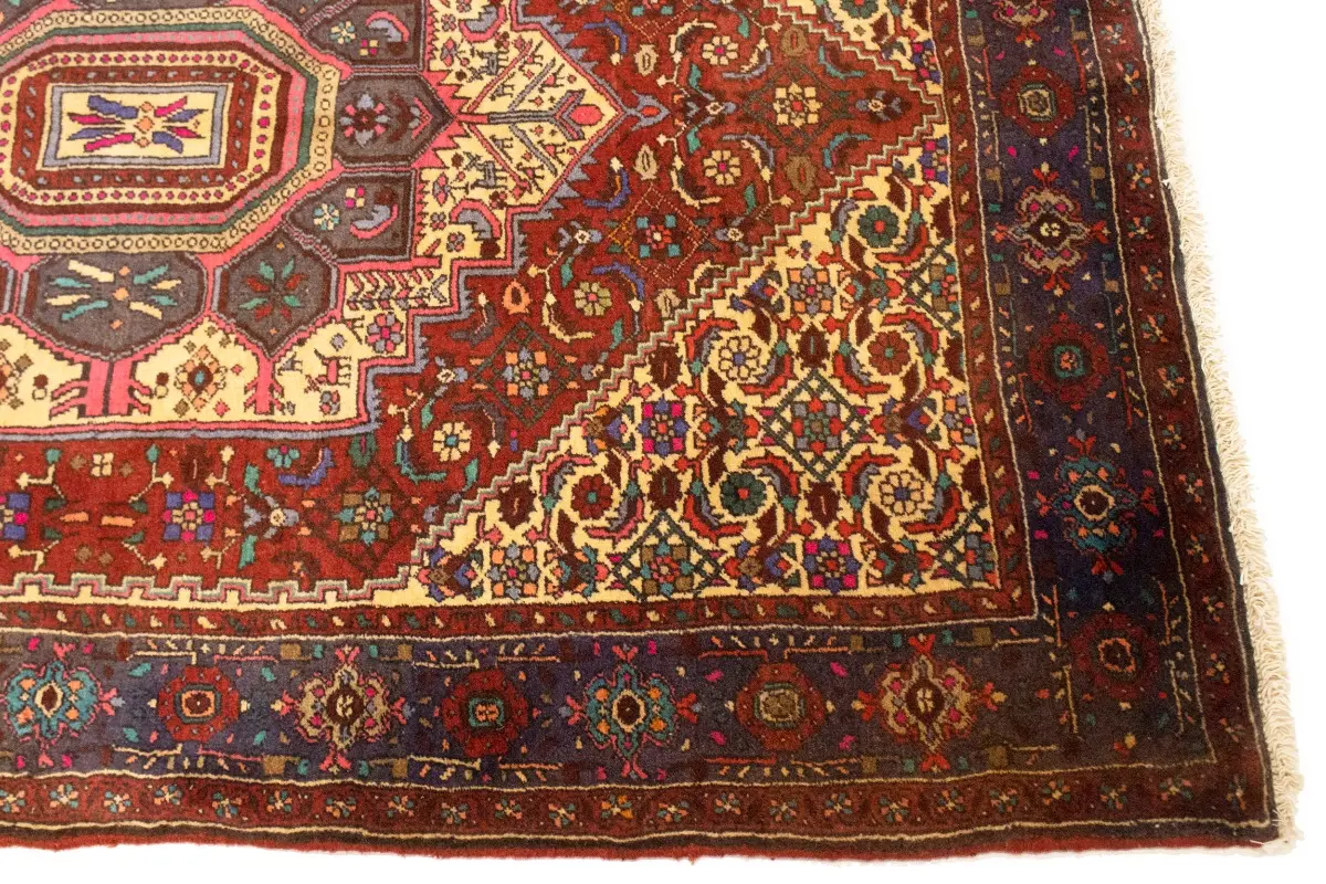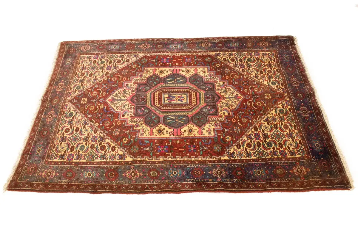 This genuine 3'4X5'8 cream vintage Persian rug was made by the hands of talented weavers influenced by a variety of gorgeous symmetrical artistic designs, to recreate the aged look of the unique piece with a richness of color and very balanced background field. What set this tribal Oriental area rug from the others are the material and dye used (wool pile and cotton foundation), knot count, antique designs, fantastic grades, and its regional historical connection: it has deep roots, from the story of the people who produced it to the meaning of the symbols and colors displayed across its canvas that have been praised for centuries. This home décor carpet will be completely cozy and inviting that never will go out of style! Also, this Oriental rug would be among your most valuable treasures, it is a great investment that accrues value over time, and it will last a lifetime because was woven with high-quality, all-natural wool; it won’t rip, tear, or shed. Eco-friendly, opulent yet affordable; this Persian rug will give you an extra pop of character to help define your home environment with sophistication and warmth that will capture the eyes and attention of your audience (homeowners, designers, decorators, family and friends). EB-5501
