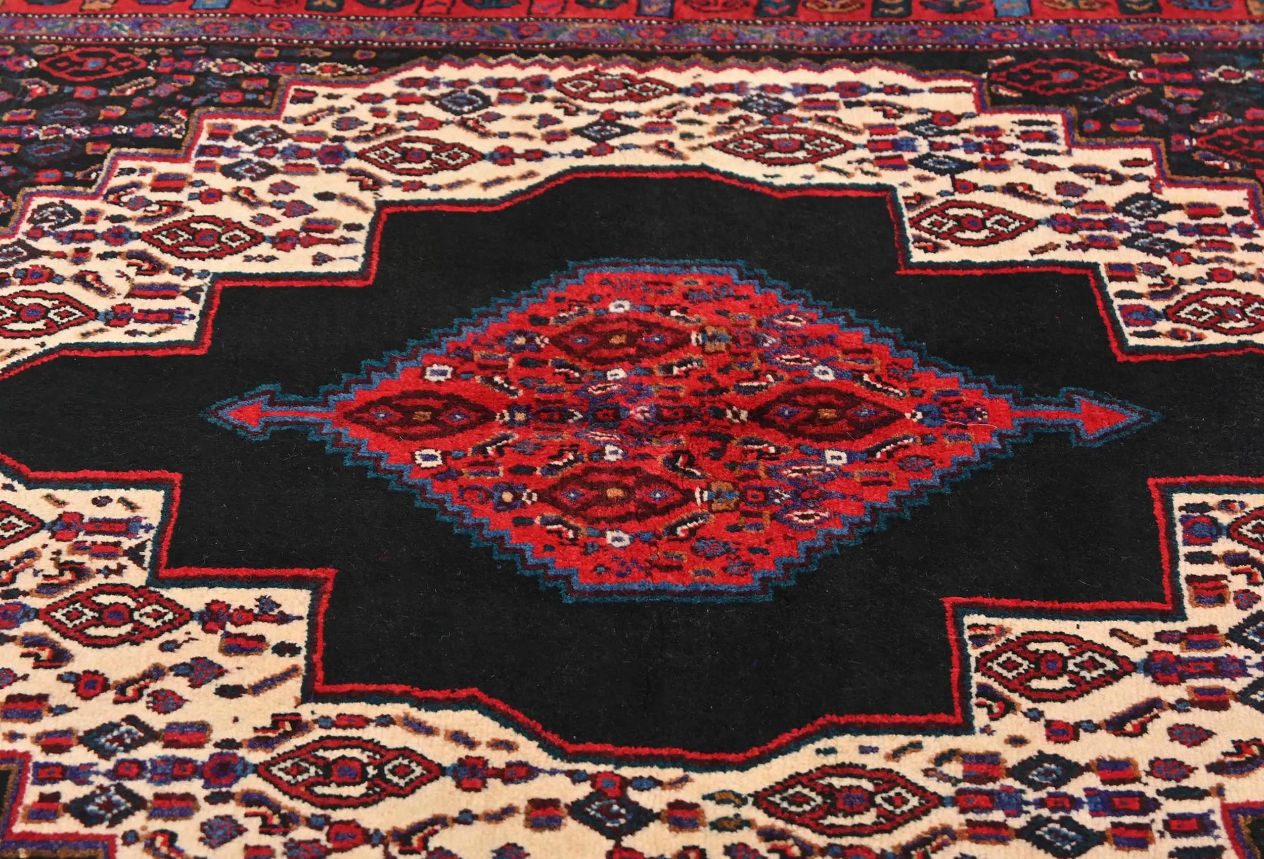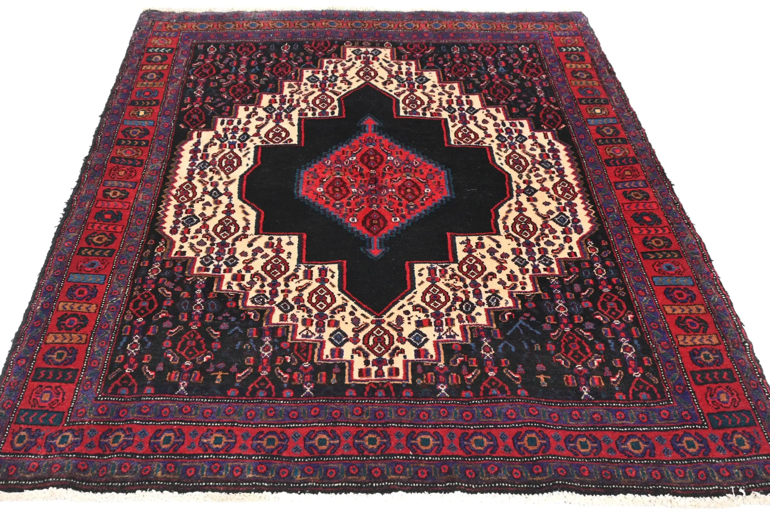 Handmade vintage 4X5 Plum Persian rug made with natural dyes (fine wool pile and cotton foundation), superior knot count, and appealing ancient designs. This Oriental rug never will go out of style and would be among your most valuable treasures.