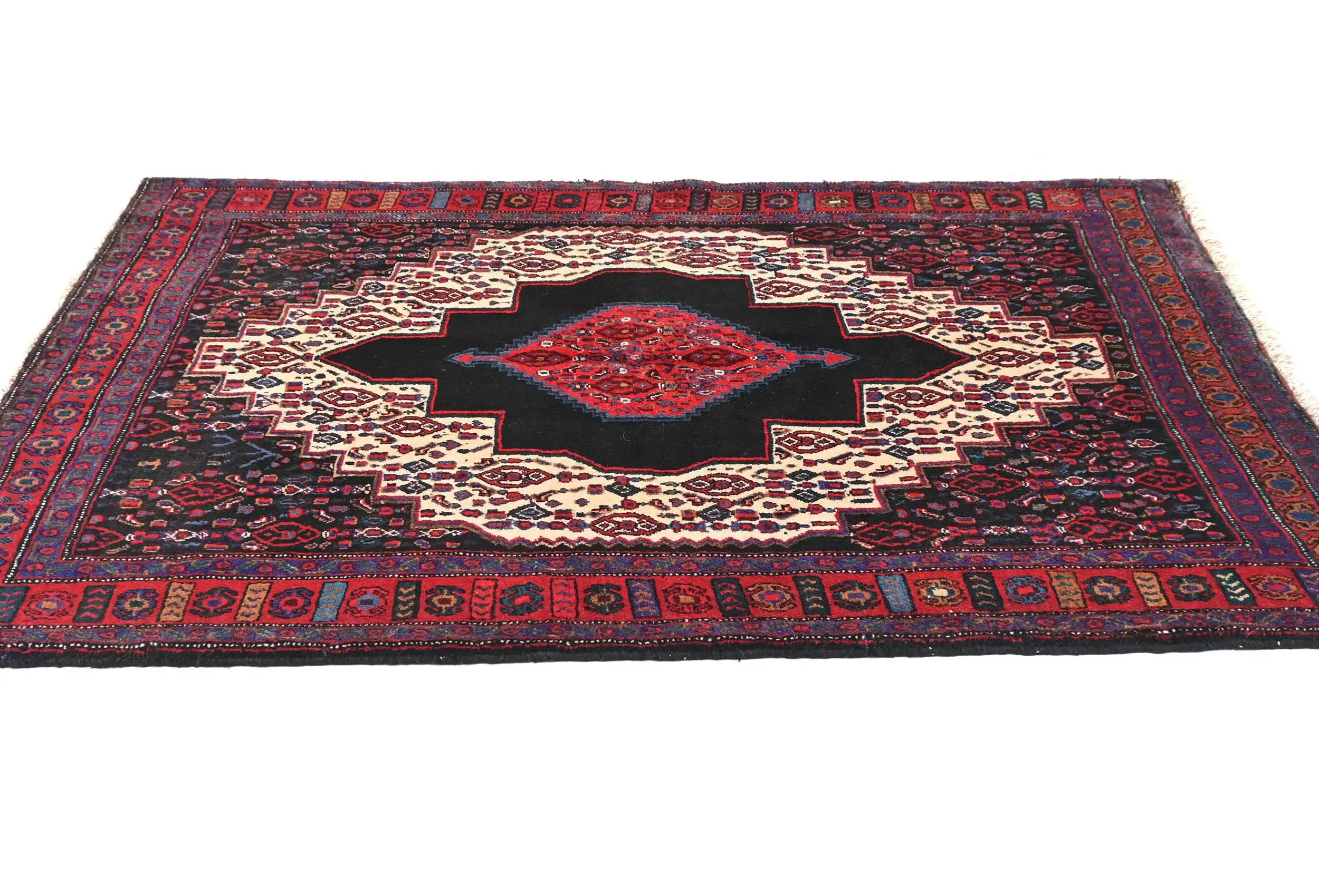 This genuine 4X5 Plum vintage Persian rug was made by the hands of gifted weavers inspired by a variety of spectacular artistic designs, to recreate the aged look of the original piece with a richness of color and ornately patterned background field. What set this geometric Oriental area rug from the others are the material and dye used (wool pile and cotton foundation), knot count, ancient designs, fantastic grades, and its regional historical connection: it has deep roots, from the story of the people who produced it to the meaning of the symbols and colors displayed across its canvas that have been praised for centuries. This home decor carpet will be completely cozy and inviting that never will go out of style! Also, this Oriental rug would be among your most valuable treasures, it is a great investment that accrues value over time, and it will last for generations because was woven with high-quality, all-natural wool; it won’t rip, tear, or shed. Environmentally friendly, opulent yet affordable; this Persian rug will give you a thorough amount of character to help define your living space with elegance and warmth that will capture the eyes and attention of your audience (homeowners, designers, decorators, family and friends). EB-7206